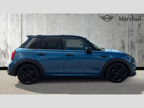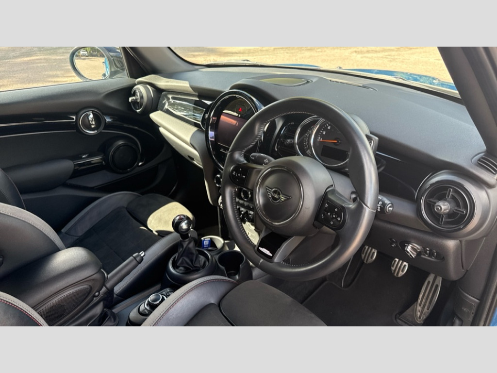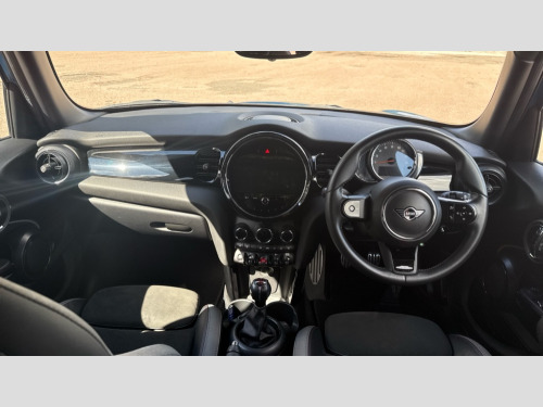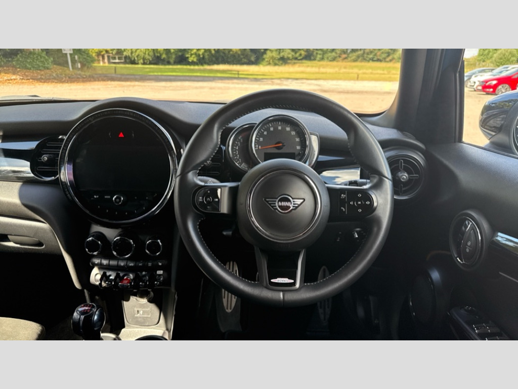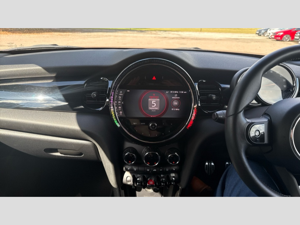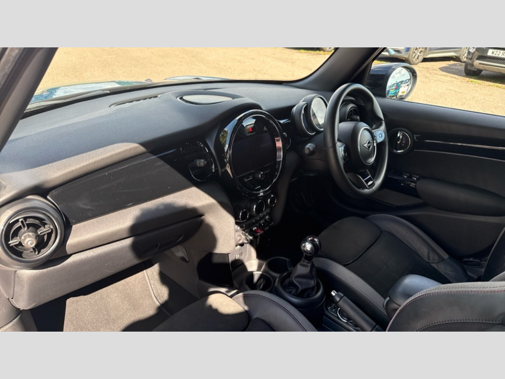 MINI Hatchback 1.5 Cooper Sport 5dr Apple CarPlay, Automatic start/stop function with brake energy recuperation, Compatible mobile phone bluetooth with audio streaming, Cruise control with brake assist, Electro-mechanical speed dependant steering assistance, Flexible car sharing preparation, MINI Driving Modes - centre toggle switch to control driving setting (sport, mid and green), Mini E-call, MINI TeleServices, On board computer, Rear park distance control, Service interval indicator, 6 Speed manual transmission including gear change indicator display, Adaptive suspension, Double Vanos system, Fully variable valve control, High precision injection, Performance Control, 8.8" touchscreen with LED ring, FM tuner and DAB digital radio, 3rd brake light, Automatic headlight activation switch, Body colour fuel filler cap, Chrome border high gloss black slats radiator grille, Dynamic brake lights, Electric front+rear windows, Exhaust tailpipe on left with chrome finisher, Heated rear window, Heated windscreen washer jets, JCW Aerodynamic kit - Front and rear bumpers with sporty JCW styling and part-painted side sills with MINI John Cooper Works door sill finishers, John Cooper Works rear spoiler, Metal door sill strips with MINI imprint, Model logo Cooper on right of tailgate, Rain sensor window wipers, Rear fog lights, Rear LED lights with union jack design, Rear side wing doors, Rear window wiper, Side scuttle panel with integrated indicator, Sun/heat protection glass, White indicator lenses, 12V Accessory socket in centre console, 3 seat bench in 2nd row, 4 lashing eyes in luggage compartment, 60/40 split folding rear seat, Anthracite headliner including grab handles and clothes hooks, Carbon black colour line - Knee roll and door armrest, Chrome interior highlights, Cupholders, Front and rear isofix with front passenger airbag deactivation, Front and rear velour floor mats, Glove compartment, Height and length steering column adjustment, Interior lighting with 12 different colours across the dashboard, underneath door bezel with illuminated laser-engraved design on central display, JCW Sport seats with integrated headrests, adjustable thigh support and John Cooper Works logo, Leatherette gearshift lever and handbrake gaiters, LED reading lights, vanity mirror lights, front foot well light and spotlight on front seats, Mechanical seat adjustment - forward/back & backrest for front seats and driver seat height adjust, Multifunction steering wheel, Single front passenger seat, Storage compartments in doors, Sunvisors with vanity mirrors, Walknappa leather steering wheel with grey seam and John Cooper Works badge on Piano Black lower steering wheel spoke, Piano black exterior pack - Mini Hatchback Cooper, 3 point seatbelts on all five seats, 6 Airbags - front, side, head and seat belt tensioners, Anti-lock braking system (ABS), Child locks on rear doors, DSC - Dynamic Stability Control, Front and rear disc brakes, Hill start assist, Single tone fanfare horn, Tyre pressure monitoring system, Alarm system with tilt sensor, monitoring doors, bonnet interior and tailgate, Electronic vehicle immobiliser, Start/stop toggle with keyless go, Piano black interior trim, Tool kit