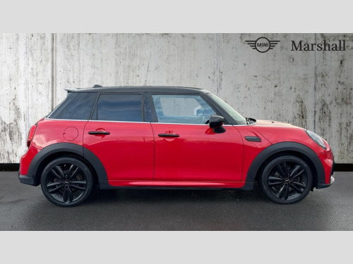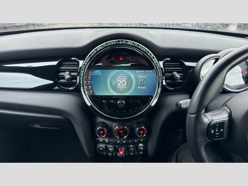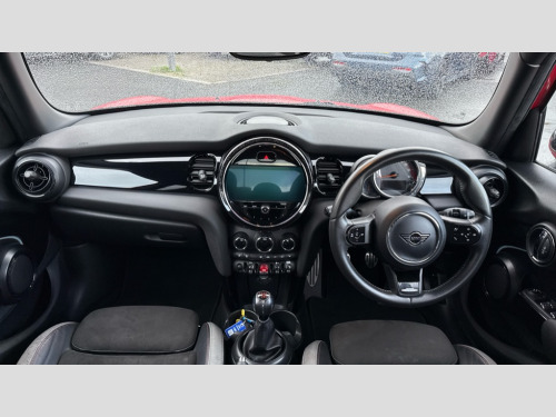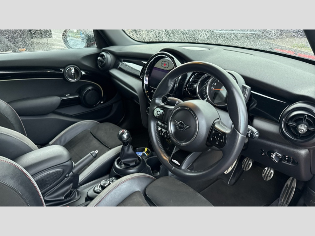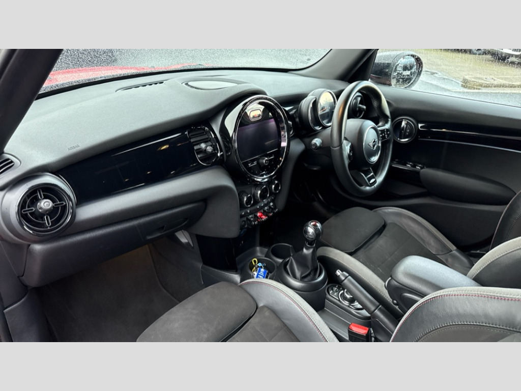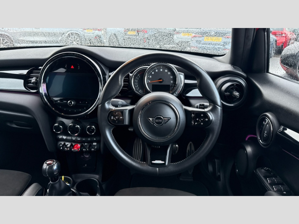 MINI Hatchback 1.5 Cooper Sport 5dr Apple CarPlay, Automatic start/stop function with brake energy recuperation, Compatible mobile phone bluetooth with audio streaming, Cruise control with brake assist, Electro-mechanical speed dependant steering assistance, Flexible car sharing preparation, MINI Driving Modes - centre toggle switch to control driving setting (sport, mid and green), Mini E-call, MINI TeleServices, On board computer, Rear park distance control, Service interval indicator, 6 Speed manual transmission including gear change indicator display, Adaptive suspension, Double Vanos system, Fully variable valve control, High precision injection, Performance Control, 8.8" touchscreen with LED ring, FM tuner and DAB digital radio, 3rd brake light, Automatic headlight activation switch, Body colour fuel filler cap, Chrome border high gloss black slats radiator grille, Dynamic brake lights, Electric front+rear windows, Exhaust tailpipe on left with chrome finisher, Heated rear window, Heated windscreen washer jets, JCW Aerodynamic kit - Front and rear bumpers with sporty JCW styling and part-painted side sills with MINI John Cooper Works door sill finishers, John Cooper Works rear spoiler, Metal door sill strips with MINI imprint, Model logo Cooper on right of tailgate, Rain sensor window wipers, Rear fog lights, Rear LED lights with union jack design, Rear side wing doors, Rear window wiper, Side scuttle panel with integrated indicator, Sun/heat protection glass, White indicator lenses, 12V Accessory socket in centre console, 3 seat bench in 2nd row, 4 lashing eyes in luggage compartment, 60/40 split folding rear seat, Anthracite headliner including grab handles and clothes hooks, Carbon black colour line - Knee roll and door armrest, Chrome interior highlights, Cupholders, Front and rear isofix with front passenger airbag deactivation, Front and rear velour floor mats, Glove compartment, Height and length steering column adjustment, Interior lighting with 12 different colours across the dashboard, underneath door bezel with illuminated laser-engraved design on central display, JCW Sport seats with integrated headrests, adjustable thigh support and John Cooper Works logo, Leatherette gearshift lever and handbrake gaiters, LED reading lights, vanity mirror lights, front foot well light and spotlight on front seats, Mechanical seat adjustment - forward/back & backrest for front seats and driver seat height adjust, Multifunction steering wheel, Single front passenger seat, Storage compartments in doors, Sunvisors with vanity mirrors, Walknappa leather steering wheel with grey seam and John Cooper Works badge on Piano Black lower steering wheel spoke, Piano black exterior pack - Mini Hatchback Cooper, 3 point seatbelts on all five seats, 6 Airbags - front, side, head and seat belt tensioners, Anti-lock braking system (ABS), Child locks on rear doors, DSC - Dynamic Stability Control, Front and rear disc brakes, Hill start assist, Single tone fanfare horn, Tyre pressure monitoring system, Alarm system with tilt sensor, monitoring doors, bonnet interior and tailgate, Electronic vehicle immobiliser, Start/stop toggle with keyless go, Piano black interior trim, Tool kit