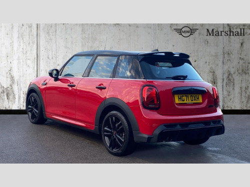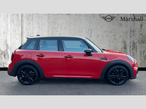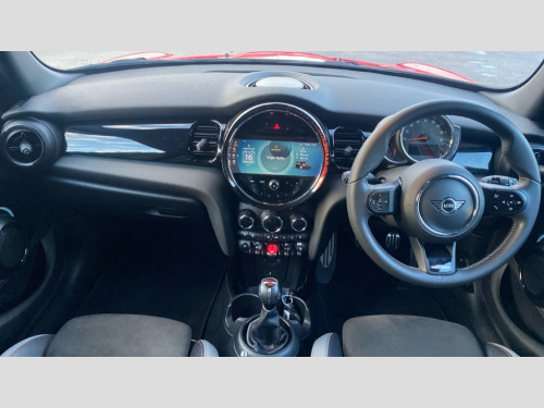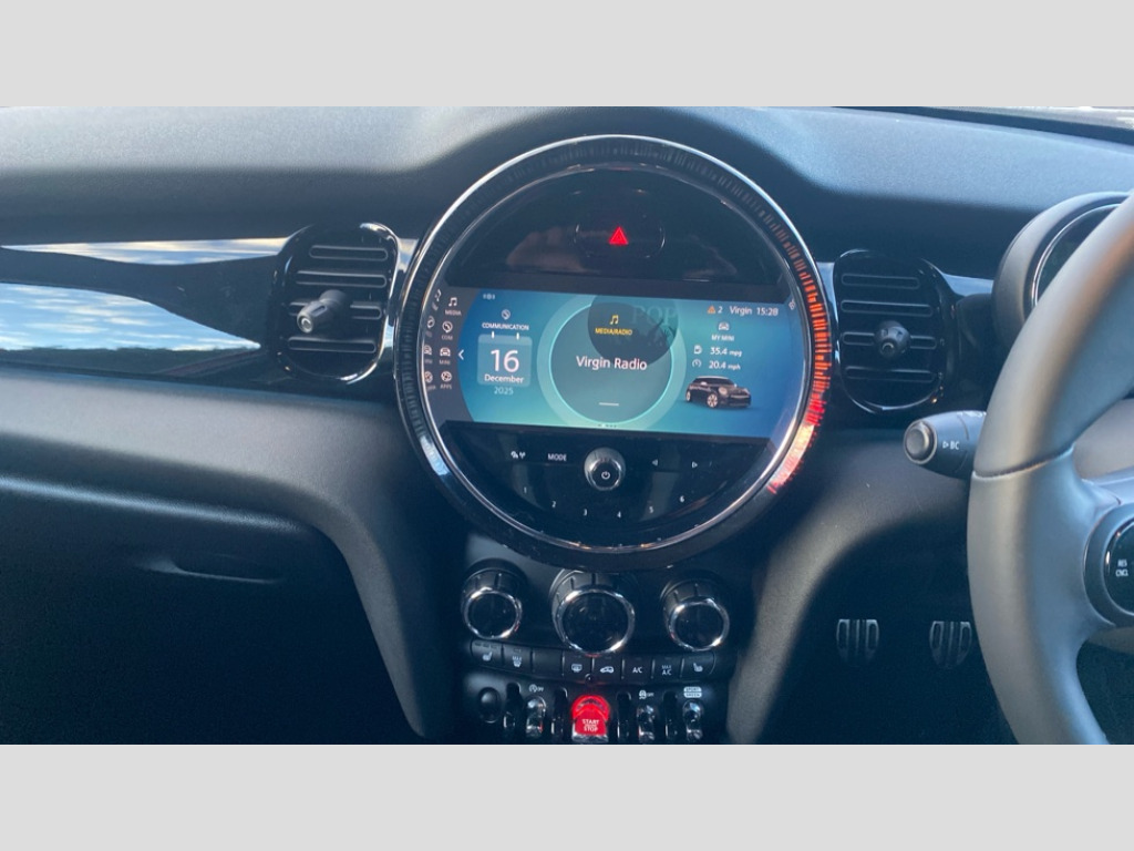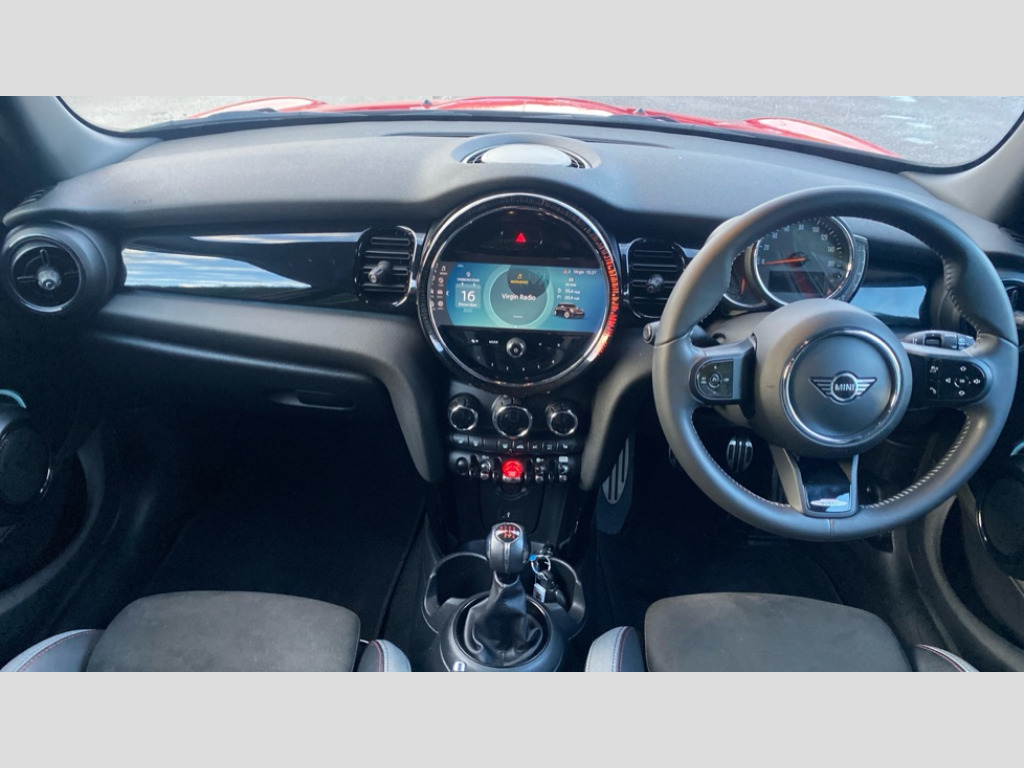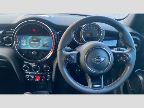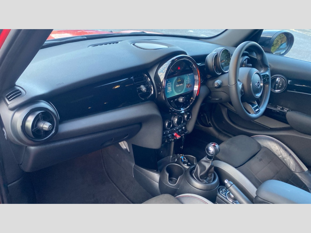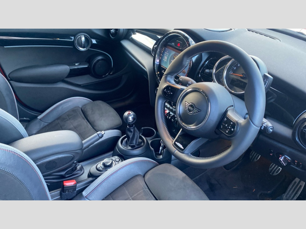 MINI Hatchback 1.5 Cooper Sport 5dr Apple CarPlay, Automatic start/stop function with brake energy recuperation, Compatible mobile phone bluetooth with audio streaming, Cruise control with brake assist, Electro-mechanical speed dependant steering assistance, Flexible car sharing preparation, Instrument cluster, MINI Driving Modes - centre toggle switch to control driving setting (sport, mid and green), Mini E-call, MINI TeleServices, On board computer, Rear park distance control, Service interval indicator, 6 Speed manual transmission including gear change indicator display, Adaptive suspension, Double Vanos system, Fully variable valve control, High precision injection, Performance Control, 8.8" touchscreen with LED ring, FM tuner and DAB digital radio, 3rd brake light, Automatic headlight activation switch, Body colour fuel filler cap, Chrome border high gloss black slats radiator grille, Dynamic brake lights, Electric front+rear windows, Exhaust tailpipe on left with chrome finisher, Heated rear window, Heated windscreen washer jets, JCW Aerodynamic kit - Front and rear bumpers with sporty JCW styling and part-painted side sills with MINI John Cooper Works door sill finishers, John Cooper Works rear spoiler, LED headlight with closed ring and daytime driving lights, Metal door sill strips with MINI imprint, Model logo Cooper on right of tailgate, Rain sensor window wipers, Rear fog lights, Rear LED lights with union jack design, Rear side wing doors, Rear window wiper, Side scuttle panel with integrated indicator, Sun/heat protection glass, White indicator lenses, 12V Accessory socket in centre console, 3 seat bench in 2nd row, 4 lashing eyes in luggage compartment, 60/40 split folding rear seat, Anthracite headliner including grab handles and clothes hooks, Carbon black colour line - Knee roll and door armrest, Chrome interior highlights, Cupholders, Front and rear isofix with front passenger airbag deactivation, Front and rear velour floor mats, Glove compartment, Height and length steering column adjustment, Interior lighting with 12 different colours across the dashboard, underneath door bezel with illuminated laser-engraved design on central display, JCW Sport seats with integrated headrests, adjustable thigh support and John Cooper Works logo, Leatherette gearshift lever and handbrake gaiters, LED reading lights, vanity mirror lights, front foot well light and spotlight on front seats, Manual air conditioning, Mechanical seat adjustment - forward/back & backrest for front seats and driver seat height adjust, Multifunction steering wheel, Single front passenger seat, Storage compartments in doors, Sunvisors with vanity mirrors, Walknappa leather steering wheel with grey seam and John Cooper Works badge on Piano Black lower steering wheel spoke, Piano black exterior pack - Mini Hatchback Cooper, 3 point seatbelts on all five seats, 6 Airbags - front, side, head and seat belt tensioners, Anti-lock braking system (ABS), Child locks on rear doors, DSC - Dynamic Stability Control, Front and rear disc brakes, Hill start assist, Single tone fanfare horn, Tyre pressure monitoring system, Alarm system with tilt sensor, monitoring doors, bonnet interior and tailgate, Electronic vehicle immobiliser, Start/stop toggle with keyless go, Piano black interior trim, Tool kit