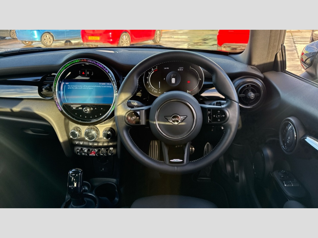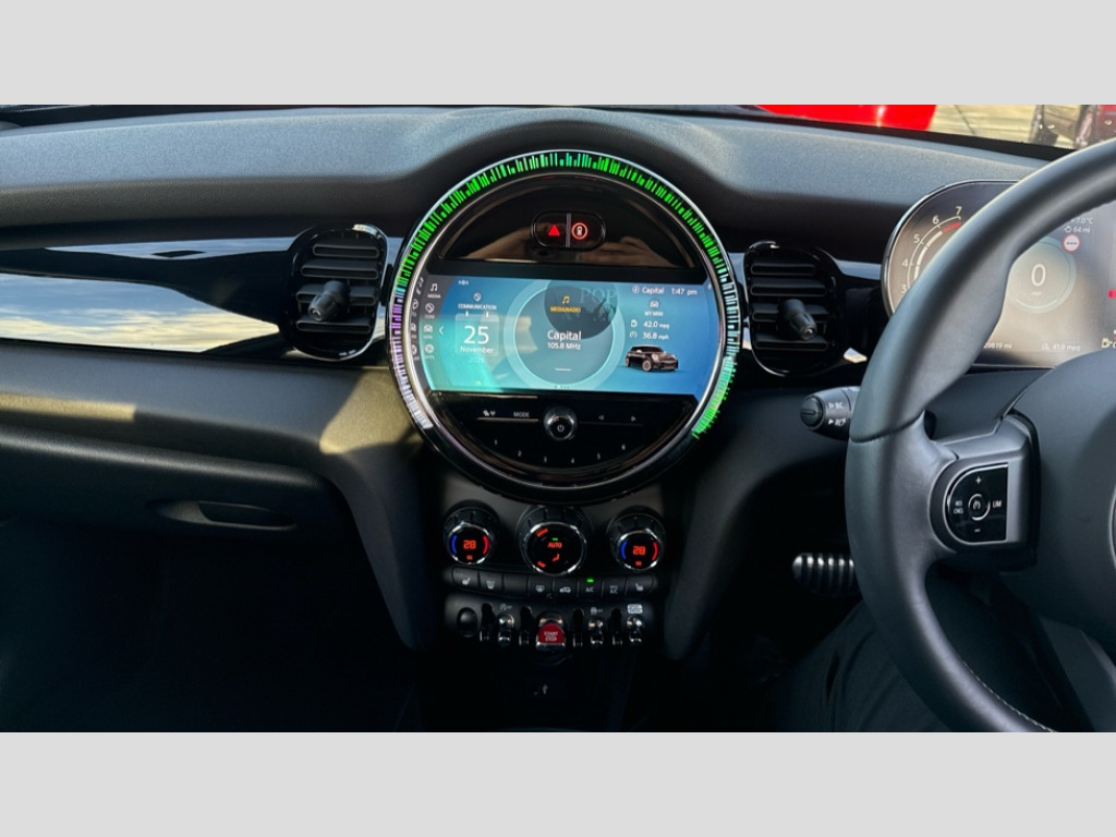 MINI Hatchback 1.5 Cooper Sport 3dr Auto Apple CarPlay, Automatic start/stop function with brake energy recuperation, Compatible mobile phone bluetooth with audio streaming, Digital dashboard display, Electro-mechanical speed dependant steering assistance, Flexible car sharing preparation, Instrument cluster, Mini E-call, MINI TeleServices, On board computer, Service interval indicator, Double Vanos system, Fully variable valve control, High precision injection, Intelligent adaptive suspension, Performance Control, Steptronic transmission with double clutch, 4 speakers in front door trims and underneath front seats, 8.8" touchscreen with LED ring, FM tuner and DAB digital radio, 3rd brake light, Automatic headlight activation switch, Dynamic brake lights, Electric front windows, Heated rear window, Heated windscreen washer jets, JCW Aerodynamic kit - Front and rear bumpers with sporty JCW styling and part-painted side sills with MINI John Cooper Works door sill finishers, John Cooper Works rear spoiler, LED headlight with closed ring and daytime driving lights, Metal door sill strips with MINI imprint, Model logo Cooper on right of tailgate, Rain sensor window wipers, Rear fog lights, Rear LED lights with union jack design, Rear window wiper, Side scuttle panel with integrated indicator, Sun/heat protection glass, White indicator lenses, 12V Accessory socket in centre console, 2 seat bench in 2nd row, 4 lashing eyes in luggage compartment, 60/40 split folding rear seat, Anthracite headliner including grab handles and clothes hooks, Carbon black colour line - Knee roll and door armrest, Chrome interior highlights, Cupholders, Front and rear isofix with front passenger airbag deactivation, Front floor mats in velour, Glove compartment, Height and length steering column adjustment, Integrated headrests, adjustable thigh support for seats, Interior lighting with 12 different colours across the dashboard, underneath door bezel with illuminated laser-engraved design on central display, Leatherette gearshift lever and handbrake gaiters, LED reading lights, vanity mirror lights, front foot well light and spotlight on front seats, Mechanical seat adjustment - forward/back & backrest for front seats and driver seat height adjust, Multifunction steering wheel, Passenger seat height adjuster, Single front passenger seat, Storage compartments in doors, Sunvisors with vanity mirrors, Walknappa leather steering wheel with grey seam and John Cooper Works badge on Piano Black lower steering wheel spoke, Driving assistant pack - Mini Hatchback, Piano black exterior pack - Mini Hatchback Cooper, Premium pack - Hatchback, 3 point seatbelts on all four seats, 6 Airbags - front, side, head and seat belt tensioners, Anti-lock braking system (ABS), DSC - Dynamic Stability Control, Front and rear disc brakes, Single tone fanfare horn, Tyre pressure monitoring system, Alarm system with tilt sensor, monitoring doors, bonnet interior and tailgate, Electronic vehicle immobiliser, Start/stop toggle with keyless go, Piano black interior trim, Tool kit