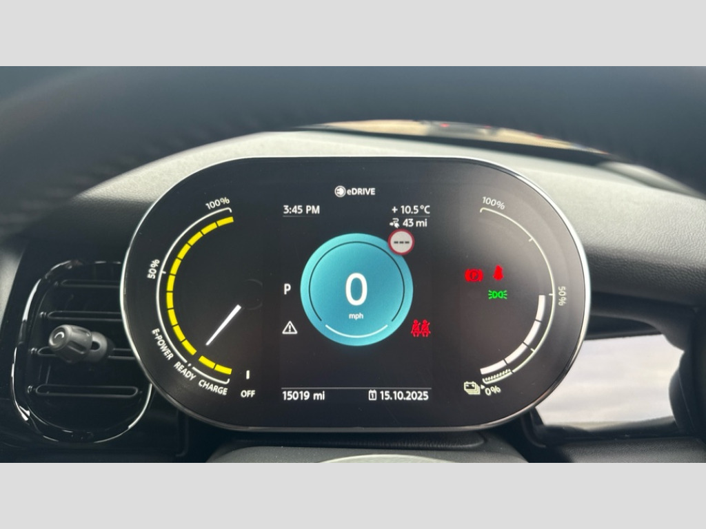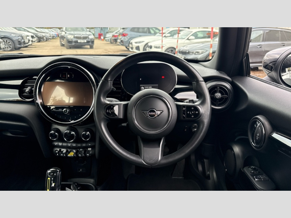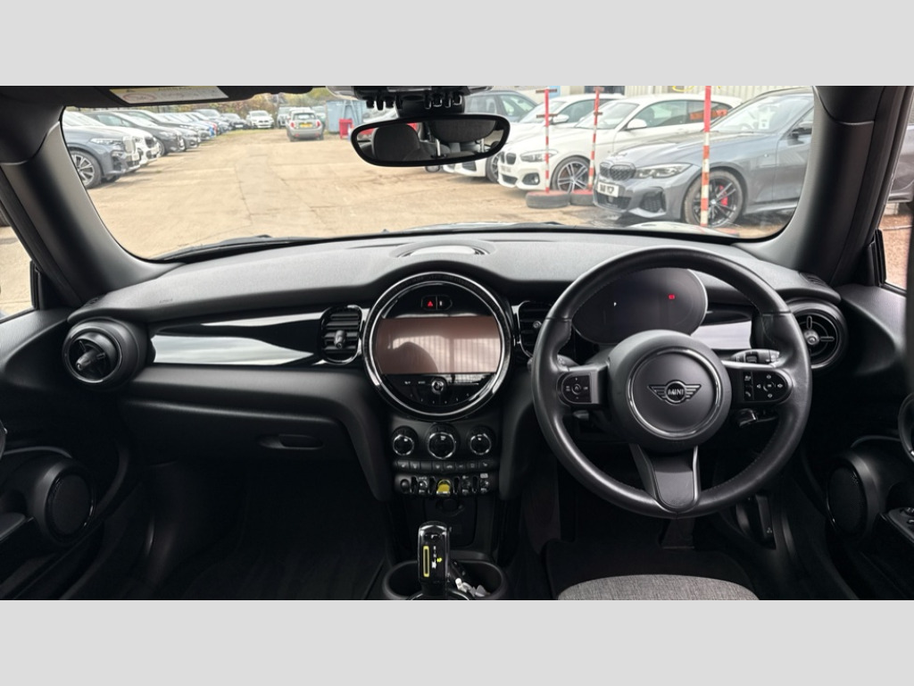 MINI Hatchback 135kW Cooper S Level 2 33kWh 3dr Auto Brake energy recuperation toggle switch with two settings, Compatible mobile phone bluetooth with audio streaming, Cruise control, Digital instrument cluster, Electro-mechanical speed dependant steering assistance, Flexible car sharing preparation, MINI Driving Modes - centre toggle switch to control driving setting (sport, mid and green), On board computer, Rear park distance control, Rear view camera, Service interval indicator, Automatic transmission, Electric front motor installed drives front wheels, Performance Control, 4 speakers in front door trims and underneath front seats, FM tuner and DAB digital radio, Auto dimming and folding door mirrors, Auto headlights, Automatic headlight activation switch, Bonnet scoop, Charging flap embossed with e logo in body colour on drivers side rear panel includes LED light indicating charging status, Dynamic brake lights, Electric front+rear windows, Heated rear window, Heated windscreen washer jets, LED headlight with closed ring and daytime driving lights, Metal door sill strips with Cooper S in yellow, MINI logo projection, Model logo Cooper S in yellow on right of tailgate, Radiator grille including E badge, Rain sensor window wipers, Rear fog lights, Rear LED lights with union jack design, Rear window wiper, Side scuttle panel with integrated indicator with E badge, Third brake light, White indicator lenses, 12V Accessory socket in centre console, 2 seat bench in second row, 2 zone automatic air conditioning, 3 spoke sports multifunctional leather steering wheel with integrated controls for cruise control, brake function + audio/communication, 3 stage heated front seats, 4 lashing eyes in luggage compartment, 60/40 split folding rear seat, AC and DC charging, Ambient lighting, Anthracite headlining, Black velour floor mats, Chrome interior highlights, Cloth/leatherette upholstery with sport seats, Cupholders, Front and rear head restraints, Front and rear isofix with front passenger airbag deactivation, Front centre armrest, Glove compartment, Heat pump, Height adjustable passenger seat, Height and length steering column adjustment, Interior lighting in front of headliner, LED waterfall lighting in orange roof control panel, Luggage compartment lighting, Manual adjustment for thigh rests, Mechanical seat adjustment, driver seat height adjust, forward/back and front seats backrest, Single front passenger seat, Storage compartments in doors, Storage pocket on back of front seats, Sunvisors with vanity mirrors, Two charging cables - 3 pin plug adapter (mode 2) and AC public charging (mode 3), Interior light pack - Mini Electric Hatchback, Navigation pack with Driving Assistant - Mini Electric Hatchback, Storage compartment pack - Mini Hatchback electric, 3 point seatbelts on all four seats, 6 Airbags - front, side, head and seat belt tensioners, Acoustic pedestrian protection, Anti-lock braking system (ABS), DSC - Dynamic Stability Control, Electronic parking brake, Front and rear disc brakes, Two tone horn, Tyre pressure monitoring system, Warning triangle and first aid kit, Alarm system with tilt sensor, monitoring doors, bonnet interior and tailgate, Comfort access system, Electronic vehicle immobiliser, Start/stop toggle in yellow, Piano black interior trim, Surface chequered black interior trim, Tool kit, Tyre repair kit