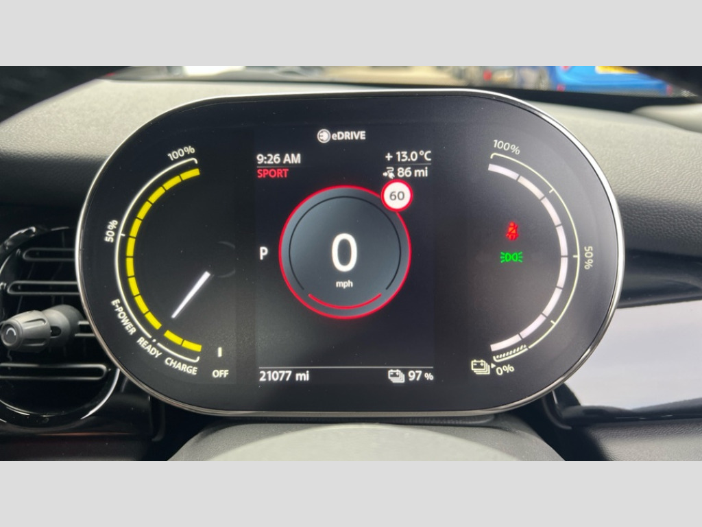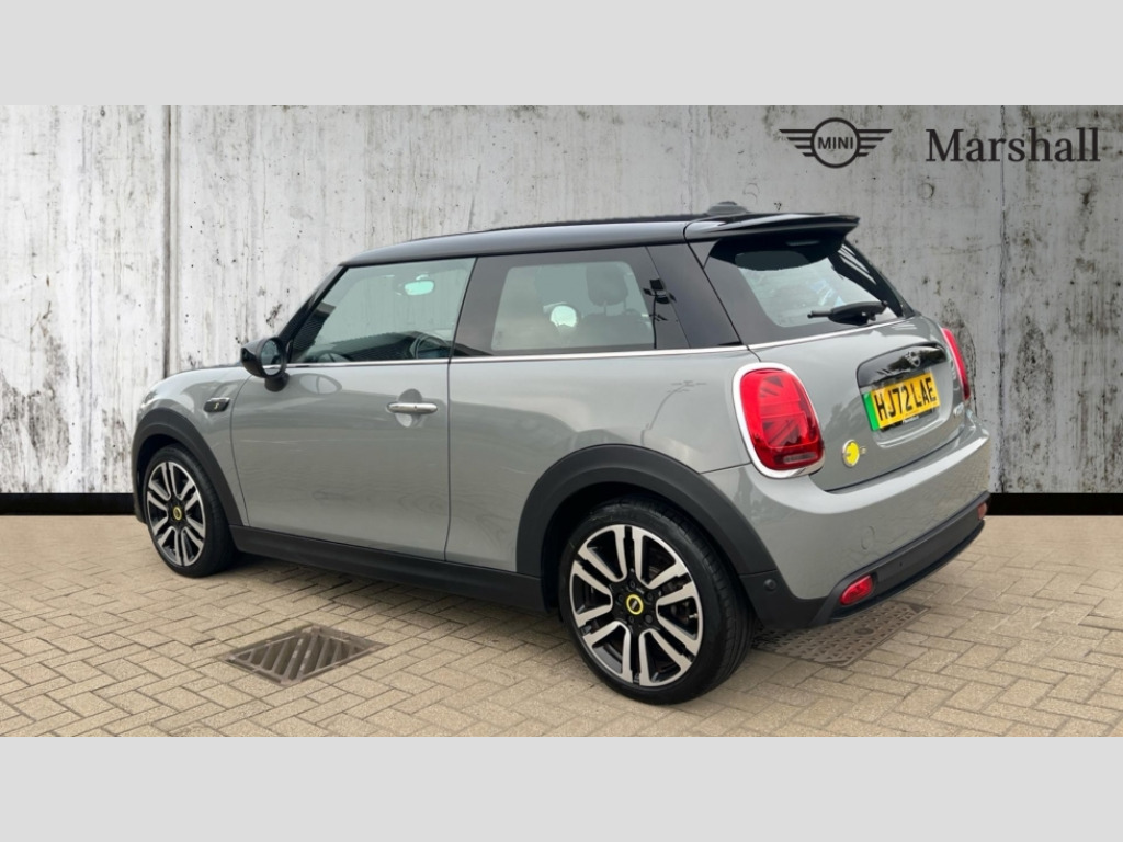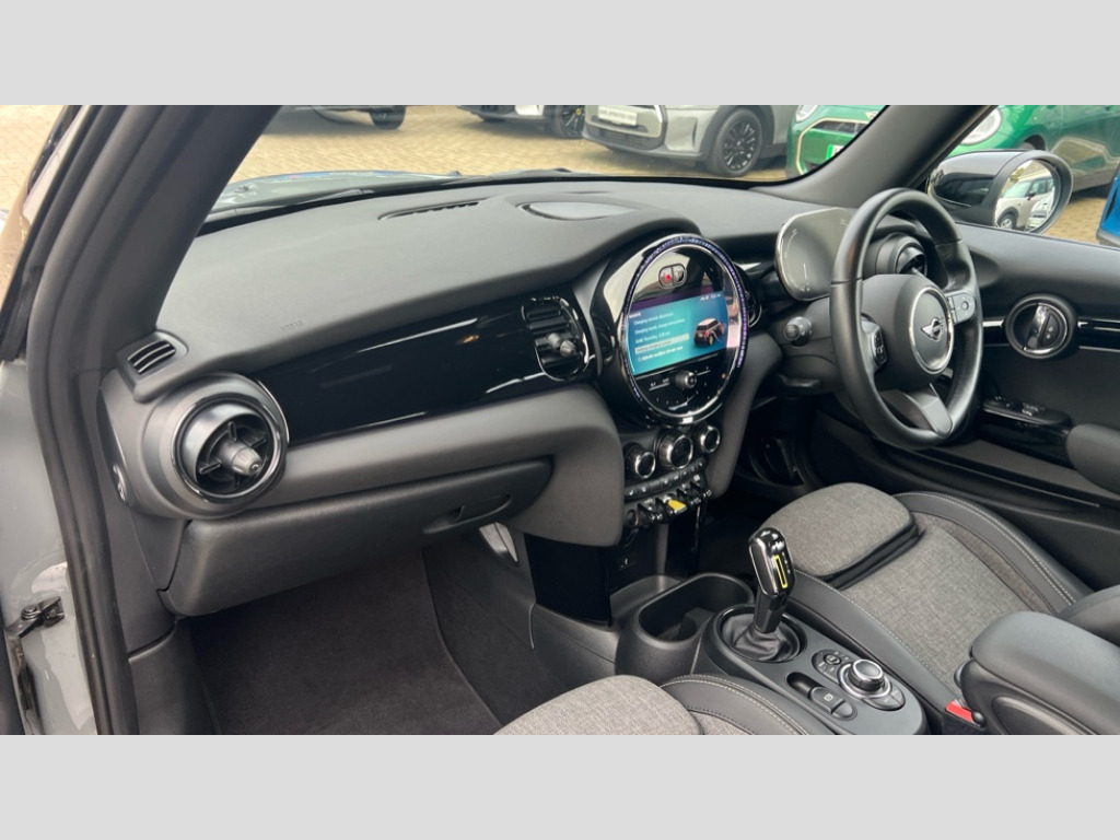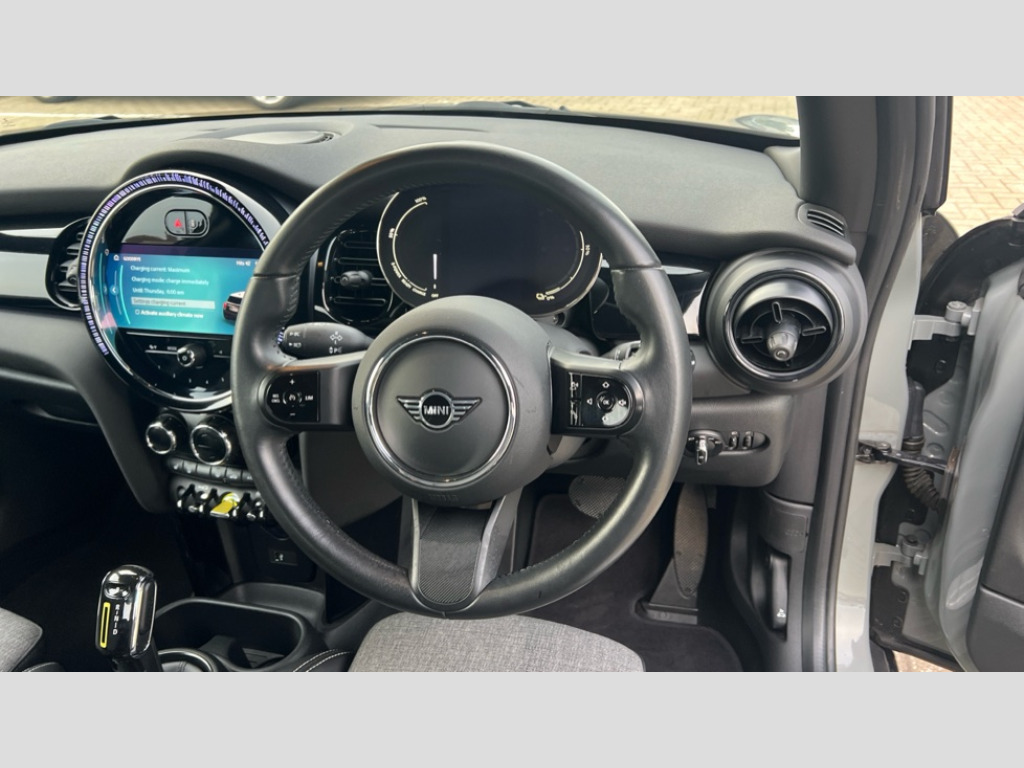 MINI Hatchback 135kW Cooper S Level 2 33kWh 3dr Auto Brake energy recuperation toggle switch with two settings, Compatible mobile phone bluetooth with audio streaming, Cruise control, Digital instrument cluster, Electro-mechanical speed dependant steering assistance, Flexible car sharing preparation, MINI Driving Modes - centre toggle switch to control driving setting (sport, mid and green), On board computer, Rear park distance control, Rear view camera, Service interval indicator, Automatic transmission, Electric front motor installed drives front wheels, Performance Control, 4 speakers in front door trims and underneath front seats, FM tuner and DAB digital radio, Auto dimming and folding door mirrors, Auto headlights, Automatic headlight activation switch, Bonnet scoop, Charging flap embossed with e logo in body colour on drivers side rear panel includes LED light indicating charging status, Dynamic brake lights, Electric front+rear windows, Heated rear window, Heated windscreen washer jets, LED headlight with closed ring and daytime driving lights, Metal door sill strips with Cooper S in yellow, MINI logo projection, Model logo Cooper S in yellow on right of tailgate, Radiator grille including E badge, Rain sensor window wipers, Rear fog lights, Rear LED lights with union jack design, Rear window wiper, Side scuttle panel with integrated indicator with E badge, Third brake light, White indicator lenses, 12V Accessory socket in centre console, 2 seat bench in second row, 2 zone automatic air conditioning, 3 spoke sports multifunctional leather steering wheel with integrated controls for cruise control, brake function + audio/communication, 3 stage heated front seats, 4 lashing eyes in luggage compartment, 60/40 split folding rear seat, AC and DC charging, Ambient lighting, Anthracite headlining, Black velour floor mats, Chrome interior highlights, Cloth/leatherette upholstery with sport seats, Cupholders, Front and rear head restraints, Front and rear isofix with front passenger airbag deactivation, Front centre armrest, Glove compartment, Heat pump, Height adjustable passenger seat, Height and length steering column adjustment, Interior lighting in front of headliner, LED waterfall lighting in orange roof control panel, Luggage compartment lighting, Manual adjustment for thigh rests, Mechanical seat adjustment, driver seat height adjust, forward/back and front seats backrest, Single front passenger seat, Storage compartments in doors, Storage pocket on back of front seats, Sunvisors with vanity mirrors, Two charging cables - 3 pin plug adapter (mode 2) and AC public charging (mode 3), Interior light pack - Mini Electric Hatchback, Navigation pack with Driving Assistant - Mini Electric Hatchback, Storage compartment pack - Mini Hatchback electric, 3 point seatbelts on all four seats, 6 Airbags - front, side, head and seat belt tensioners, Acoustic pedestrian protection, Anti-lock braking system (ABS), DSC - Dynamic Stability Control, Electronic parking brake, Front and rear disc brakes, Two tone horn, Tyre pressure monitoring system, Warning triangle and first aid kit, Alarm system with tilt sensor, monitoring doors, bonnet interior and tailgate, Comfort access system, Electronic vehicle immobiliser, Start/stop toggle in yellow, Piano black interior trim, Surface chequered black interior trim, Tool kit, Tyre repair kit