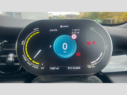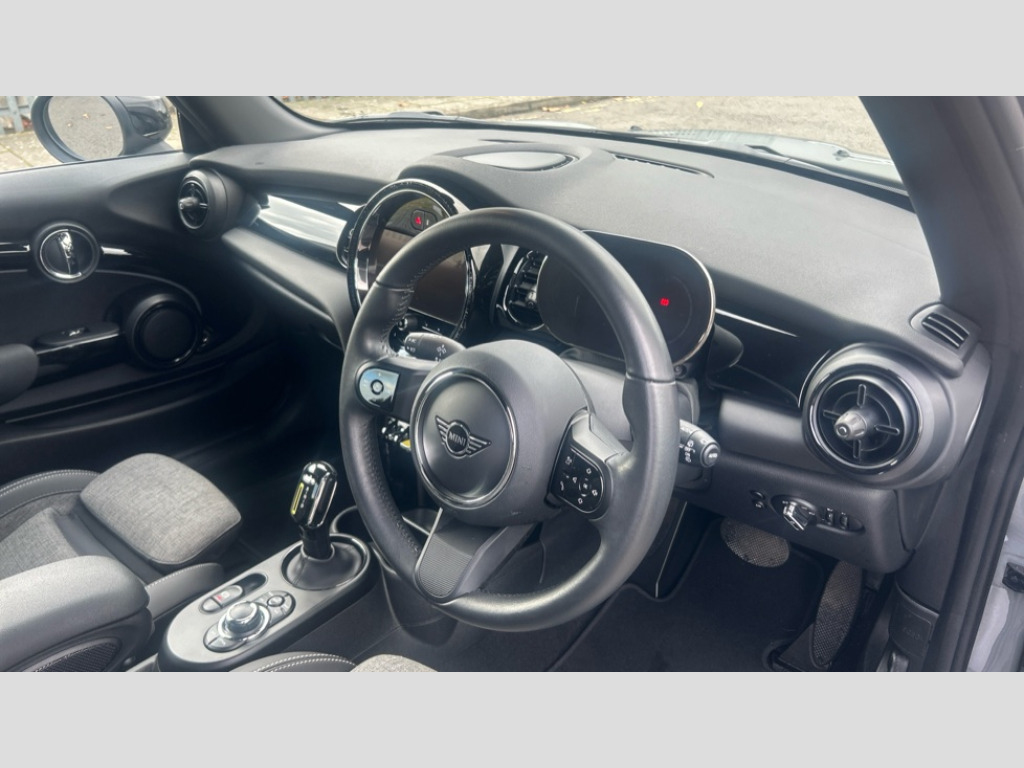 MINI Hatchback 135kW Cooper S Level 2 33kWh 3dr Auto Brake energy recuperation toggle switch with two settings, Compatible mobile phone bluetooth with audio streaming, Cruise control, Digital instrument cluster, Electro-mechanical speed dependant steering assistance, Flexible car sharing preparation, MINI Driving Modes - centre toggle switch to control driving setting (sport, mid and green), On board computer, Rear park distance control, Rear view camera, Service interval indicator, Automatic transmission, Electric front motor installed drives front wheels, Performance Control, 4 speakers in front door trims and underneath front seats, FM tuner and DAB digital radio, Auto dimming and folding door mirrors, Auto headlights, Automatic headlight activation switch, Bonnet scoop, Charging flap embossed with e logo in body colour on drivers side rear panel includes LED light indicating charging status, Dynamic brake lights, Electric front+rear windows, Heated rear window, Heated windscreen washer jets, LED headlight with closed ring and daytime driving lights, Metal door sill strips with Cooper S in yellow, MINI logo projection, Model logo Cooper S in yellow on right of tailgate, Radiator grille including E badge, Rain sensor window wipers, Rear fog lights, Rear LED lights with union jack design, Rear window wiper, Side scuttle panel with integrated indicator with E badge, Third brake light, White indicator lenses, 12V Accessory socket in centre console, 2 seat bench in second row, 2 zone automatic air conditioning, 3 spoke sports multifunctional leather steering wheel with integrated controls for cruise control, brake function + audio/communication, 3 stage heated front seats, 4 lashing eyes in luggage compartment, 60/40 split folding rear seat, AC and DC charging, Ambient lighting, Anthracite headlining, Black velour floor mats, Chrome interior highlights, Cloth/leatherette upholstery with sport seats, Cupholders, Front and rear head restraints, Front and rear isofix with front passenger airbag deactivation, Front centre armrest, Glove compartment, Heat pump, Height adjustable passenger seat, Height and length steering column adjustment, Interior lighting in front of headliner, LED waterfall lighting in orange roof control panel, Luggage compartment lighting, Manual adjustment for thigh rests, Mechanical seat adjustment, driver seat height adjust, forward/back and front seats backrest, Single front passenger seat, Storage compartments in doors, Storage pocket on back of front seats, Sunvisors with vanity mirrors, Two charging cables - 3 pin plug adapter (mode 2) and AC public charging (mode 3), Driving assistant pack - Mini Electric Hatchback, Interior light pack - Mini Electric Hatchback, Navigation pack - Mini Electric Hatchback, Storage compartment pack - Mini Hatchback electric, 3 point seatbelts on all four seats, 6 Airbags - front, side, head and seat belt tensioners, Acoustic pedestrian protection, Anti-lock braking system (ABS), DSC - Dynamic Stability Control, Electronic parking brake, Front and rear disc brakes, Two tone horn, Tyre pressure monitoring system, Warning triangle and first aid kit, Alarm system with tilt sensor, monitoring doors, bonnet interior and tailgate, Comfort access system, Electronic vehicle immobiliser, Start/stop toggle in yellow, Piano black interior trim, Surface chequered black interior trim, Tool kit, Tyre repair kit