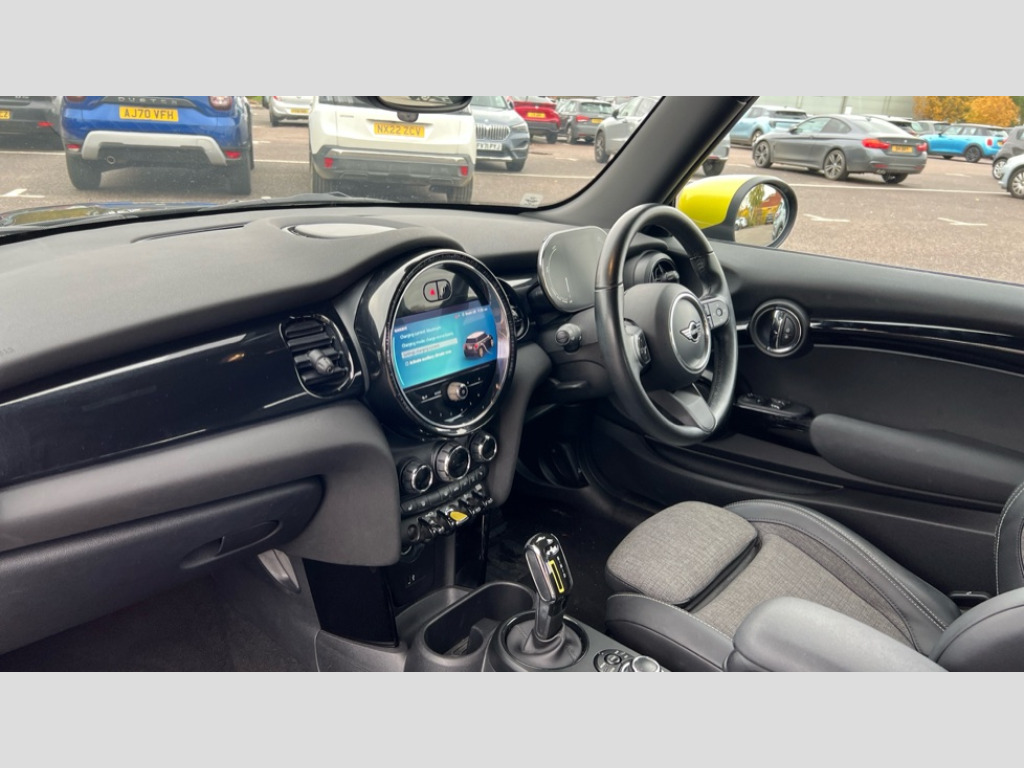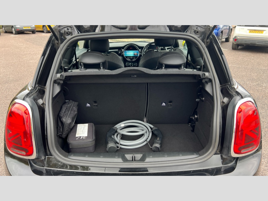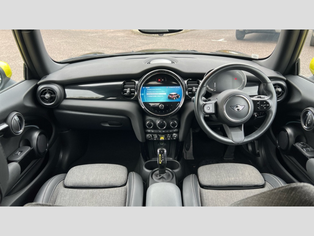 MINI Hatchback 135kW Cooper S Level 2 33kWh 3dr Auto Brake energy recuperation toggle switch with two settings, Compatible mobile phone bluetooth with audio streaming, Digital instrument cluster, Electro-mechanical speed dependant steering assistance, Flexible car sharing preparation, MINI Driving Modes - centre toggle switch to control driving setting (sport, mid and green), On board computer, Rear park distance control, Rear view camera, Service interval indicator, Automatic transmission, Electric front motor installed drives front wheels, Performance Control, 4 speakers in front door trims and underneath front seats, FM tuner and DAB digital radio, Auto dimming and folding door mirrors, Automatic headlight activation switch, Bonnet scoop, Charging flap embossed with e logo in body colour on drivers side rear panel includes LED light indicating charging status, Dynamic brake lights, Electric front+rear windows, Heated rear window, Heated windscreen washer jets, LED headlight with closed ring and daytime driving lights, Metal door sill strips with Cooper S in yellow, MINI logo projection, Model logo Cooper S in yellow on right of tailgate, Radiator grille including E badge, Rain sensor window wipers, Rear fog lights, Rear LED lights with union jack design, Rear window wiper, Side scuttle panel with integrated indicator with E badge, White indicator lenses, 12V Accessory socket in centre console, 2 zone automatic air conditioning, 3 spoke sports multifunctional leather steering wheel with integrated controls for cruise control, brake function + audio/communication, 3 stage heated front seats, 4 lashing eyes in luggage compartment, 60/40 split folding rear seat, AC and DC charging, Ambient lighting, Anthracite headlining, Black velour floor mats, Chrome interior highlights, Cloth/leatherette upholstery with sport seats, Cupholders, Front and rear head restraints, Front and rear isofix with front passenger airbag deactivation, Front centre armrest, Glove compartment, Heat pump, Height adjustable passenger seat, Height and length steering column adjustment, Interior lighting in front of headliner, LED waterfall lighting in orange roof control panel, Luggage compartment lighting, Manual adjustment for thigh rests, Mechanical seat adjustment, driver seat height adjust, forward/back and front seats backrest, Storage compartments in doors, Storage pocket on back of front seats, Sunvisors with vanity mirrors, Two charging cables - 3 pin plug adapter (mode 2) and AC public charging (mode 3), Driving assistant pack - Mini Electric Hatchback, Interior light pack - Mini Hatchback Cooper S Electric 2/3, Navigation pack - Mini Electric Hatchback, Storage compartment pack - Mini Hatchback electric, 3 point seatbelts on all four seats, 6 Airbags - front, side, head and seat belt tensioners, Acoustic pedestrian protection, Anti-lock braking system (ABS), DSC - Dynamic Stability Control, Electronic parking brake, Front and rear disc brakes, Two tone horn, Tyre pressure monitoring system, Warning triangle and first aid kit, Alarm system with tilt sensor, monitoring doors, bonnet interior and tailgate, Comfort access system, Electronic vehicle immobiliser, Piano black interior trim, Surface chequered black interior trim, Tool kit, Tyre repair kit