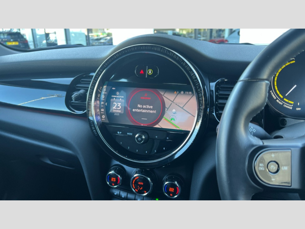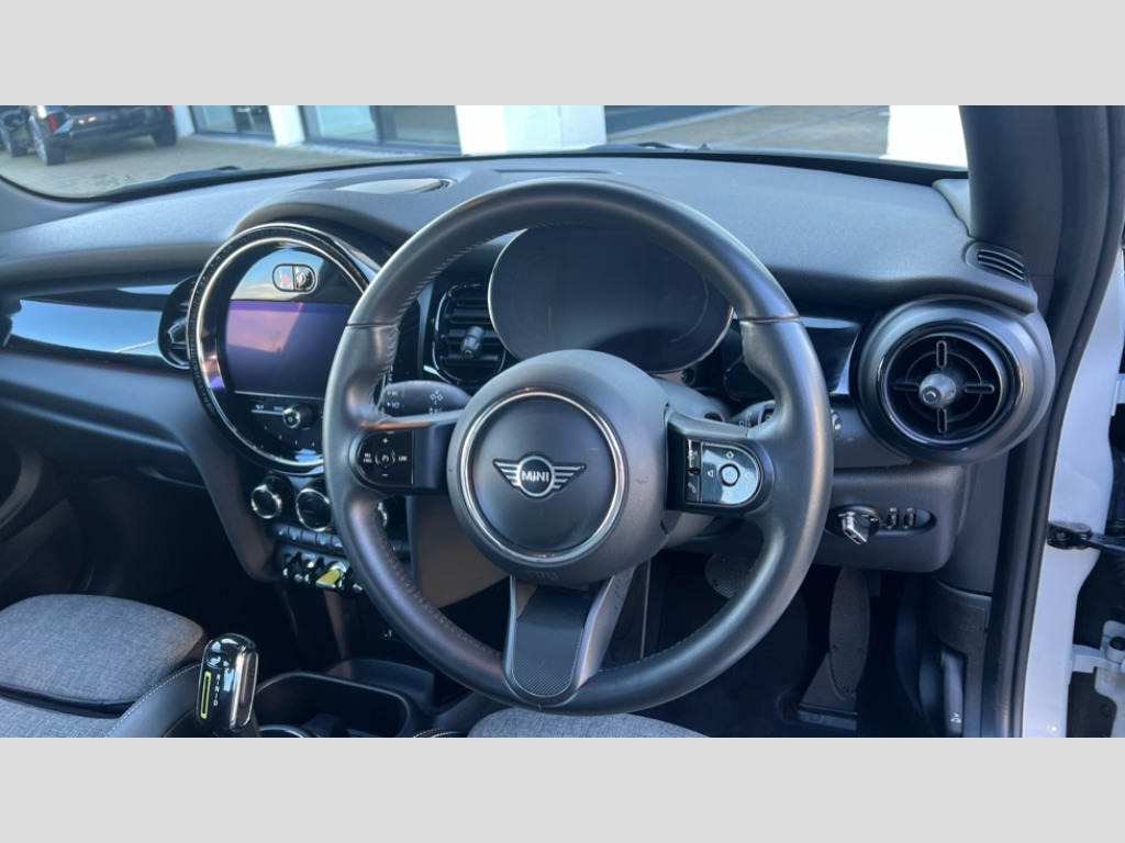 MINI Hatchback 135kW Cooper S Level 2 33kWh 3dr Auto Brake energy recuperation toggle switch with two settings, Compatible mobile phone bluetooth with audio streaming, Cruise control, Digital instrument cluster, Electro-mechanical speed dependant steering assistance, Flexible car sharing preparation, MINI Driving Modes - centre toggle switch to control driving setting (sport, mid and green), On board computer, Rear park distance control, Rear view camera, Service interval indicator, Automatic transmission, Electric front motor installed drives front wheels, Performance Control, 4 speakers in front door trims and underneath front seats, FM tuner and DAB digital radio, Auto dimming and folding door mirrors, Auto headlights, Automatic headlight activation switch, Bonnet scoop, Charging flap embossed with e logo in body colour on drivers side rear panel includes LED light indicating charging status, Dynamic brake lights, Electric front+rear windows, Heated rear window, Heated windscreen washer jets, LED headlight with closed ring and daytime driving lights, Metal door sill strips with Cooper S in yellow, MINI logo projection, Model logo Cooper S in yellow on right of tailgate, Radiator grille including E badge, Rain sensor window wipers, Rear fog lights, Rear LED lights with union jack design, Rear window wiper, Side scuttle panel with integrated indicator with E badge, Third brake light, White indicator lenses, 12V Accessory socket in centre console, 2 seat bench in second row, 2 zone automatic air conditioning, 3 spoke sports multifunctional leather steering wheel with integrated controls for cruise control, brake function + audio/communication, 3 stage heated front seats, 4 lashing eyes in luggage compartment, 60/40 split folding rear seat, AC and DC charging, Ambient lighting, Anthracite headlining, Black velour floor mats, Chrome interior highlights, Cloth/leatherette upholstery with sport seats, Cupholders, Front and rear head restraints, Front and rear isofix with front passenger airbag deactivation, Front centre armrest, Glove compartment, Heat pump, Height adjustable passenger seat, Height and length steering column adjustment, Interior lighting in front of headliner, LED waterfall lighting in orange roof control panel, Luggage compartment lighting, Manual adjustment for thigh rests, Mechanical seat adjustment, driver seat height adjust, forward/back and front seats backrest, Single front passenger seat, Storage compartments in doors, Storage pocket on back of front seats, Sunvisors with vanity mirrors, Two charging cables - 3 pin plug adapter (mode 2) and AC public charging (mode 3), Interior light pack - Mini Electric Hatchback, Navigation pack with Driving Assistant - Mini Electric Hatchback, Storage compartment pack - Mini Hatchback electric, 3 point seatbelts on all four seats, 6 Airbags - front, side, head and seat belt tensioners, Acoustic pedestrian protection, Anti-lock braking system (ABS), DSC - Dynamic Stability Control, Electronic parking brake, Front and rear disc brakes, Two tone horn, Tyre pressure monitoring system, Warning triangle and first aid kit, Alarm system with tilt sensor, monitoring doors, bonnet interior and tailgate, Comfort access system, Electronic vehicle immobiliser, Start/stop toggle in yellow, Piano black interior trim, Surface chequered black interior trim, Tool kit, Tyre repair kit
