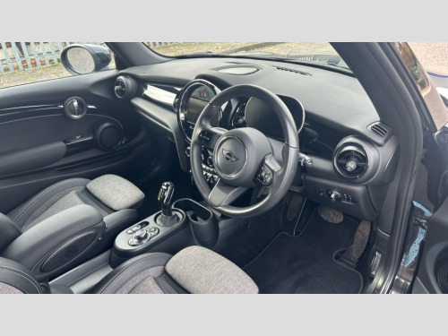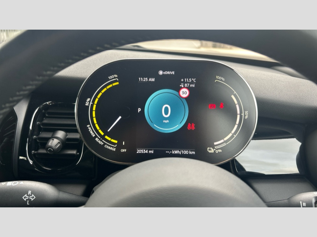 MINI Hatchback 135kW Cooper S Level 2 33kWh 3dr Auto Brake energy recuperation toggle switch with two settings, Compatible mobile phone bluetooth with audio streaming, Cruise control, Digital instrument cluster, Electro-mechanical speed dependant steering assistance, Flexible car sharing preparation, MINI Driving Modes - centre toggle switch to control driving setting (sport, mid and green), On board computer, Rear park distance control, Rear view camera, Service interval indicator, Automatic transmission, Electric front motor installed drives front wheels, Performance Control, 4 speakers in front door trims and underneath front seats, FM tuner and DAB digital radio, Auto dimming and folding door mirrors, Auto headlights, Automatic headlight activation switch, Bonnet scoop, Charging flap embossed with e logo in body colour on drivers side rear panel includes LED light indicating charging status, Dynamic brake lights, Electric front+rear windows, Heated rear window, Heated windscreen washer jets, LED headlight with closed ring and daytime driving lights, Metal door sill strips with Cooper S in yellow, MINI logo projection, Model logo Cooper S in yellow on right of tailgate, Radiator grille including E badge, Rain sensor window wipers, Rear fog lights, Rear LED lights with union jack design, Rear window wiper, Side scuttle panel with integrated indicator with E badge, Third brake light, White indicator lenses, 12V Accessory socket in centre console, 2 seat bench in second row, 2 zone automatic air conditioning, 3 spoke sports multifunctional leather steering wheel with integrated controls for cruise control, brake function + audio/communication, 3 stage heated front seats, 4 lashing eyes in luggage compartment, 60/40 split folding rear seat, AC and DC charging, Ambient lighting, Anthracite headlining, Black velour floor mats, Chrome interior highlights, Cloth/leatherette upholstery with sport seats, Cupholders, Front and rear head restraints, Front and rear isofix with front passenger airbag deactivation, Front centre armrest, Glove compartment, Heat pump, Height adjustable passenger seat, Height and length steering column adjustment, Interior lighting in front of headliner, LED waterfall lighting in orange roof control panel, Luggage compartment lighting, Manual adjustment for thigh rests, Mechanical seat adjustment, driver seat height adjust, forward/back and front seats backrest, Single front passenger seat, Storage compartments in doors, Storage pocket on back of front seats, Sunvisors with vanity mirrors, Two charging cables - 3 pin plug adapter (mode 2) and AC public charging (mode 3), Interior light pack - Mini Electric Hatchback, Navigation pack with Driving Assistant - Mini Electric Hatchback, Storage compartment pack - Mini Hatchback electric, 3 point seatbelts on all four seats, 6 Airbags - front, side, head and seat belt tensioners, Acoustic pedestrian protection, Anti-lock braking system (ABS), DSC - Dynamic Stability Control, Electronic parking brake, Front and rear disc brakes, Two tone horn, Tyre pressure monitoring system, Warning triangle and first aid kit, Alarm system with tilt sensor, monitoring doors, bonnet interior and tailgate, Comfort access system, Electronic vehicle immobiliser, Start/stop toggle in yellow, Piano black interior trim, Surface chequered black interior trim, Tool kit, Tyre repair kit