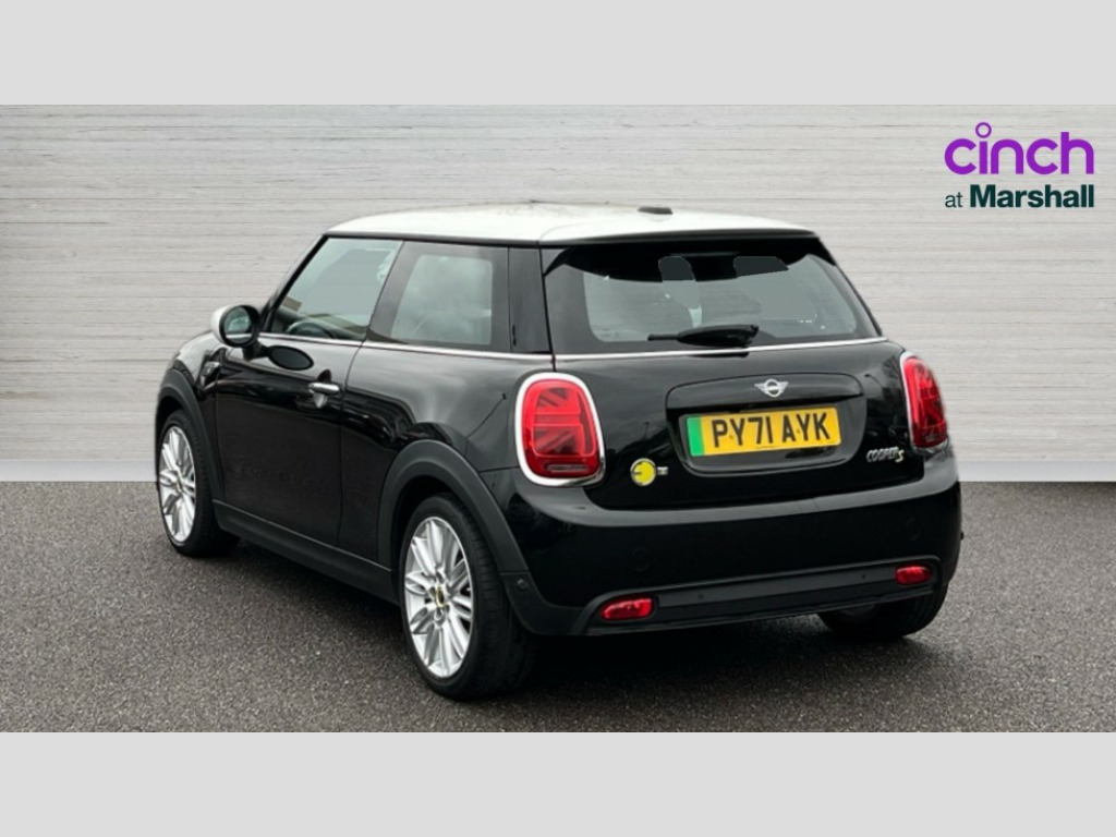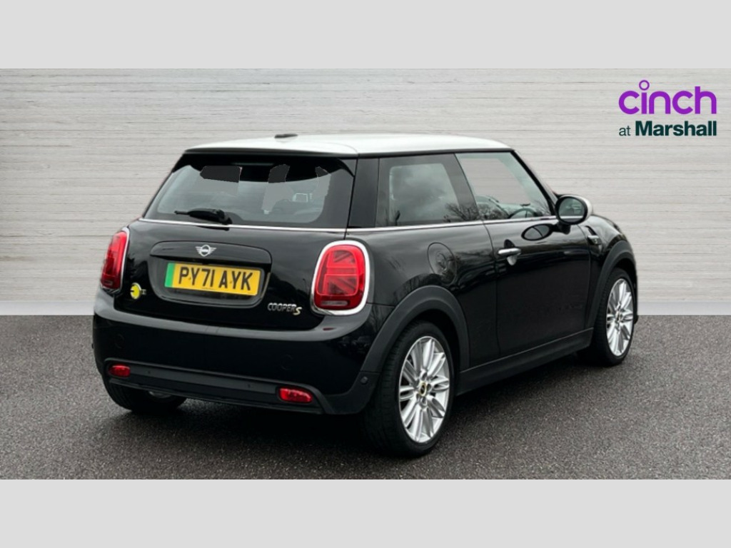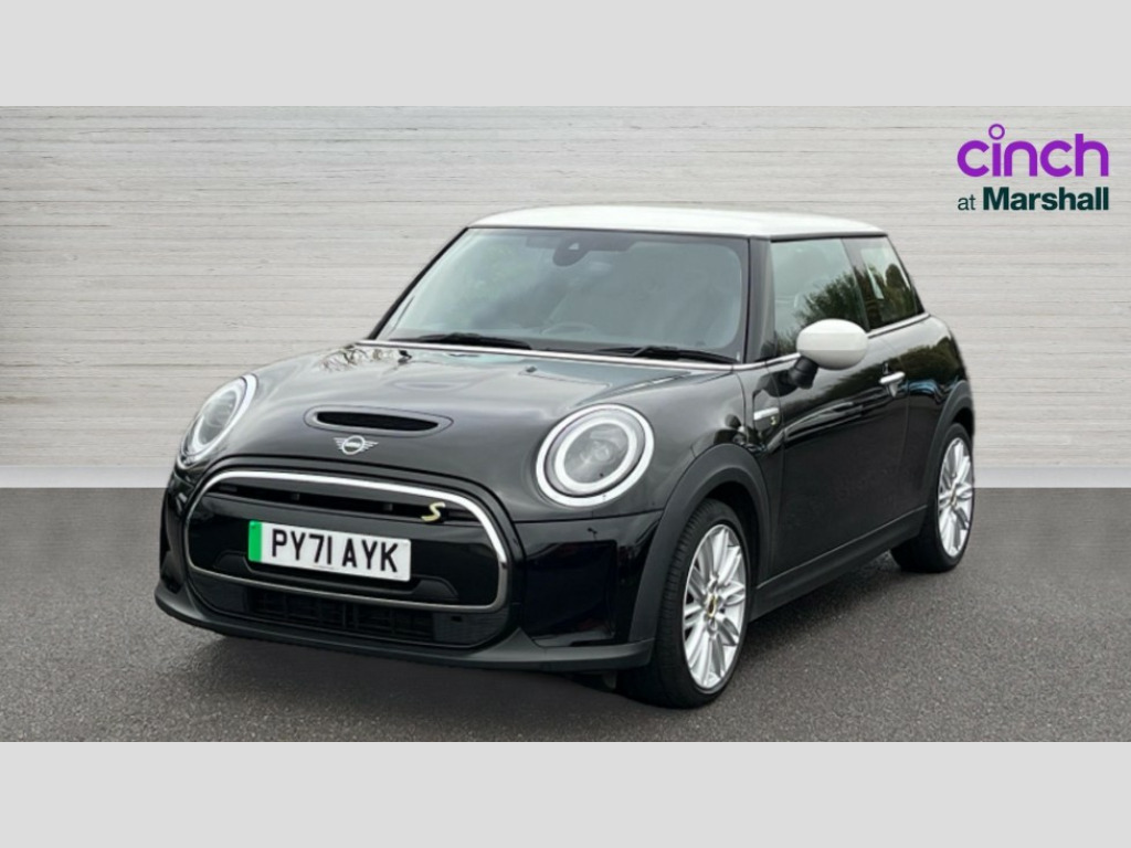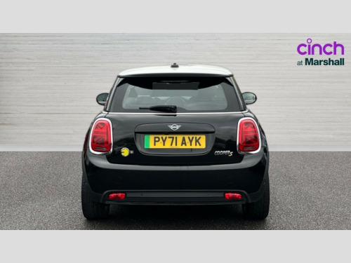 MINI Hatchback 135kW Cooper S Level 2 33kWh 3dr Auto Brake energy recuperation toggle switch with two settings, Compatible mobile phone bluetooth with audio streaming, Digital instrument cluster, Electro-mechanical speed dependant steering assistance, Flexible car sharing preparation, MINI Driving Modes - centre toggle switch to control driving setting (sport, mid and green), On board computer, Rear park distance control, Rear view camera, Service interval indicator, Automatic transmission, Electric front motor installed drives front wheels, Performance Control, 4 speakers in front door trims and underneath front seats, FM tuner and DAB digital radio, Auto dimming and folding door mirrors, Automatic headlight activation switch, Bonnet scoop, Charging flap embossed with e logo in body colour on drivers side rear panel includes LED light indicating charging status, Dynamic brake lights, Electric front+rear windows, Heated rear window, Heated windscreen washer jets, LED headlight with closed ring and daytime driving lights, Metal door sill strips with Cooper S in yellow, MINI logo projection, Model logo Cooper S in yellow on right of tailgate, Radiator grille including E badge, Rain sensor window wipers, Rear fog lights, Rear LED lights with union jack design, Rear window wiper, Side scuttle panel with integrated indicator with E badge, White indicator lenses, 12V Accessory socket in centre console, 2 zone automatic air conditioning, 3 spoke sports multifunctional leather steering wheel with integrated controls for cruise control, brake function + audio/communication, 3 stage heated front seats, 4 lashing eyes in luggage compartment, 60/40 split folding rear seat, AC and DC charging, Ambient lighting, Anthracite headlining, Black velour floor mats, Chrome interior highlights, Cloth/leatherette upholstery with sport seats, Cupholders, Front and rear head restraints, Front and rear isofix with front passenger airbag deactivation, Front centre armrest, Glove compartment, Heat pump, Height adjustable passenger seat, Height and length steering column adjustment, Interior lighting in front of headliner, LED waterfall lighting in orange roof control panel, Luggage compartment lighting, Manual adjustment for thigh rests, Mechanical seat adjustment, driver seat height adjust, forward/back and front seats backrest, Storage compartments in doors, Storage pocket on back of front seats, Sunvisors with vanity mirrors, Two charging cables - 3 pin plug adapter (mode 2) and AC public charging (mode 3), Driving assistant pack - Mini Electric Hatchback, Interior light pack - Mini Hatchback Cooper S Electric 2/3, Navigation pack - Mini Electric Hatchback, Storage compartment pack - Mini Hatchback electric, 3 point seatbelts on all four seats, 6 Airbags - front, side, head and seat belt tensioners, Acoustic pedestrian protection, Anti-lock braking system (ABS), DSC - Dynamic Stability Control, Electronic parking brake, Front and rear disc brakes, Two tone horn, Tyre pressure monitoring system, Warning triangle and first aid kit, Alarm system with tilt sensor, monitoring doors, bonnet interior and tailgate, Comfort access system, Electronic vehicle immobiliser, Piano black interior trim, Surface chequered black interior trim, Tool kit, Tyre repair kit