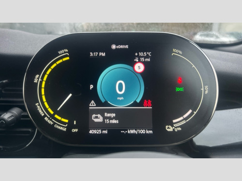 MINI Hatchback 135kW Cooper S Level 2 33kWh 3dr Auto Brake energy recuperation toggle switch with two settings, Compatible mobile phone bluetooth with audio streaming, Digital instrument cluster, Electro-mechanical speed dependant steering assistance, Flexible car sharing preparation, MINI Driving Modes - centre toggle switch to control driving setting (sport, mid and green), On board computer, Rear park distance control, Rear view camera, Service interval indicator, Automatic transmission, Electric front motor installed drives front wheels, Performance Control, 4 speakers in front door trims and underneath front seats, FM tuner and DAB digital radio, Auto dimming and folding door mirrors, Automatic headlight activation switch, Bonnet scoop, Charging flap embossed with e logo in body colour on drivers side rear panel includes LED light indicating charging status, Dynamic brake lights, Electric front+rear windows, Heated rear window, Heated windscreen washer jets, LED headlight with closed ring and daytime driving lights, Metal door sill strips with Cooper S in yellow, MINI logo projection, Model logo Cooper S in yellow on right of tailgate, Radiator grille including E badge, Rain sensor window wipers, Rear fog lights, Rear LED lights with union jack design, Rear window wiper, Side scuttle panel with integrated indicator with E badge, White indicator lenses, 12V Accessory socket in centre console, 2 zone automatic air conditioning, 3 spoke sports multifunctional leather steering wheel with integrated controls for cruise control, brake function + audio/communication, 3 stage heated front seats, 4 lashing eyes in luggage compartment, 60/40 split folding rear seat, AC and DC charging, Ambient lighting, Anthracite headlining, Black velour floor mats, Chrome interior highlights, Cloth/leatherette upholstery with sport seats, Cupholders, Front and rear head restraints, Front and rear isofix with front passenger airbag deactivation, Front centre armrest, Glove compartment, Heat pump, Height adjustable passenger seat, Height and length steering column adjustment, Interior lighting in front of headliner, LED waterfall lighting in orange roof control panel, Luggage compartment lighting, Manual adjustment for thigh rests, Mechanical seat adjustment, driver seat height adjust, forward/back and front seats backrest, Storage compartments in doors, Storage pocket on back of front seats, Sunvisors with vanity mirrors, Two charging cables - 3 pin plug adapter (mode 2) and AC public charging (mode 3), Driving assistant pack - Mini Electric Hatchback, Interior light pack - Mini Hatchback Cooper S Electric 2/3, Navigation pack - Mini Electric Hatchback, Storage compartment pack - Mini Hatchback electric, 3 point seatbelts on all four seats, 6 Airbags - front, side, head and seat belt tensioners, Acoustic pedestrian protection, Anti-lock braking system (ABS), DSC - Dynamic Stability Control, Electronic parking brake, Front and rear disc brakes, Two tone horn, Tyre pressure monitoring system, Warning triangle and first aid kit, Alarm system with tilt sensor, monitoring doors, bonnet interior and tailgate, Comfort access system, Electronic vehicle immobiliser, Piano black interior trim, Surface chequered black interior trim, Tool kit, Tyre repair kit