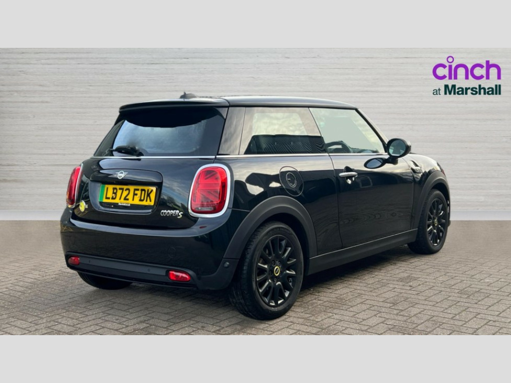 MINI Hatchback 135kW Cooper S Level 2 33kWh 3dr Auto Brake energy recuperation toggle switch with two settings, Compatible mobile phone bluetooth with audio streaming, Cruise control, Digital instrument cluster, Electro-mechanical speed dependant steering assistance, Flexible car sharing preparation, MINI Driving Modes - centre toggle switch to control driving setting (sport, mid and green), On board computer, Rear park distance control, Rear view camera, Service interval indicator, Automatic transmission, Electric front motor installed drives front wheels, Performance Control, 4 speakers in front door trims and underneath front seats, FM tuner and DAB digital radio, Auto dimming and folding door mirrors, Auto headlights, Automatic headlight activation switch, Bonnet scoop, Charging flap embossed with e logo in body colour on drivers side rear panel includes LED light indicating charging status, Dynamic brake lights, Electric front+rear windows, Heated rear window, Heated windscreen washer jets, LED headlight with closed ring and daytime driving lights, Metal door sill strips with Cooper S in yellow, MINI logo projection, Model logo Cooper S in yellow on right of tailgate, Radiator grille including E badge, Rain sensor window wipers, Rear fog lights, Rear LED lights with union jack design, Rear window wiper, Side scuttle panel with integrated indicator with E badge, Third brake light, White indicator lenses, 12V Accessory socket in centre console, 2 seat bench in second row, 2 zone automatic air conditioning, 3 spoke sports multifunctional leather steering wheel with integrated controls for cruise control, brake function + audio/communication, 3 stage heated front seats, 4 lashing eyes in luggage compartment, 60/40 split folding rear seat, AC and DC charging, Ambient lighting, Anthracite headlining, Black velour floor mats, Chrome interior highlights, Cloth/leatherette upholstery with sport seats, Cupholders, Front and rear head restraints, Front and rear isofix with front passenger airbag deactivation, Front centre armrest, Glove compartment, Heat pump, Height adjustable passenger seat, Height and length steering column adjustment, Interior lighting in front of headliner, LED waterfall lighting in orange roof control panel, Luggage compartment lighting, Manual adjustment for thigh rests, Mechanical seat adjustment, driver seat height adjust, forward/back and front seats backrest, Single front passenger seat, Storage compartments in doors, Storage pocket on back of front seats, Sunvisors with vanity mirrors, Two charging cables - 3 pin plug adapter (mode 2) and AC public charging (mode 3), Interior light pack - Mini Electric Hatchback, Navigation pack with Driving Assistant - Mini Electric Hatchback, Storage compartment pack - Mini Hatchback electric, 3 point seatbelts on all four seats, 6 Airbags - front, side, head and seat belt tensioners, Acoustic pedestrian protection, Anti-lock braking system (ABS), DSC - Dynamic Stability Control, Electronic parking brake, Front and rear disc brakes, Two tone horn, Tyre pressure monitoring system, Warning triangle and first aid kit, Alarm system with tilt sensor, monitoring doors, bonnet interior and tailgate, Comfort access system, Electronic vehicle immobiliser, Start/stop toggle in yellow, Piano black interior trim, Surface chequered black interior trim, Tool kit, Tyre repair kit