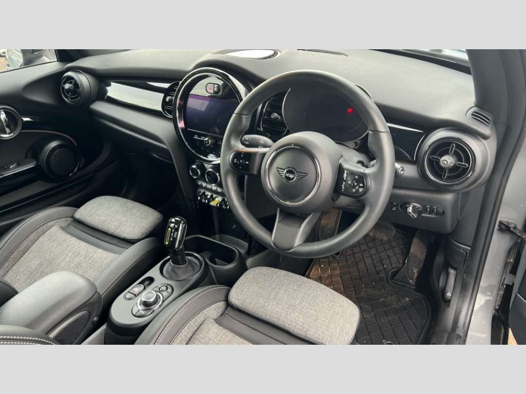 MINI Hatchback 135kW Cooper S Level 2 33kWh 3dr Auto Brake energy recuperation toggle switch with two settings, Compatible mobile phone bluetooth with audio streaming, Cruise control, Digital instrument cluster, Electro-mechanical speed dependant steering assistance, Flexible car sharing preparation, MINI Driving Modes - centre toggle switch to control driving setting (sport, mid and green), On board computer, Rear park distance control, Rear view camera, Service interval indicator, Automatic transmission, Electric front motor installed drives front wheels, Performance Control, 4 speakers in front door trims and underneath front seats, FM tuner and DAB digital radio, Auto dimming and folding door mirrors, Auto headlights, Automatic headlight activation switch, Bonnet scoop, Charging flap embossed with e logo in body colour on drivers side rear panel includes LED light indicating charging status, Dynamic brake lights, Electric front+rear windows, Heated rear window, Heated windscreen washer jets, LED headlight with closed ring and daytime driving lights, Metal door sill strips with Cooper S in yellow, MINI logo projection, Model logo Cooper S in yellow on right of tailgate, Radiator grille including E badge, Rain sensor window wipers, Rear fog lights, Rear LED lights with union jack design, Rear window wiper, Side scuttle panel with integrated indicator with E badge, Third brake light, White indicator lenses, 12V Accessory socket in centre console, 2 seat bench in second row, 2 zone automatic air conditioning, 3 spoke sports multifunctional leather steering wheel with integrated controls for cruise control, brake function + audio/communication, 3 stage heated front seats, 4 lashing eyes in luggage compartment, 60/40 split folding rear seat, AC and DC charging, Ambient lighting, Anthracite headlining, Black velour floor mats, Chrome interior highlights, Cloth/leatherette upholstery with sport seats, Cupholders, Front and rear head restraints, Front and rear isofix with front passenger airbag deactivation, Front centre armrest, Glove compartment, Heat pump, Height adjustable passenger seat, Height and length steering column adjustment, Interior lighting in front of headliner, LED waterfall lighting in orange roof control panel, Luggage compartment lighting, Manual adjustment for thigh rests, Mechanical seat adjustment, driver seat height adjust, forward/back and front seats backrest, Single front passenger seat, Storage compartments in doors, Storage pocket on back of front seats, Sunvisors with vanity mirrors, Two charging cables - 3 pin plug adapter (mode 2) and AC public charging (mode 3), Interior light pack - Mini Electric Hatchback, Navigation pack with Driving Assistant - Mini Electric Hatchback, Storage compartment pack - Mini Hatchback electric, 3 point seatbelts on all four seats, 6 Airbags - front, side, head and seat belt tensioners, Acoustic pedestrian protection, Anti-lock braking system (ABS), DSC - Dynamic Stability Control, Electronic parking brake, Front and rear disc brakes, Two tone horn, Tyre pressure monitoring system, Warning triangle and first aid kit, Alarm system with tilt sensor, monitoring doors, bonnet interior and tailgate, Comfort access system, Electronic vehicle immobiliser, Start/stop toggle in yellow, Piano black interior trim, Surface chequered black interior trim, Tool kit, Tyre repair kit