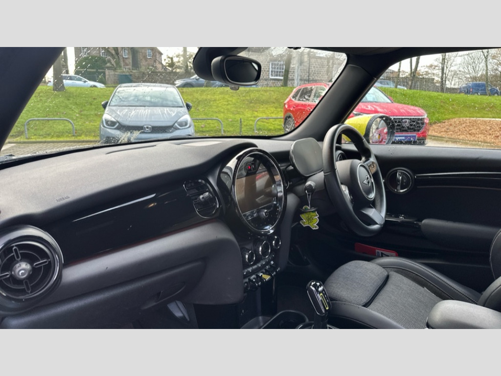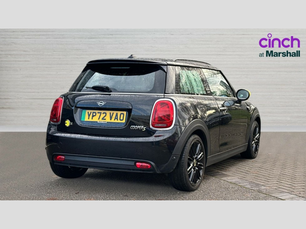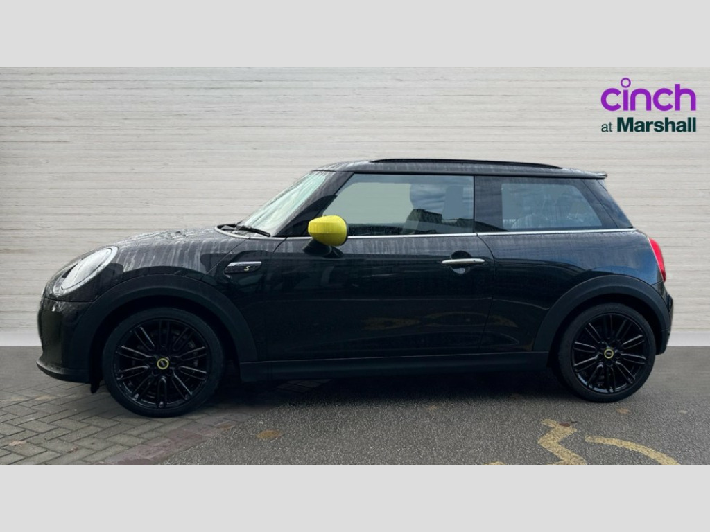 MINI Hatchback 135kW Cooper S Level 2 33kWh 3dr Auto Brake energy recuperation toggle switch with two settings, Compatible mobile phone bluetooth with audio streaming, Cruise control, Digital instrument cluster, Electro-mechanical speed dependant steering assistance, Flexible car sharing preparation, MINI Driving Modes - centre toggle switch to control driving setting (sport, mid and green), On board computer, Rear park distance control, Rear view camera, Service interval indicator, Automatic transmission, Electric front motor installed drives front wheels, Performance Control, 4 speakers in front door trims and underneath front seats, FM tuner and DAB digital radio, Auto dimming and folding door mirrors, Auto headlights, Automatic headlight activation switch, Bonnet scoop, Charging flap embossed with e logo in body colour on drivers side rear panel includes LED light indicating charging status, Dynamic brake lights, Electric front+rear windows, Heated rear window, Heated windscreen washer jets, LED headlight with closed ring and daytime driving lights, Metal door sill strips with Cooper S in yellow, MINI logo projection, Model logo Cooper S in yellow on right of tailgate, Radiator grille including E badge, Rain sensor window wipers, Rear fog lights, Rear LED lights with union jack design, Rear window wiper, Side scuttle panel with integrated indicator with E badge, Third brake light, White indicator lenses, 12V Accessory socket in centre console, 2 seat bench in second row, 2 zone automatic air conditioning, 3 spoke sports multifunctional leather steering wheel with integrated controls for cruise control, brake function + audio/communication, 3 stage heated front seats, 4 lashing eyes in luggage compartment, 60/40 split folding rear seat, AC and DC charging, Ambient lighting, Anthracite headlining, Black velour floor mats, Chrome interior highlights, Cloth/leatherette upholstery with sport seats, Cupholders, Front and rear head restraints, Front and rear isofix with front passenger airbag deactivation, Front centre armrest, Glove compartment, Heat pump, Height adjustable passenger seat, Height and length steering column adjustment, Interior lighting in front of headliner, LED waterfall lighting in orange roof control panel, Luggage compartment lighting, Manual adjustment for thigh rests, Mechanical seat adjustment, driver seat height adjust, forward/back and front seats backrest, Single front passenger seat, Storage compartments in doors, Storage pocket on back of front seats, Sunvisors with vanity mirrors, Two charging cables - 3 pin plug adapter (mode 2) and AC public charging (mode 3), Interior light pack - Mini Electric Hatchback, Navigation pack with Driving Assistant - Mini Electric Hatchback, Storage compartment pack - Mini Hatchback electric, 3 point seatbelts on all four seats, 6 Airbags - front, side, head and seat belt tensioners, Acoustic pedestrian protection, Anti-lock braking system (ABS), DSC - Dynamic Stability Control, Electronic parking brake, Front and rear disc brakes, Two tone horn, Tyre pressure monitoring system, Warning triangle and first aid kit, Alarm system with tilt sensor, monitoring doors, bonnet interior and tailgate, Comfort access system, Electronic vehicle immobiliser, Start/stop toggle in yellow, Piano black interior trim, Surface chequered black interior trim, Tool kit, Tyre repair kit
