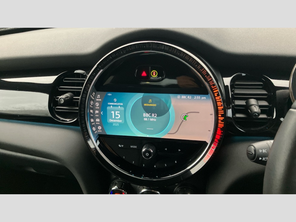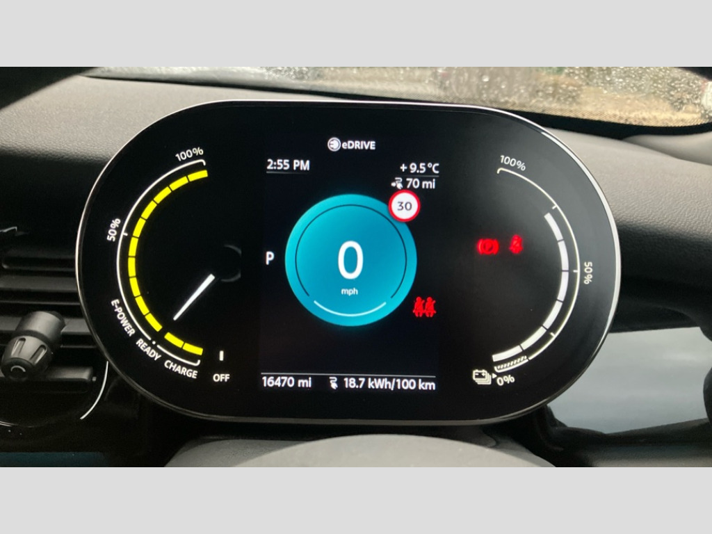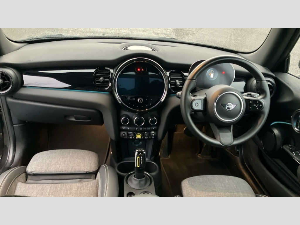 MINI Hatchback 135kW Cooper S Level 2 33kWh 3dr Auto Brake energy recuperation toggle switch with two settings, Compatible mobile phone bluetooth with audio streaming, Digital instrument cluster, Electro-mechanical speed dependant steering assistance, Flexible car sharing preparation, MINI Driving Modes - centre toggle switch to control driving setting (sport, mid and green), On board computer, Rear park distance control, Rear view camera, Service interval indicator, Automatic transmission, Electric front motor installed drives front wheels, Performance Control, 4 speakers in front door trims and underneath front seats, FM tuner and DAB digital radio, Auto dimming and folding door mirrors, Automatic headlight activation switch, Bonnet scoop, Charging flap embossed with e logo in body colour on drivers side rear panel includes LED light indicating charging status, Dynamic brake lights, Electric front+rear windows, Heated rear window, Heated windscreen washer jets, LED headlight with closed ring and daytime driving lights, Metal door sill strips with Cooper S in yellow, MINI logo projection, Model logo Cooper S in yellow on right of tailgate, Radiator grille including E badge, Rain sensor window wipers, Rear fog lights, Rear LED lights with union jack design, Rear window wiper, Side scuttle panel with integrated indicator with E badge, White indicator lenses, 12V Accessory socket in centre console, 2 zone automatic air conditioning, 3 spoke sports multifunctional leather steering wheel with integrated controls for cruise control, brake function + audio/communication, 3 stage heated front seats, 4 lashing eyes in luggage compartment, 60/40 split folding rear seat, AC and DC charging, Ambient lighting, Anthracite headlining, Black velour floor mats, Chrome interior highlights, Cloth/leatherette upholstery with sport seats, Cupholders, Front and rear head restraints, Front and rear isofix with front passenger airbag deactivation, Front centre armrest, Glove compartment, Heat pump, Height adjustable passenger seat, Height and length steering column adjustment, Interior lighting in front of headliner, LED waterfall lighting in orange roof control panel, Luggage compartment lighting, Manual adjustment for thigh rests, Mechanical seat adjustment, driver seat height adjust, forward/back and front seats backrest, Storage compartments in doors, Storage pocket on back of front seats, Sunvisors with vanity mirrors, Two charging cables - 3 pin plug adapter (mode 2) and AC public charging (mode 3), Driving assistant pack - Mini Electric Hatchback, Interior light pack - Mini Hatchback Cooper S Electric 2/3, Navigation pack - Mini Electric Hatchback, Storage compartment pack - Mini Hatchback electric, 3 point seatbelts on all four seats, 6 Airbags - front, side, head and seat belt tensioners, Acoustic pedestrian protection, Anti-lock braking system (ABS), DSC - Dynamic Stability Control, Electronic parking brake, Front and rear disc brakes, Two tone horn, Tyre pressure monitoring system, Warning triangle and first aid kit, Alarm system with tilt sensor, monitoring doors, bonnet interior and tailgate, Comfort access system, Electronic vehicle immobiliser, Piano black interior trim, Surface chequered black interior trim, Tool kit, Tyre repair kit