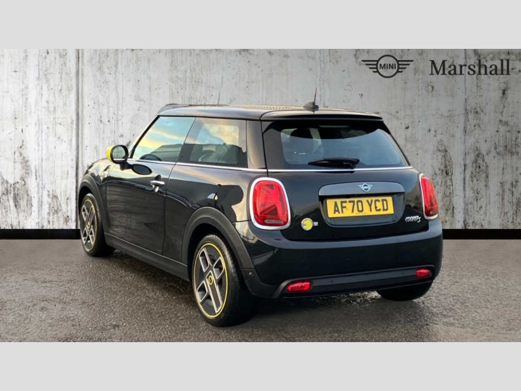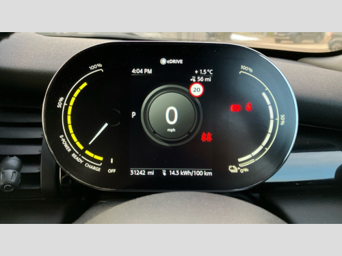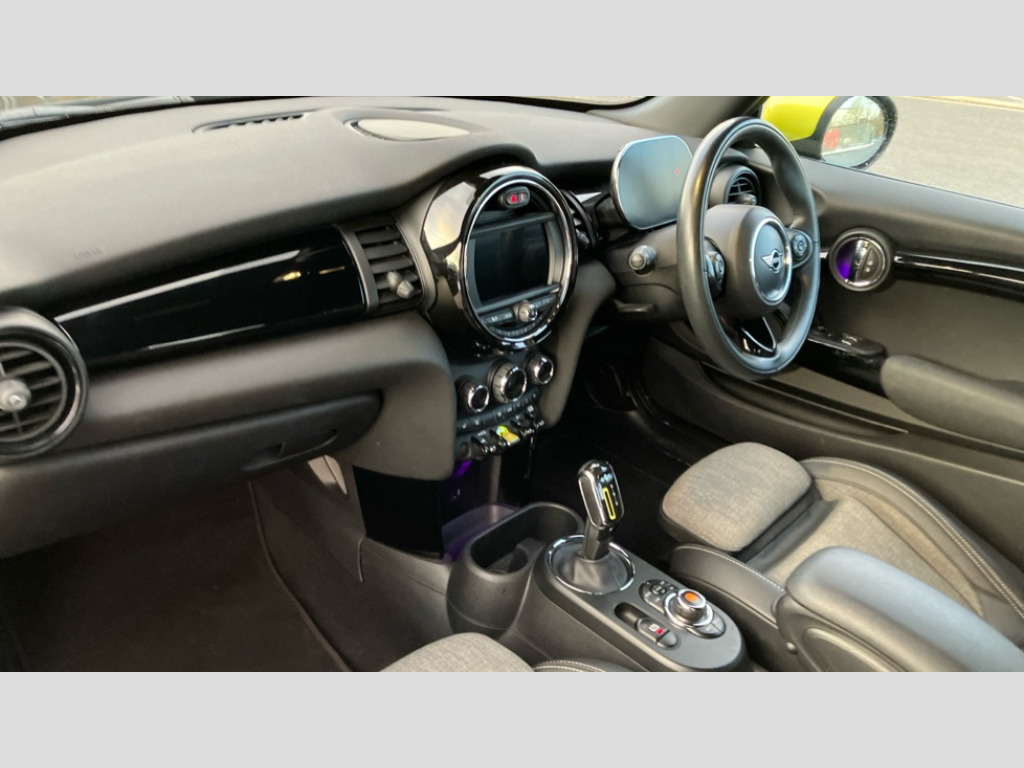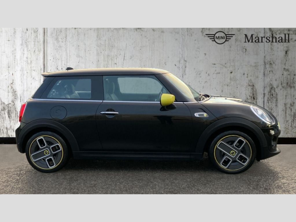 MINI Hatchback 135kW Cooper S Level 2 33kWh 3dr Auto Brake energy recuperation toggle switch with two settings, Compatible mobile phone bluetooth with audio streaming, Cruise control, Digital cockpit, Electro-mechanical speed dependant steering assistance, MINI Driving Modes - centre toggle switch to control driving setting (sport, mid and green), On board computer, Rear park distance control, Rear view camera, Service interval indicator, Automatic transmission, Electric front motor installed drives front wheels, Performance Control, 4 speakers in front door trims and underneath front seats, FM tuner and DAB digital radio, Auto dimming and folding door mirrors, Automatic headlight activation switch, Bonnet scoop, Charging flap embossed with e logo in body colour on drivers side rear panel includes LED light indicating charging status, Dynamic brake lights, Electric front+rear windows, Front grille, tailgate handle in vigorous grey, Heated rear window, Heated windscreen washer jets, LED front fog lights, LED headlight with closed ring and daytime driving lights, Metal door sill strips with Cooper S in yellow, Model logo Cooper S in yellow on right of tailgate, Radiator grille including E badge, Rain sensor window wipers, Rear fog lights, Rear LED lights with union jack design, Rear window wiper, Side scuttle panel with integrated indicator with E badge, White indicator lenses, 12V Accessory socket in centre console, 2 zone automatic air conditioning, 3 spoke sports multifunctional leather steering wheel with integrated controls for cruise control, brake function + audio/communication, 4 lashing eyes in luggage compartment, 60/40 split folding rear seat, AC and DC charging, Black velour floor mats, Carbon Black colour line, knee roll and door armrests, Chrome interior highlights, Cloth/leatherette upholstery with sport seats, Cupholders, Driver and front passenger seat heating, Front and rear head restraints, Front and rear isofix with front passenger airbag deactivation, Front centre armrest, Glove compartment, Heat pump, Height adjustable passenger seat, Height and length steering column adjustment, Interior lighting in front of headliner, Leather gearshift lever and handbrake gaiters, LED waterfall lighting in orange roof control panel, Luggage compartment lighting, Manual adjustment for thigh rests, Mechanical seat adjustment, driver seat height adjust, forward/back and front seats backrest, Storage compartments in doors, Storage pocket on back of front seats, Sunvisors with vanity mirrors, Two charging cables - 3 pin plug adapter (mode 2) and AC public charging (mode 3), Driving assistant pack - Hatchback Cooper S Electric, Interior light pack - Mini Hatchback Cooper S Electric 2/3, Interior style MINI dark desgin pack - Mini Hatchback Cooper S Electric 2, Mini excitement pack - Hatchback, Navigation pack - Mini Hatchback Cooper S Electric 1/2, 3 point seatbelts on all four seats, 6 Airbags - front, side, head and seat belt tensioners, Acoustic pedestrian protection, Anti-lock braking system (ABS), DSC - Dynamic Stability Control, Electronic parking brake, Front and rear disc brakes, Two tone horn, Tyre pressure monitoring system, Warning triangle and first aid kit, Alarm system with tilt sensor, monitoring doors, bonnet interior and tailgate, Comfort access system, Electronic vehicle immobiliser, Start/stop toggle in yellow with keyless go, Tool kit, Tyre repair kit
