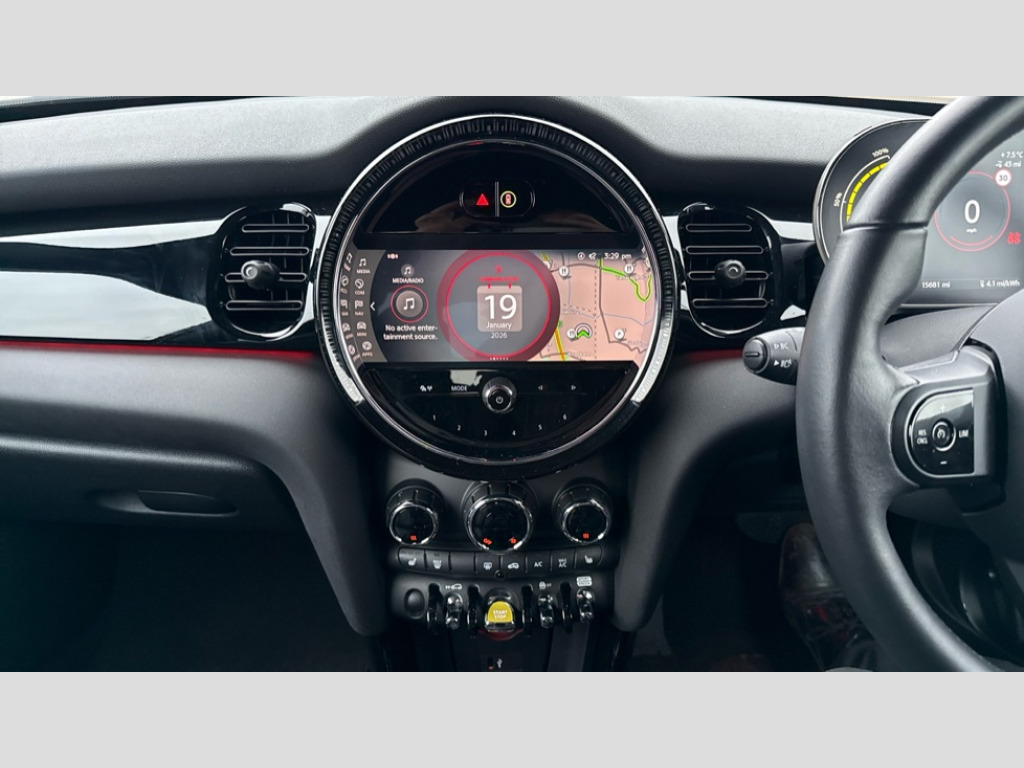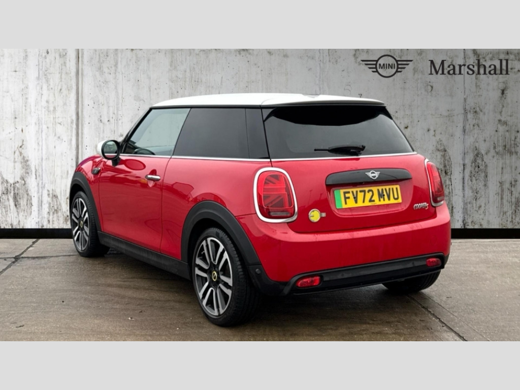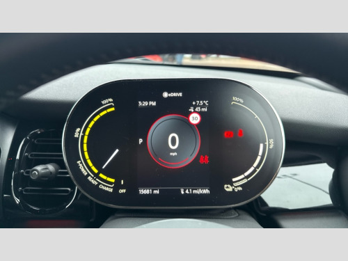 MINI Hatchback 135kW Cooper S Level 2 33kWh 3dr Auto Brake energy recuperation toggle switch with two settings, Compatible mobile phone bluetooth with audio streaming, Cruise control, Digital instrument cluster, Electro-mechanical speed dependant steering assistance, Flexible car sharing preparation, MINI Driving Modes - centre toggle switch to control driving setting (sport, mid and green), On board computer, Rear park distance control, Rear view camera, Service interval indicator, Automatic transmission, Electric front motor installed drives front wheels, Performance Control, 4 speakers in front door trims and underneath front seats, FM tuner and DAB digital radio, Auto dimming and folding door mirrors, Auto headlights, Automatic headlight activation switch, Bonnet scoop, Charging flap embossed with e logo in body colour on drivers side rear panel includes LED light indicating charging status, Dynamic brake lights, Electric front+rear windows, Heated rear window, Heated windscreen washer jets, LED headlight with closed ring and daytime driving lights, Metal door sill strips with Cooper S in yellow, MINI logo projection, Model logo Cooper S in yellow on right of tailgate, Radiator grille including E badge, Rain sensor window wipers, Rear fog lights, Rear LED lights with union jack design, Rear window wiper, Side scuttle panel with integrated indicator with E badge, Third brake light, White indicator lenses, 12V Accessory socket in centre console, 2 seat bench in second row, 2 zone automatic air conditioning, 3 spoke sports multifunctional leather steering wheel with integrated controls for cruise control, brake function + audio/communication, 3 stage heated front seats, 4 lashing eyes in luggage compartment, 60/40 split folding rear seat, AC and DC charging, Ambient lighting, Anthracite headlining, Black velour floor mats, Chrome interior highlights, Cloth/leatherette upholstery with sport seats, Cupholders, Front and rear head restraints, Front and rear isofix with front passenger airbag deactivation, Front centre armrest, Glove compartment, Heat pump, Height adjustable passenger seat, Height and length steering column adjustment, Interior lighting in front of headliner, LED waterfall lighting in orange roof control panel, Luggage compartment lighting, Manual adjustment for thigh rests, Mechanical seat adjustment, driver seat height adjust, forward/back and front seats backrest, Single front passenger seat, Storage compartments in doors, Storage pocket on back of front seats, Sunvisors with vanity mirrors, Two charging cables - 3 pin plug adapter (mode 2) and AC public charging (mode 3), Interior light pack - Mini Electric Hatchback, Navigation pack with Driving Assistant - Mini Electric Hatchback, Storage compartment pack - Mini Hatchback electric, 3 point seatbelts on all four seats, 6 Airbags - front, side, head and seat belt tensioners, Acoustic pedestrian protection, Anti-lock braking system (ABS), DSC - Dynamic Stability Control, Electronic parking brake, Front and rear disc brakes, Two tone horn, Tyre pressure monitoring system, Warning triangle and first aid kit, Alarm system with tilt sensor, monitoring doors, bonnet interior and tailgate, Comfort access system, Electronic vehicle immobiliser, Start/stop toggle in yellow, Piano black interior trim, Surface chequered black interior trim, Tool kit, Tyre repair kit