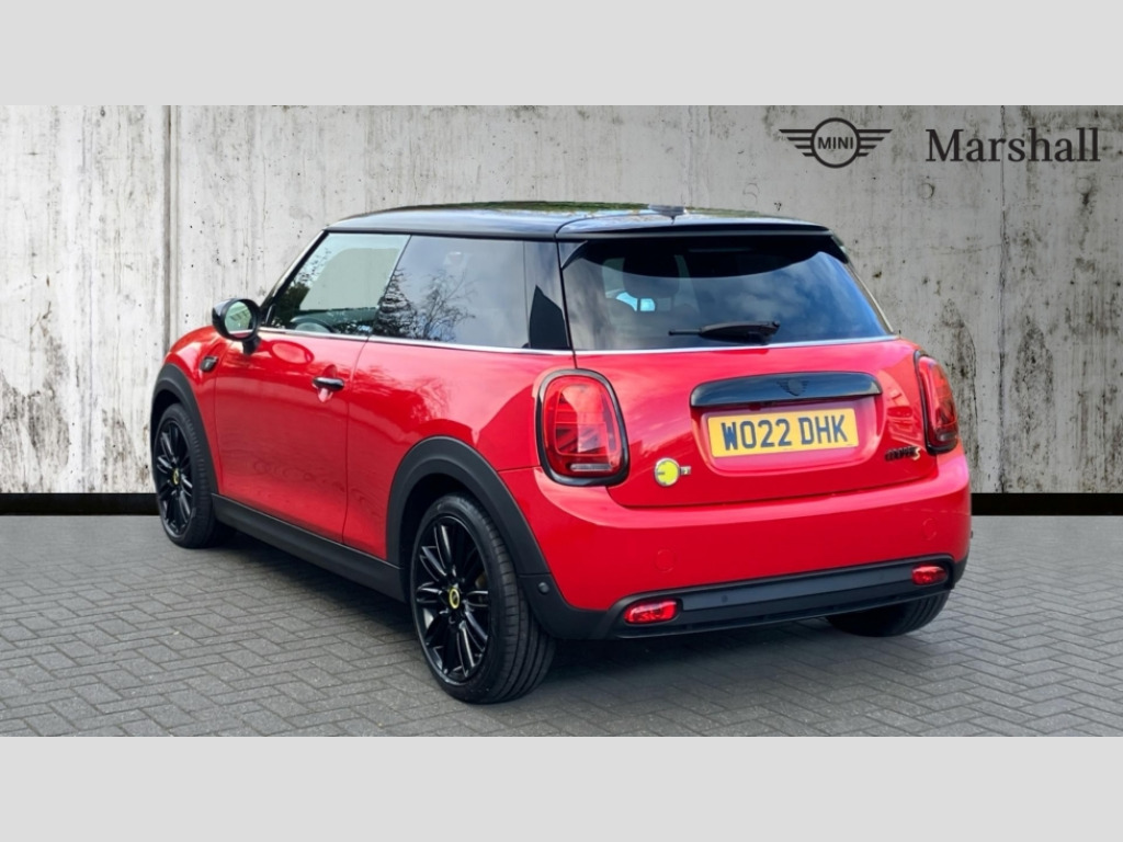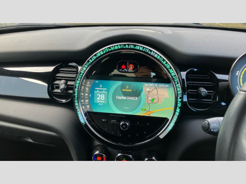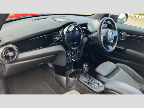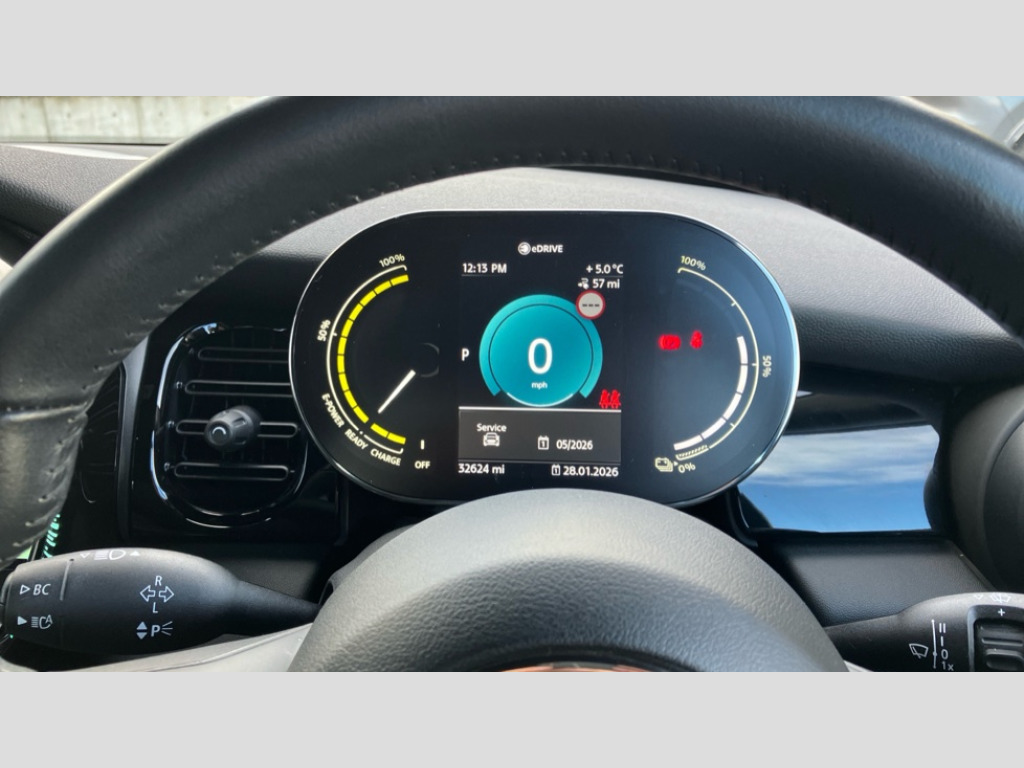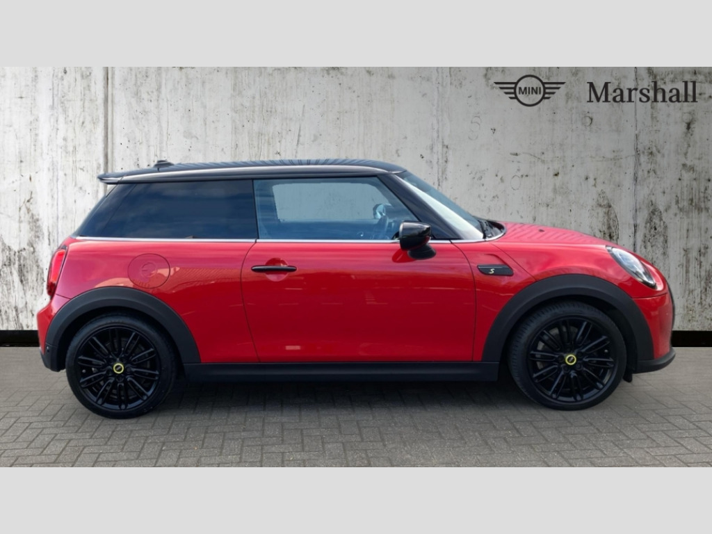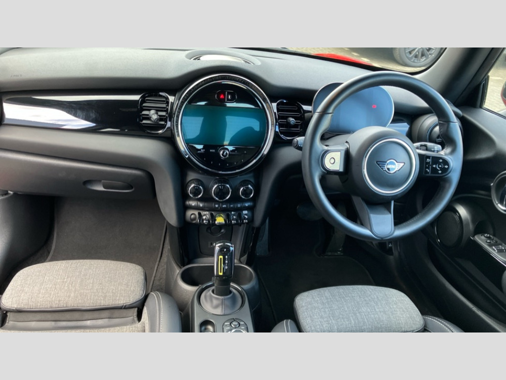 MINI Hatchback 135kW Cooper S Level 2 33kWh 3dr Auto Brake energy recuperation toggle switch with two settings, Compatible mobile phone bluetooth with audio streaming, Digital instrument cluster, Electro-mechanical speed dependant steering assistance, Flexible car sharing preparation, MINI Driving Modes - centre toggle switch to control driving setting (sport, mid and green), On board computer, Rear park distance control, Rear view camera, Service interval indicator, Automatic transmission, Electric front motor installed drives front wheels, Performance Control, 4 speakers in front door trims and underneath front seats, FM tuner and DAB digital radio, Auto dimming and folding door mirrors, Auto headlights, Automatic headlight activation switch, Bonnet scoop, Charging flap embossed with e logo in body colour on drivers side rear panel includes LED light indicating charging status, Dynamic brake lights, Electric front+rear windows, Heated rear window, Heated windscreen washer jets, LED headlight with closed ring and daytime driving lights, Metal door sill strips with Cooper S in yellow, MINI logo projection, Model logo Cooper S in yellow on right of tailgate, Radiator grille including E badge, Rain sensor window wipers, Rear fog lights, Rear LED lights with union jack design, Rear window wiper, Side scuttle panel with integrated indicator with E badge, Third brake light, White indicator lenses, 12V Accessory socket in centre console, 2 seat bench in second row, 2 zone automatic air conditioning, 3 spoke sports multifunctional leather steering wheel with integrated controls for cruise control, brake function + audio/communication, 3 stage heated front seats, 4 lashing eyes in luggage compartment, 60/40 split folding rear seat, AC and DC charging, Ambient lighting, Anthracite headlining, Black velour floor mats, Chrome interior highlights, Cloth/leatherette upholstery with sport seats, Cupholders, Front and rear head restraints, Front and rear isofix with front passenger airbag deactivation, Front centre armrest, Glove compartment, Heat pump, Height adjustable passenger seat, Height and length steering column adjustment, Interior lighting in front of headliner, LED waterfall lighting in orange roof control panel, Luggage compartment lighting, Manual adjustment for thigh rests, Mechanical seat adjustment, driver seat height adjust, forward/back and front seats backrest, Single front passenger seat, Storage compartments in doors, Storage pocket on back of front seats, Sunvisors with vanity mirrors, Two charging cables - 3 pin plug adapter (mode 2) and AC public charging (mode 3), Driving assistant pack - Mini Electric Hatchback, Interior light pack - Mini Electric Hatchback, Navigation pack - Mini Electric Hatchback, Storage compartment pack - Mini Hatchback electric, 3 point seatbelts on all four seats, 6 Airbags - front, side, head and seat belt tensioners, Acoustic pedestrian protection, Anti-lock braking system (ABS), DSC - Dynamic Stability Control, Electronic parking brake, Front and rear disc brakes, Two tone horn, Tyre pressure monitoring system, Warning triangle and first aid kit, Alarm system with tilt sensor, monitoring doors, bonnet interior and tailgate, Comfort access system, Electronic vehicle immobiliser, Start/stop toggle in yellow, Piano black interior trim, Surface chequered black interior trim, Tool kit, Tyre repair kit