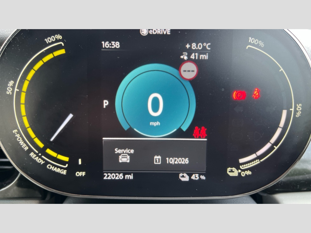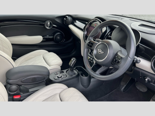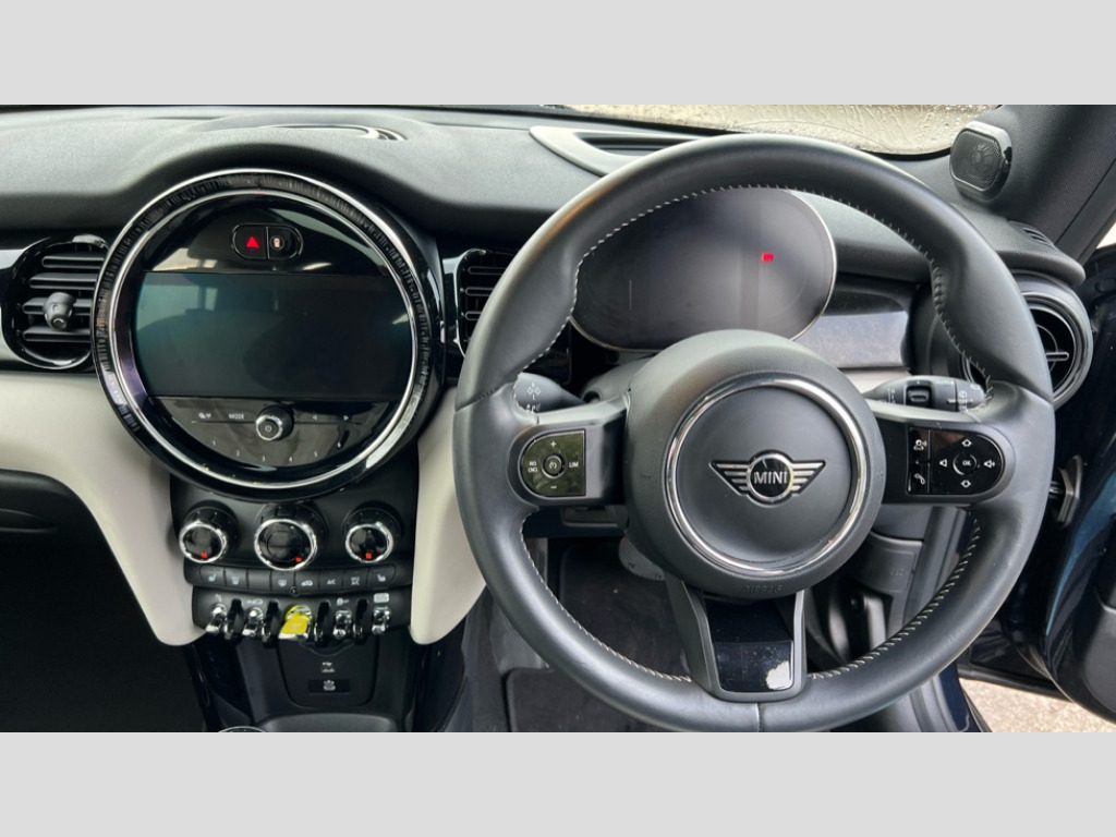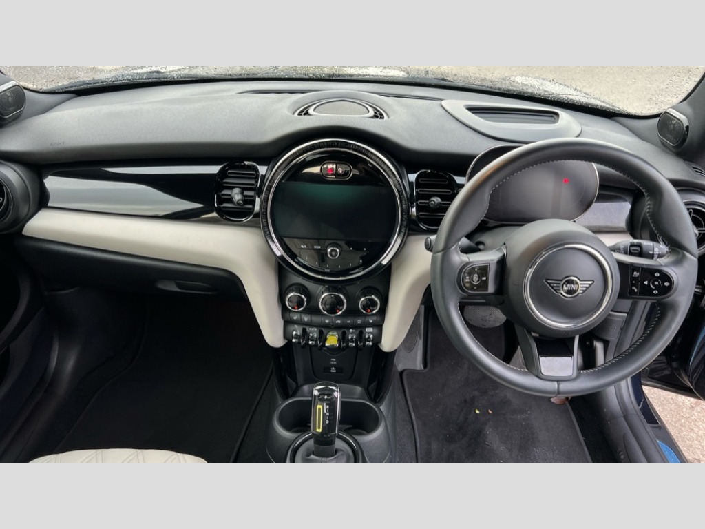 MINI Hatchback 135kW Cooper S Level 3 33kWh 3dr Auto Brake energy recuperation toggle switch with two settings, Compatible mobile phone bluetooth with audio streaming, Cruise control, Digital instrument cluster, Electro-mechanical speed dependant steering assistance, Flexible car sharing preparation, Front park distance control, MINI Driving Modes - centre toggle switch to control driving setting (sport, mid and green), On board computer, Park assist system, Rear park distance control, Rear view camera, Service interval indicator, Automatic transmission, Electric front motor installed drives front wheels, Performance Control, 4 speakers in front door trims and underneath front seats, FM tuner and DAB digital radio, Harman Kardon sound system, Adaptive LED Headlights with matrix function, Auto dimming and folding door mirrors, Auto headlights, Automatic headlight activation switch, Bonnet scoop, Charging flap embossed with e logo in body colour on drivers side rear panel includes LED light indicating charging status, Dynamic brake lights, Electric front+rear windows, Electric panoramic glass sunroof, Heated rear window, Heated windscreen washer jets, LED daytime running lights, Metal door sill strips with Cooper S in yellow, MINI logo projection, Model logo Cooper S in yellow on right of tailgate, Radiator grille including E badge, Rain sensor window wipers, Rear fog lights, Rear LED lights with union jack design, Rear window wiper, Side scuttle panel with integrated indicator with E badge, Third brake light, White indicator lenses, 12V Accessory socket in centre console, 2 seat bench in second row, 2 zone automatic air conditioning, 3 spoke sports multifunctional leather steering wheel with integrated controls for cruise control, brake function + audio/communication, 3 stage heated front seats, 4 lashing eyes in luggage compartment, 60/40 split folding rear seat, AC and DC charging, Ambient lighting, Anthracite headlining, Black velour floor mats, Chrome interior highlights, Cupholders, Front and rear head restraints, Front and rear isofix with front passenger airbag deactivation, Front centre armrest, Glove compartment, Heat pump, Height adjustable passenger seat, Height and length steering column adjustment, Interior lighting in front of headliner, LED waterfall lighting in orange roof control panel, Luggage compartment lighting, Manual adjustment for thigh rests, Mechanical seat adjustment, driver seat height adjust, forward/back and front seats backrest, Single front passenger seat, Storage compartments in doors, Storage pocket on back of front seats, Sunvisors with vanity mirrors, Two charging cables - 3 pin plug adapter (mode 2) and AC public charging (mode 3), Walka Nappa steering wheel, Interior light pack - Mini Electric Hatchback, Navigation plus pack with Driving Assistant - Mini Electric Hatchback, Storage compartment pack - Mini Hatchback electric, 3 point seatbelts on all four seats, 6 Airbags - front, side, head and seat belt tensioners, Acoustic pedestrian protection, Anti-lock braking system (ABS), DSC - Dynamic Stability Control, Electronic parking brake, Front and rear disc brakes, Two tone horn, Tyre pressure monitoring system, Warning triangle and first aid kit, Alarm system with tilt sensor, monitoring doors, bonnet interior and tailgate, Comfort access system, Electronic vehicle immobiliser, Start/stop toggle in yellow, Piano black interior trim, Surface chequered black interior trim, Tool kit, Tyre repair kit
