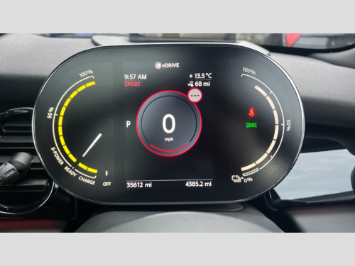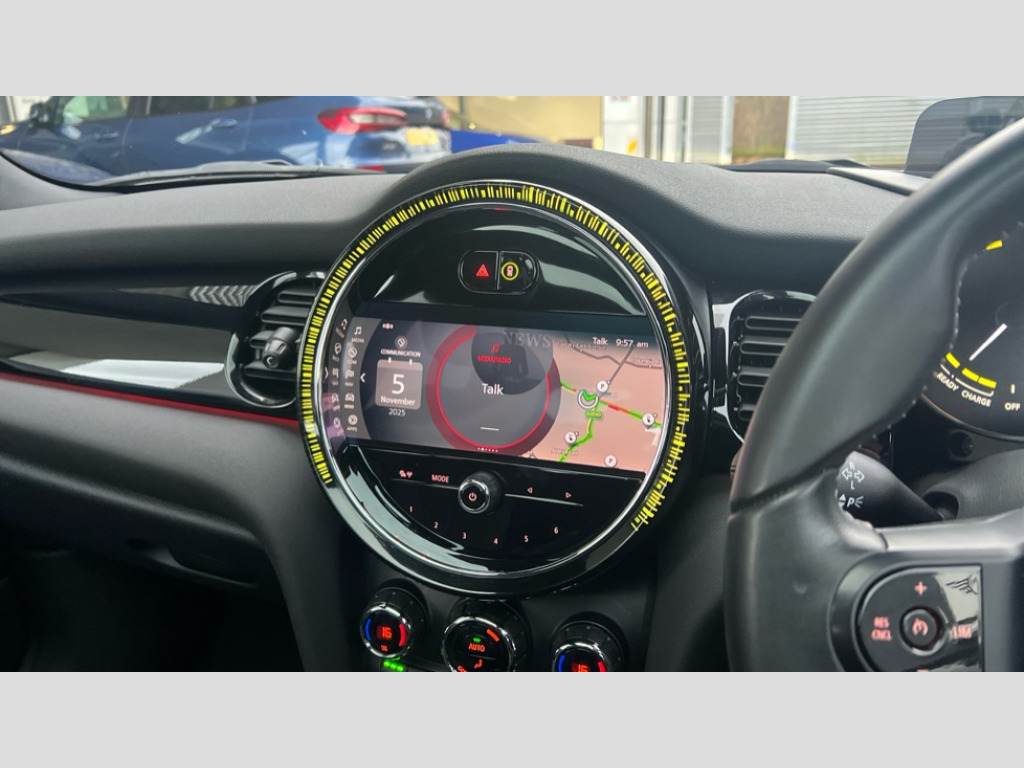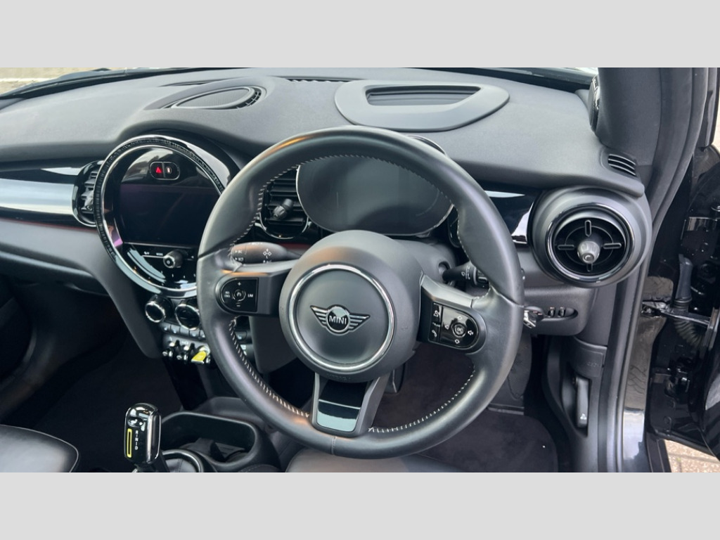 MINI Hatchback 135kW Cooper S Level 3 33kWh 3dr Auto Brake energy recuperation toggle switch with two settings, Compatible mobile phone bluetooth with audio streaming, Cruise control, Digital instrument cluster, Electro-mechanical speed dependant steering assistance, Flexible car sharing preparation, Front park distance control, MINI Driving Modes - centre toggle switch to control driving setting (sport, mid and green), On board computer, Park assist system, Rear park distance control, Rear view camera, Service interval indicator, Automatic transmission, Electric front motor installed drives front wheels, Performance Control, 4 speakers in front door trims and underneath front seats, FM tuner and DAB digital radio, Harman Kardon sound system, Adaptive LED Headlights with matrix function, Auto dimming and folding door mirrors, Auto headlights, Automatic headlight activation switch, Bonnet scoop, Charging flap embossed with e logo in body colour on drivers side rear panel includes LED light indicating charging status, Dynamic brake lights, Electric front+rear windows, Electric panoramic glass sunroof, Heated rear window, Heated windscreen washer jets, LED daytime running lights, Metal door sill strips with Cooper S in yellow, MINI logo projection, Model logo Cooper S in yellow on right of tailgate, Radiator grille including E badge, Rain sensor window wipers, Rear fog lights, Rear LED lights with union jack design, Rear window wiper, Side scuttle panel with integrated indicator with E badge, Third brake light, White indicator lenses, 12V Accessory socket in centre console, 2 seat bench in second row, 2 zone automatic air conditioning, 3 spoke sports multifunctional leather steering wheel with integrated controls for cruise control, brake function + audio/communication, 3 stage heated front seats, 4 lashing eyes in luggage compartment, 60/40 split folding rear seat, AC and DC charging, Ambient lighting, Anthracite headlining, Black velour floor mats, Chrome interior highlights, Cupholders, Front and rear head restraints, Front and rear isofix with front passenger airbag deactivation, Front centre armrest, Glove compartment, Heat pump, Height adjustable passenger seat, Height and length steering column adjustment, Interior lighting in front of headliner, LED waterfall lighting in orange roof control panel, Luggage compartment lighting, Manual adjustment for thigh rests, Mechanical seat adjustment, driver seat height adjust, forward/back and front seats backrest, Single front passenger seat, Storage compartments in doors, Storage pocket on back of front seats, Sunvisors with vanity mirrors, Two charging cables - 3 pin plug adapter (mode 2) and AC public charging (mode 3), Walka Nappa steering wheel, Interior light pack - Mini Electric Hatchback, Navigation plus pack with Driving Assistant - Mini Electric Hatchback, Storage compartment pack - Mini Hatchback electric, 3 point seatbelts on all four seats, 6 Airbags - front, side, head and seat belt tensioners, Acoustic pedestrian protection, Anti-lock braking system (ABS), DSC - Dynamic Stability Control, Electronic parking brake, Front and rear disc brakes, Two tone horn, Tyre pressure monitoring system, Warning triangle and first aid kit, Alarm system with tilt sensor, monitoring doors, bonnet interior and tailgate, Comfort access system, Electronic vehicle immobiliser, Start/stop toggle in yellow, Piano black interior trim, Surface chequered black interior trim, Tool kit, Tyre repair kit