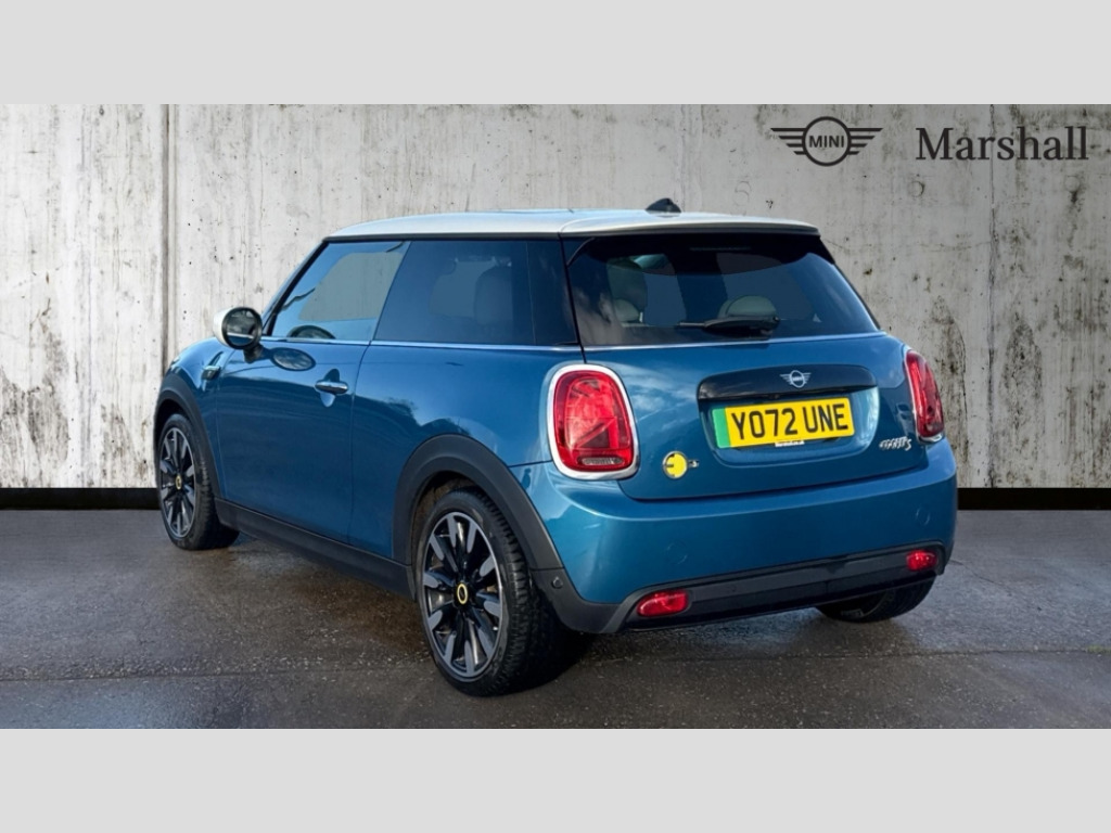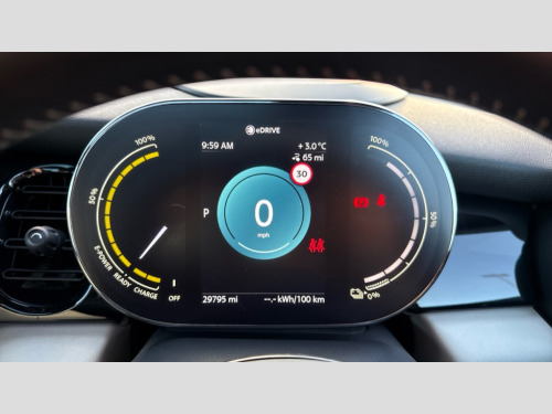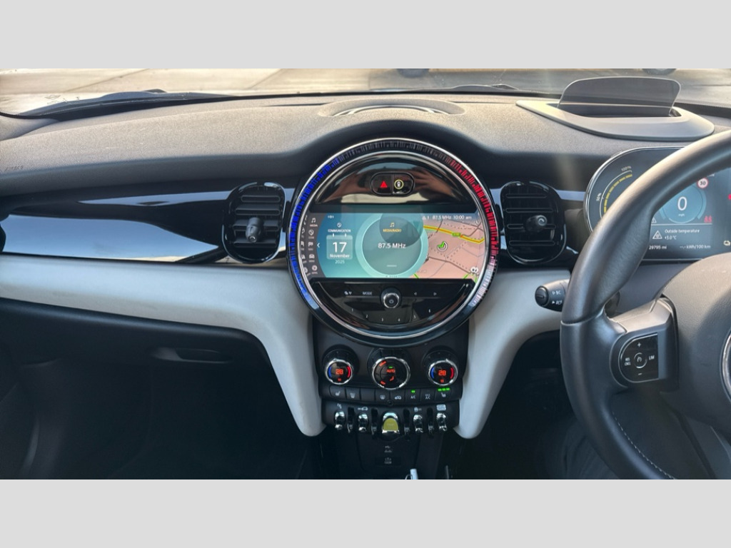 MINI Hatchback 135kW Cooper S Level 3 33kWh 3dr Auto Brake energy recuperation toggle switch with two settings, Compatible mobile phone bluetooth with audio streaming, Cruise control, Digital instrument cluster, Electro-mechanical speed dependant steering assistance, Flexible car sharing preparation, Front park distance control, MINI Driving Modes - centre toggle switch to control driving setting (sport, mid and green), On board computer, Park assist system, Rear park distance control, Rear view camera, Service interval indicator, Automatic transmission, Electric front motor installed drives front wheels, Performance Control, 4 speakers in front door trims and underneath front seats, FM tuner and DAB digital radio, Harman Kardon sound system, Adaptive LED Headlights with matrix function, Auto dimming and folding door mirrors, Auto headlights, Automatic headlight activation switch, Bonnet scoop, Charging flap embossed with e logo in body colour on drivers side rear panel includes LED light indicating charging status, Dynamic brake lights, Electric front+rear windows, Electric panoramic glass sunroof, Heated rear window, Heated windscreen washer jets, LED daytime running lights, Metal door sill strips with Cooper S in yellow, MINI logo projection, Model logo Cooper S in yellow on right of tailgate, Radiator grille including E badge, Rain sensor window wipers, Rear fog lights, Rear LED lights with union jack design, Rear window wiper, Side scuttle panel with integrated indicator with E badge, Third brake light, White indicator lenses, 12V Accessory socket in centre console, 2 seat bench in second row, 2 zone automatic air conditioning, 3 spoke sports multifunctional leather steering wheel with integrated controls for cruise control, brake function + audio/communication, 3 stage heated front seats, 4 lashing eyes in luggage compartment, 60/40 split folding rear seat, AC and DC charging, Ambient lighting, Anthracite headlining, Black velour floor mats, Chrome interior highlights, Cupholders, Front and rear head restraints, Front and rear isofix with front passenger airbag deactivation, Front centre armrest, Glove compartment, Heat pump, Height adjustable passenger seat, Height and length steering column adjustment, Interior lighting in front of headliner, LED waterfall lighting in orange roof control panel, Luggage compartment lighting, Manual adjustment for thigh rests, Mechanical seat adjustment, driver seat height adjust, forward/back and front seats backrest, Single front passenger seat, Storage compartments in doors, Storage pocket on back of front seats, Sunvisors with vanity mirrors, Two charging cables - 3 pin plug adapter (mode 2) and AC public charging (mode 3), Walka Nappa steering wheel, Interior light pack - Mini Electric Hatchback, Navigation plus pack with Driving Assistant - Mini Electric Hatchback, Storage compartment pack - Mini Hatchback electric, 3 point seatbelts on all four seats, 6 Airbags - front, side, head and seat belt tensioners, Acoustic pedestrian protection, Anti-lock braking system (ABS), DSC - Dynamic Stability Control, Electronic parking brake, Front and rear disc brakes, Two tone horn, Tyre pressure monitoring system, Warning triangle and first aid kit, Alarm system with tilt sensor, monitoring doors, bonnet interior and tailgate, Comfort access system, Electronic vehicle immobiliser, Start/stop toggle in yellow, Piano black interior trim, Surface chequered black interior trim, Tool kit, Tyre repair kit