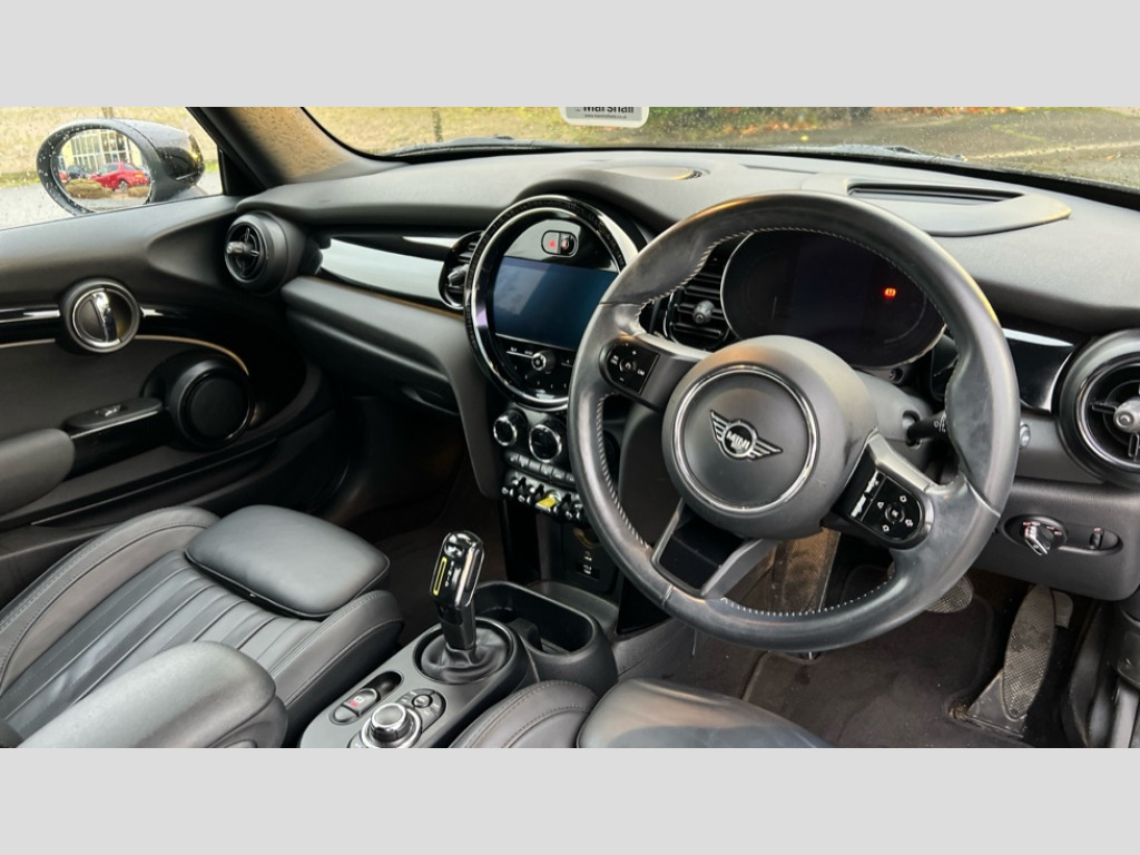 MINI Hatchback 135kW Cooper S Level 3 33kWh 3dr Auto Brake energy recuperation toggle switch with two settings, Compatible mobile phone bluetooth with audio streaming, Digital instrument cluster, Electro-mechanical speed dependant steering assistance, Flexible car sharing preparation, Front park distance control, MINI Driving Modes - centre toggle switch to control driving setting (sport, mid and green), On board computer, Park assist system, Rear park distance control, Rear view camera, Service interval indicator, Automatic transmission, Electric front motor installed drives front wheels, Performance Control, 4 speakers in front door trims and underneath front seats, FM tuner and DAB digital radio, Harman Kardon sound system, Adaptive headlights with matrix function, Auto dimming and folding door mirrors, Automatic headlight activation switch, Bonnet scoop, Charging flap embossed with e logo in body colour on drivers side rear panel includes LED light indicating charging status, Dynamic brake lights, Electric front+rear windows, Electric panoramic glass sunroof, Heated rear window, Heated windscreen washer jets, Metal door sill strips with Cooper S in yellow, MINI logo projection, Model logo Cooper S in yellow on right of tailgate, Radiator grille including E badge, Rain sensor window wipers, Rear fog lights, Rear LED lights with union jack design, Rear window wiper, Side scuttle panel with integrated indicator with E badge, White indicator lenses, 12V Accessory socket in centre console, 2 zone automatic air conditioning, 3 spoke sports multifunctional leather steering wheel with integrated controls for cruise control, brake function + audio/communication, 3 stage heated front seats, 4 lashing eyes in luggage compartment, 60/40 split folding rear seat, AC and DC charging, Ambient lighting, Anthracite headlining, Black velour floor mats, Chrome interior highlights, Cupholders, Front and rear head restraints, Front and rear isofix with front passenger airbag deactivation, Front centre armrest, Glove compartment, Heat pump, Height adjustable passenger seat, Height and length steering column adjustment, Interior lighting in front of headliner, LED waterfall lighting in orange roof control panel, Luggage compartment lighting, Manual adjustment for thigh rests, Mechanical seat adjustment, driver seat height adjust, forward/back and front seats backrest, Storage compartments in doors, Storage pocket on back of front seats, Sunvisors with vanity mirrors, Two charging cables - 3 pin plug adapter (mode 2) and AC public charging (mode 3), Walka Nappa steering wheel, Driving assistant pack - Mini Electric Hatchback, Interior light pack - Mini Hatchback Cooper S Electric 2/3, Navigation plus pack - Mini Electric Hatchback, Storage compartment pack - Mini Hatchback electric, 3 point seatbelts on all four seats, 6 Airbags - front, side, head and seat belt tensioners, Acoustic pedestrian protection, Anti-lock braking system (ABS), DSC - Dynamic Stability Control, Electronic parking brake, Front and rear disc brakes, Two tone horn, Tyre pressure monitoring system, Warning triangle and first aid kit, Alarm system with tilt sensor, monitoring doors, bonnet interior and tailgate, Comfort access system, Electronic vehicle immobiliser, Piano black interior trim, Surface chequered black interior trim, Tool kit, Tyre repair kit