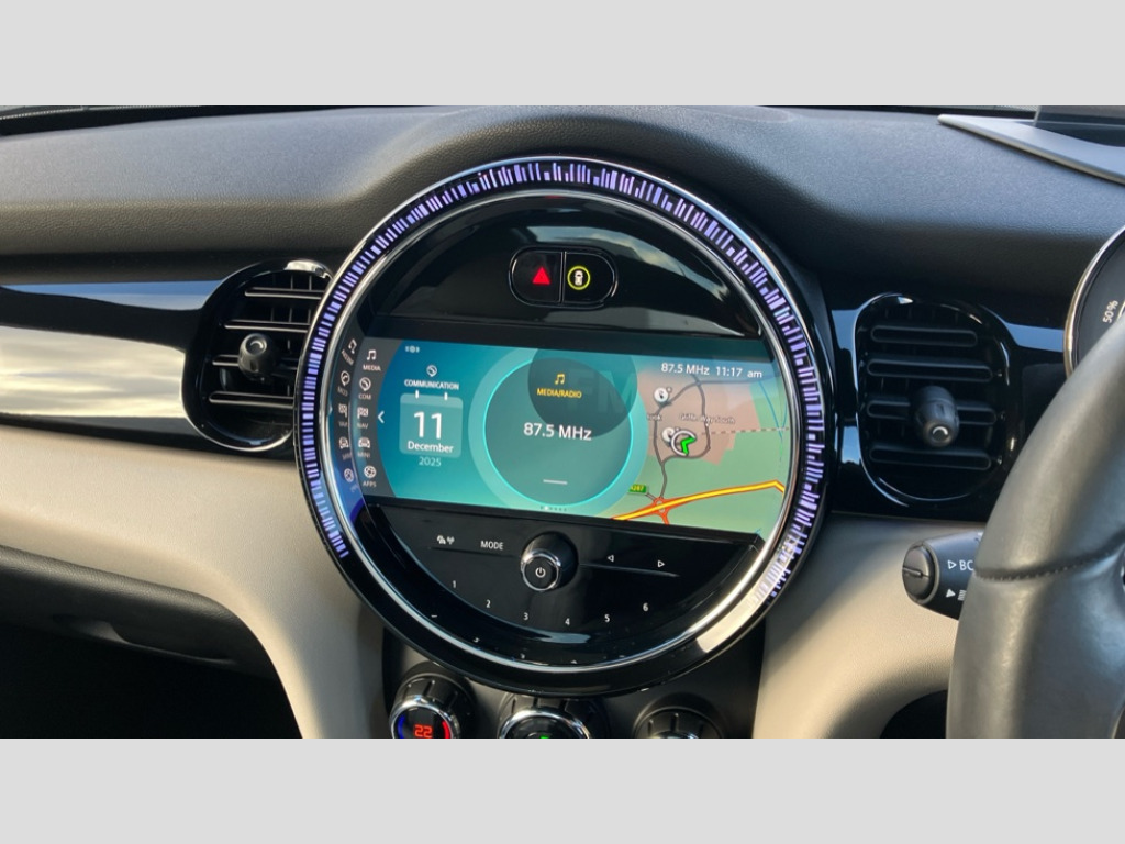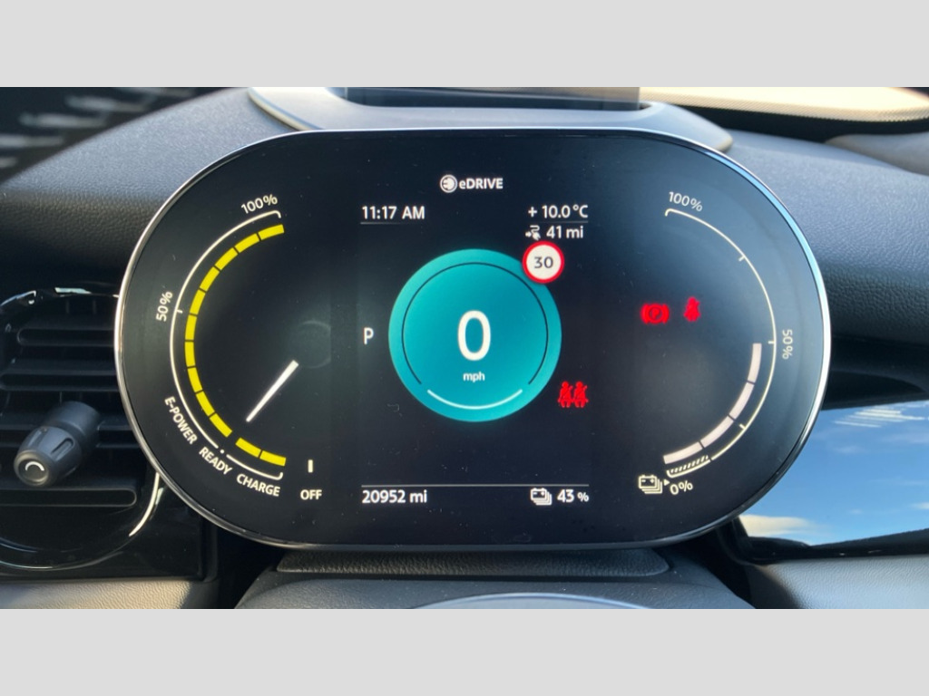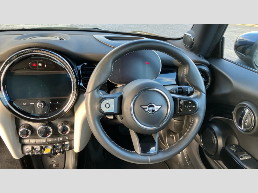 MINI Hatchback 135kW Cooper S Level 3 33kWh 3dr Auto Brake energy recuperation toggle switch with two settings, Compatible mobile phone bluetooth with audio streaming, Cruise control, Digital instrument cluster, Electro-mechanical speed dependant steering assistance, Flexible car sharing preparation, Front park distance control, MINI Driving Modes - centre toggle switch to control driving setting (sport, mid and green), On board computer, Park assist system, Rear park distance control, Rear view camera, Service interval indicator, Automatic transmission, Electric front motor installed drives front wheels, Performance Control, 4 speakers in front door trims and underneath front seats, FM tuner and DAB digital radio, Harman Kardon sound system, Adaptive LED Headlights with matrix function, Auto dimming and folding door mirrors, Auto headlights, Automatic headlight activation switch, Bonnet scoop, Charging flap embossed with e logo in body colour on drivers side rear panel includes LED light indicating charging status, Dynamic brake lights, Electric front+rear windows, Electric panoramic glass sunroof, Heated rear window, Heated windscreen washer jets, LED daytime running lights, Metal door sill strips with Cooper S in yellow, MINI logo projection, Model logo Cooper S in yellow on right of tailgate, Radiator grille including E badge, Rain sensor window wipers, Rear fog lights, Rear LED lights with union jack design, Rear window wiper, Side scuttle panel with integrated indicator with E badge, Third brake light, White indicator lenses, 12V Accessory socket in centre console, 2 seat bench in second row, 2 zone automatic air conditioning, 3 spoke sports multifunctional leather steering wheel with integrated controls for cruise control, brake function + audio/communication, 3 stage heated front seats, 4 lashing eyes in luggage compartment, 60/40 split folding rear seat, AC and DC charging, Ambient lighting, Anthracite headlining, Black velour floor mats, Chrome interior highlights, Cupholders, Front and rear head restraints, Front and rear isofix with front passenger airbag deactivation, Front centre armrest, Glove compartment, Heat pump, Height adjustable passenger seat, Height and length steering column adjustment, Interior lighting in front of headliner, LED waterfall lighting in orange roof control panel, Luggage compartment lighting, Manual adjustment for thigh rests, Mechanical seat adjustment, driver seat height adjust, forward/back and front seats backrest, Single front passenger seat, Storage compartments in doors, Storage pocket on back of front seats, Sunvisors with vanity mirrors, Two charging cables - 3 pin plug adapter (mode 2) and AC public charging (mode 3), Walka Nappa steering wheel, Driving assistant pack - Mini Electric Hatchback, Interior light pack - Mini Electric Hatchback, Navigation plus pack - Mini Electric Hatchback, Storage compartment pack - Mini Hatchback electric, 3 point seatbelts on all four seats, 6 Airbags - front, side, head and seat belt tensioners, Acoustic pedestrian protection, Anti-lock braking system (ABS), DSC - Dynamic Stability Control, Electronic parking brake, Front and rear disc brakes, Two tone horn, Tyre pressure monitoring system, Warning triangle and first aid kit, Alarm system with tilt sensor, monitoring doors, bonnet interior and tailgate, Comfort access system, Electronic vehicle immobiliser, Start/stop toggle in yellow, Piano black interior trim, Surface chequered black interior trim, Tool kit, Tyre repair kit