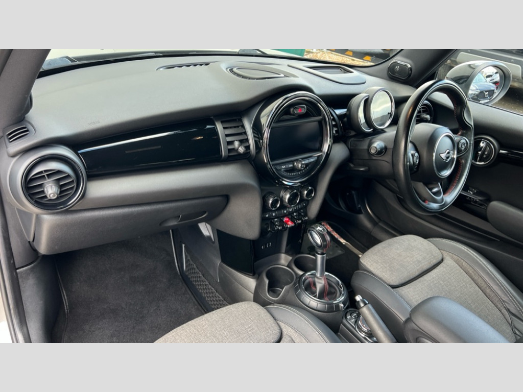 MINI Hatchback 2.0 Cooper S 3dr Auto Acoustic seat-belt warning, Brake fluid level warning light, Brake pad wear indicator warning light, DTC - Dynamic traction control, Exterior temperature gauge, Intelligent emergency call, MINI TeleServices, Oil level indicator, On board computer, Push button starter, Service interval indicator, Servotronic PAS, Electronic differential lock, Performance Control, Auxiliary input socket, DAB digital radio module, 2 speed wipers+intermittent wipe, Anti dazzle mirror, Anti trapping/one touch open close front windows, Body colour scoop integrated into engine- compartment lid, Body coloured bumpers, Chrome bezels around rear lights and headlights, Chrome door handles, Chrome plated fuel cap, Chrome plated trim on bottom edge of window, Chrome strip on lower grille, Electric front windows, Electrically adjustable door mirrors, Flared wheel arches, Follow me home headlights, Green tinted heat insulating glass, Heated door mirrors/heated windscreen washers, Heated rear window with auto timer, High gloss black tailgate, Honeycomb radiator grille, Metal look door sill finishers, Rear wiper, Twin chromed exhaust pipes, White indicator lights, 2 rear head restraints, 4 boot load lashing points, 4 way manually adjustable passenger seat with height, reach, tilt, backrest and headrest, 6-way manually adjustable driver's seat, Active carbon filter, Air recirculation system, Auxiliary socket in centre console storage compartment, Centre console storage, Driver's seat height adjuster, Driver/passenger sunvisors, Easy entry seats, Front and rear cupholders, Front head restraints, Front interior light, Front passenger grab handle, Front seat backrest storage nets, Front sports seats, Gear/selector and handbrake in artificial leather, Internal chrome door handles, Isofix child seat preparation, Luggage compartment lighting, Multifunction steering wheel, Reach + rake adjustable steering column, Rear grab handles, Rear storage trays, Split folding rear seats, Storage compartments in doors, Toolkit in luggage compartment, Vanity mirrors, 3 point seatbelts, ABS/EBD, ASC+T, Cornering brake control (CBC), Crash Sensor - activates hazard/interior lighting + unlocks doors, Driver and passenger airbags, Driver/front passenger side airbags, DSC - Dynamic Stability Control, Fuel cut off safety device, Head airbags, Hill start assist, Passenger airbag deactivation system, Seatbelt pretensioners, Tyre pressure warning, Ventilated front disc brakes, Drive away door locking, Locking wheel bolts, Remote central locking/doors+fuel cap+tailgate, Second remote key, Thatcham category 1 alarm + immobiliser