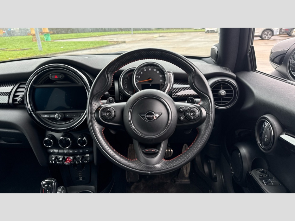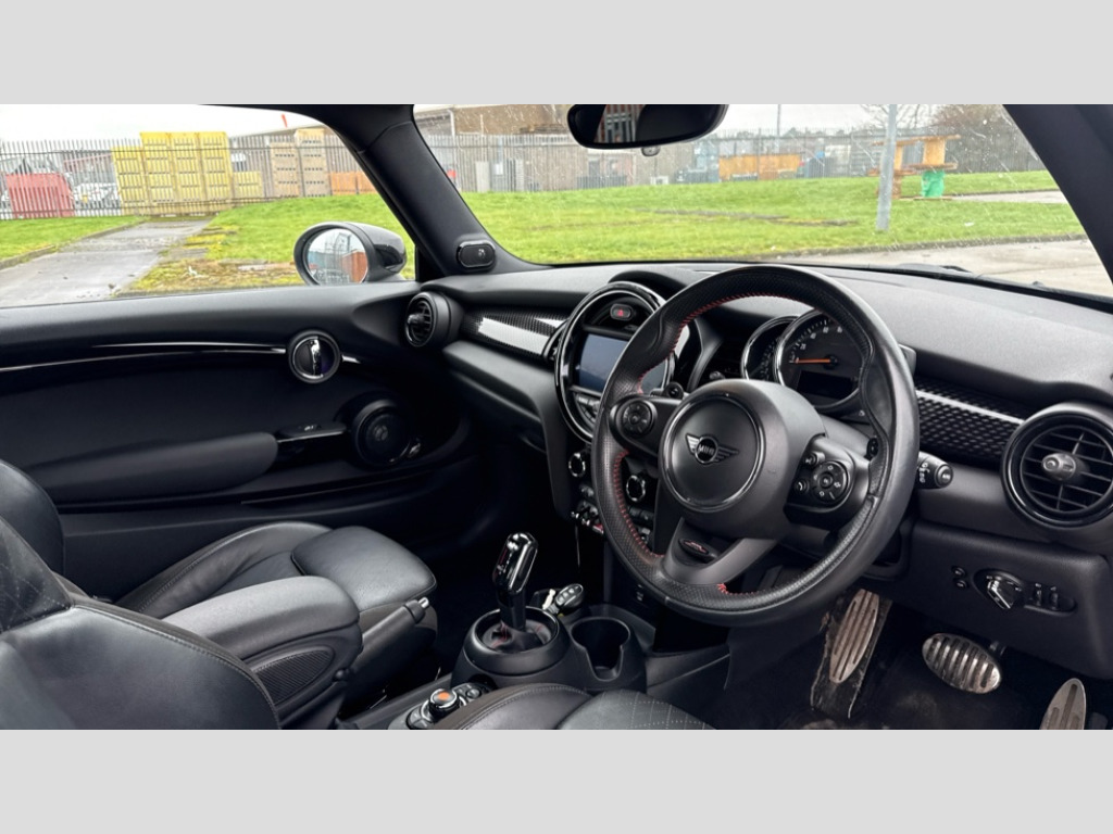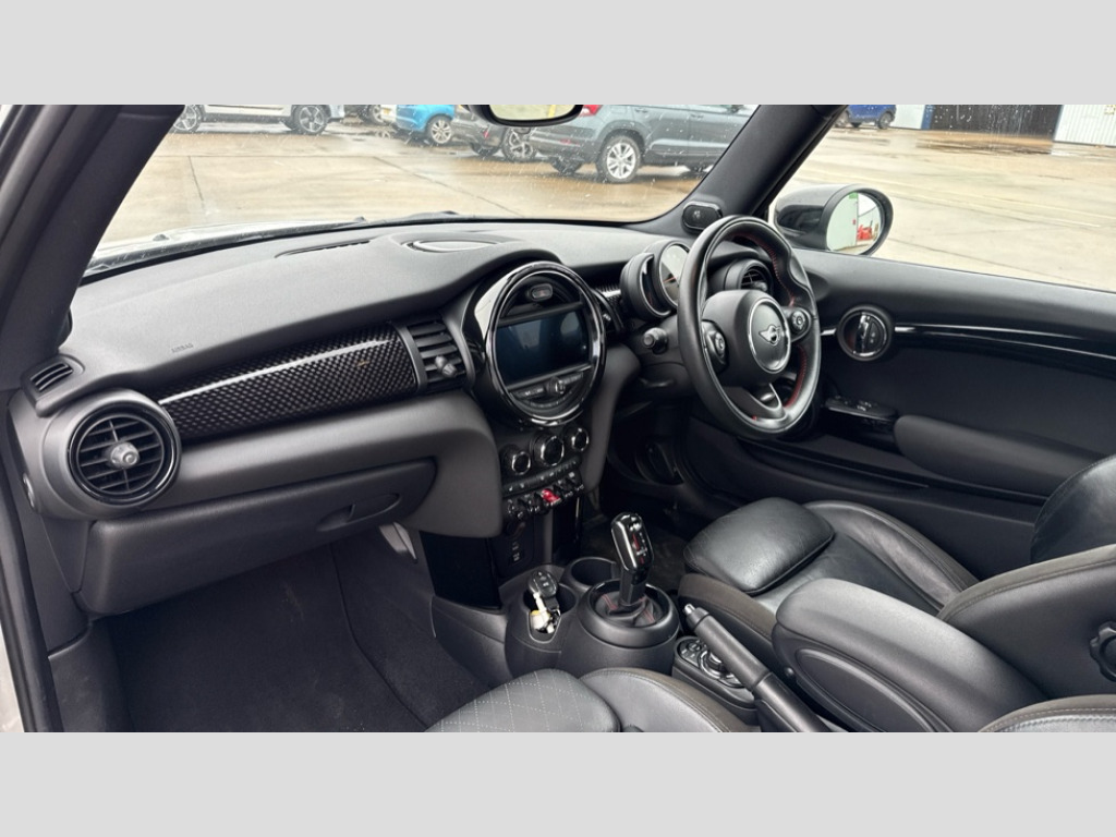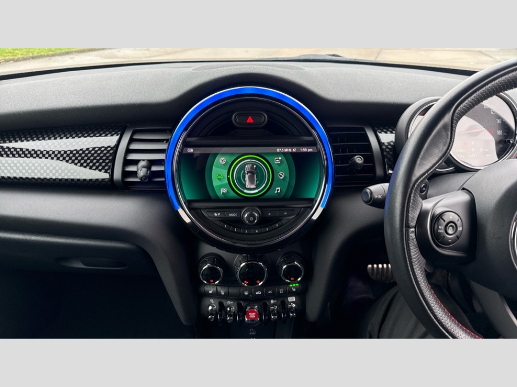 MINI Hatchback 2.0 Cooper S Sport II 3dr Auto Automatic start/stop function with brake energy recuperation, Compatible mobile phone bluetooth with audio streaming, Electro-mechanical speed dependant steering assistance, Instrument cluster, MINI Driving Modes - centre toggle switch to control driving setting (sport, mid and green), Mini E-call, MINI TeleServices, On board computer, Service interval indicator, Double Vanos system, Fully variable valve control, Gear change indicator display, High precision injection, Performance Control, 6.5" touchscreen with LED ring, FM tuner and DAB digital radio, Automatic headlight activation switch, Bonnet scoop, Chrome border honeycomb structure radiator grille with S badge, Chrome plated fuel cap, Dynamic brake lights, Electric front+rear windows, Heated rear window, Heated windscreen washer jets, John Cooper Works - aerodynamic kit (front and rear apron, spoiler), front and rear sport bumpers and part-painted side sills with door sill finishers, John Cooper Works rear spoiler, LED headlight with closed ring and daytime driving lights, Metal door sill strips with Cooper S imprint, Model logo Cooper S on right of tailgate, Rain sensor window wipers, Rear fog lights, Rear LED lights with union jack design, Rear window wiper, Side scuttle panel with integrated indicator, Sun/heat protection glass, Two central exhaust tailpipes with chrome finisher, White indicator lenses, 12V Accessory socket in centre console, 4 lashing eyes in luggage compartment, 60/40 split folding rear seat, Anthracite headlining, Carbon Black colour line, knee roll and door armrests, Chrome interior highlights, Cupholders, Front and rear head restraints, Front and rear isofix with front passenger airbag deactivation, Glove compartment, Height and length steering column adjustment, Interior lighting with 12 basic colours selectable via toggle switch in roof, John Cooper Works leather steering wheel with contrasting stitching in Chilli Red with John Cooper Works logo, John Cooper Works Logo in seat, Leather gearshift lever and handbrake gaiters, LED reading lights, vanity mirror lights, front foot well light and spotlight on front seats, Manual air conditioning, Mechanical seat adjustment, driver seat height adjust, forward/back and front seats backrest, Mini logo projection on floor from drivers exterior mirror, Multifunction steering wheel, Storage compartments in doors, Storage pocket on back of front seats, Sunvisors with vanity mirrors, Navigation pack - Mini Hatchback, 3 point seatbelts on all five seats, 6 Airbags - front, side, head and seat belt tensioners, Anti-lock braking system (ABS), DSC - Dynamic Stability Control, Front and rear disc brakes, Hill start assist, Two tone horn, Tyre pressure monitoring system, Alarm system with tilt sensor, monitoring doors, bonnet interior and tailgate, Electronic vehicle immobiliser, Start/stop toggle with keyless go, Tool kit