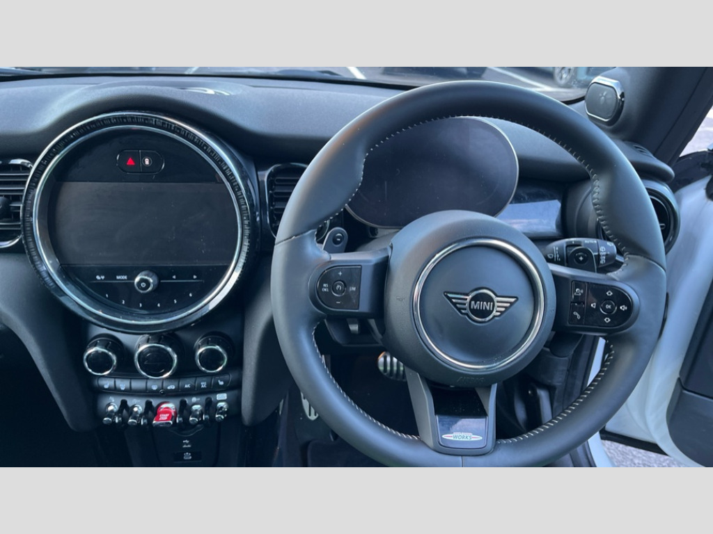MINI Hatchback 2.0 Cooper S Sport Premium 3dr Auto Apple CarPlay, Automatic start/stop function with brake energy recuperation, Compatible mobile phone bluetooth with audio streaming, Digital dashboard display, Electro-mechanical speed dependant steering assistance, Flexible car sharing preparation, Instrument cluster, Mini E-call, MINI TeleServices, On board computer, Service interval indicator, Double Vanos system, Fully variable valve control, High precision injection, Intelligent adaptive suspension, Performance Control, Steptronic sport transmission with double clutch and steering wheel paddles, 4 speakers in front door trims and underneath front seats, 8.8" touchscreen with LED ring, FM tuner and DAB digital radio, 3rd brake light, Automatic headlight activation switch, Bonnet scoop, Dynamic brake lights, Electric front windows, Heated rear window, Heated windscreen washer jets, JCW Aerodynamic kit - Front and rear bumpers with sporty JCW styling and part-painted side sills with MINI John Cooper Works door sill finishers, John Cooper Works rear spoiler, LED headlight with closed ring and daytime driving lights, Metal door sill strips with Cooper S, Model logo Cooper S on right of tailgate, Rain sensor window wipers, Rear fog lights, Rear LED lights with union jack design, Rear window wiper, Side scuttle panel with integrated indicator, Sun/heat protection glass, White indicator lenses, 12V Accessory socket in centre console, 2 seat bench in 2nd row, 4 lashing eyes in luggage compartment, 60/40 split folding rear seat, Anthracite headliner including grab handles and clothes hooks, Carbon black colour line - Knee roll and door armrest, Chrome interior highlights, Cupholders, Front and rear isofix with front passenger airbag deactivation, Front floor mats in velour, Glove compartment, Height and length steering column adjustment, Integrated headrests, adjustable thigh support for seats, Interior lighting with 12 different colours across the dashboard, underneath door bezel with illuminated laser-engraved design on central display, Leatherette gearshift lever and handbrake gaiters, LED reading lights, vanity mirror lights, front foot well light and spotlight on front seats, Mechanical seat adjustment - forward/back & backrest for front seats and driver seat height adjust, Multifunction steering wheel, Passenger seat height adjuster, Single front passenger seat, Storage compartments in doors, Storage pocket on back of front seats, Sunvisors with vanity mirrors, Driving assistant pack - Mini Hatchback, Piano black exterior pack - Mini Hatchback Cooper S, Premium pack - Hatchback Cooper S, 3 point seatbelts on all four seats, 6 Airbags - front, side, head and seat belt tensioners, Anti-lock braking system (ABS), DSC - Dynamic Stability Control, Front and rear disc brakes, Two tone horn, Tyre pressure monitoring system, Alarm system with tilt sensor, monitoring doors, bonnet interior and tailgate, Electronic vehicle immobiliser, Start/stop toggle with keyless go, Piano black interior trim, Tool kit