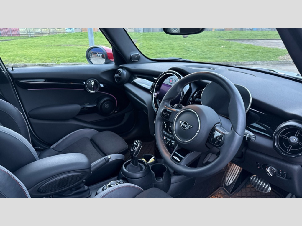 MINI Hatchback 2.0 Cooper S Sport 5dr Auto Apple CarPlay, Automatic start/stop function with brake energy recuperation, Compatible mobile phone bluetooth with audio streaming, Digital dashboard display, Electro-mechanical speed dependant steering assistance, Flexible car sharing preparation, Instrument cluster, Mini E-call, MINI TeleServices, On board computer, Service interval indicator, Adaptive suspension, Double Vanos system, Fully variable valve control, Gear change indicator display, High precision injection, Performance Control, Steptronic sport transmission with double clutch and steering wheel paddles, 8.8" touchscreen with LED ring, FM tuner and DAB digital radio, 3rd brake light, Automatic headlight activation switch, Bonnet scoop, Dynamic brake lights, Electric front+rear windows, Heated rear window, Heated windscreen washer jets, JCW Aerodynamic kit - Front and rear bumpers with sporty JCW styling and part-painted side sills with MINI John Cooper Works door sill finishers, John Cooper Works Logo, John Cooper Works rear spoiler, LED headlight with closed ring and daytime driving lights, Metal door sill strips with Cooper S, Model logo Cooper S on right of tailgate, Piano black fuel filler cap, Rain sensor window wipers, Rear fog lights, Rear LED lights with union jack design, Rear side wing doors, Rear window wiper, Side scuttle panel with integrated indicator, Sun/heat protection glass, White indicator lenses, 12V Accessory socket in centre console, 3 seat bench in 2nd row, 4 lashing eyes in luggage compartment, 60/40 split folding rear seat, Anthracite headliner including grab handles and clothes hooks, Carbon black colour line - Knee roll and door armrest, Chrome interior highlights, Cupholders, Front and rear head restraints, Front and rear isofix with front passenger airbag deactivation, Front and rear velour floor mats, Glove compartment, Height and length steering column adjustment, Integrated headrests, adjustable thigh support for seats, Interior lighting with 12 different colours across the dashboard, underneath door bezel with illuminated laser-engraved design on central display, Leatherette gearshift lever and handbrake gaiters, LED reading lights, vanity mirror lights, front foot well light and spotlight on front seats, Mechanical seat adjustment - forward/back & backrest for front seats and driver seat height adjust, Multifunction steering wheel, Single front passenger seat, Storage compartments in doors, Storage pocket on back of front seats, Sunvisors with vanity mirrors, Walknappa leather steering wheel with grey seam and John Cooper Works badge on Piano Black lower steering wheel spoke, Driving assistant pack - Mini Hatchback, Piano black exterior pack - Mini Hatchback Cooper S, Premium plus pack - Hatchback Cooper S, 3 point seatbelts on all five seats, 6 Airbags - front, side, head and seat belt tensioners, Anti-lock braking system (ABS), Child locks on rear doors, DSC - Dynamic Stability Control, Front and rear disc brakes, Hill start assist, Two tone horn, Tyre pressure monitoring system, Alarm system with tilt sensor, monitoring doors, bonnet interior and tailgate, Electronic vehicle immobiliser, Start/stop toggle with keyless go, Piano black interior trim, Tool kit