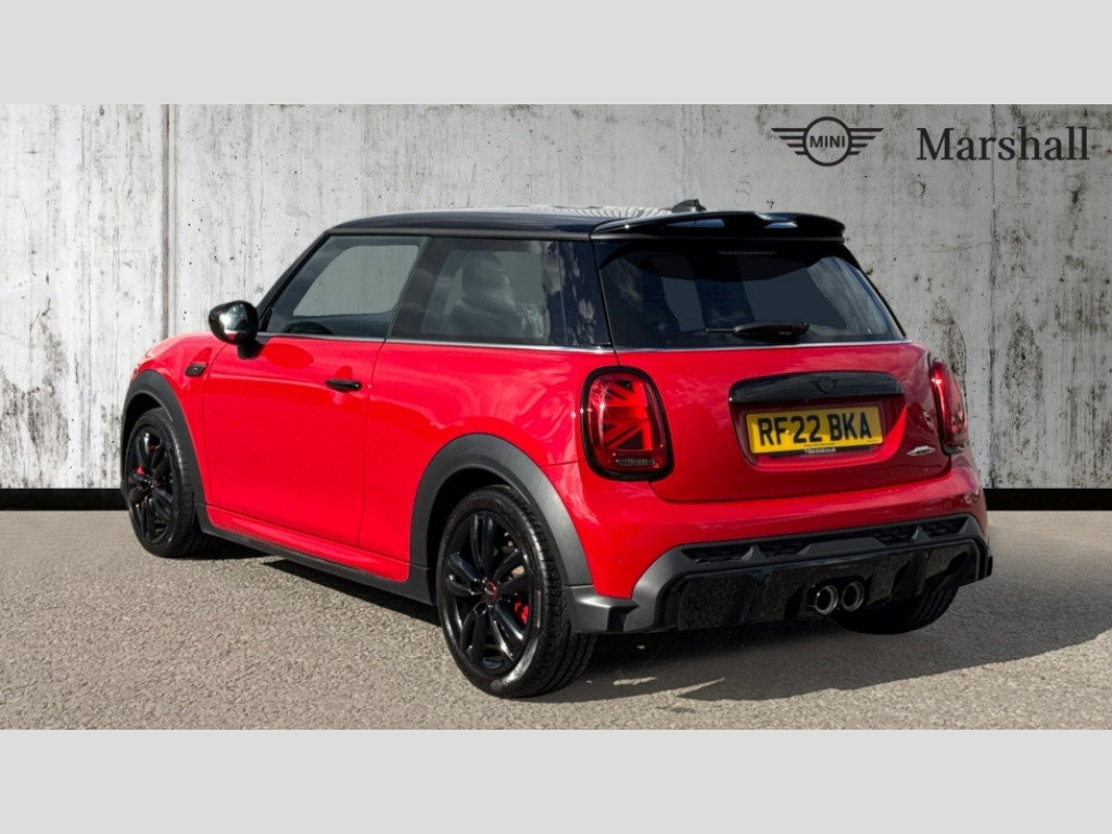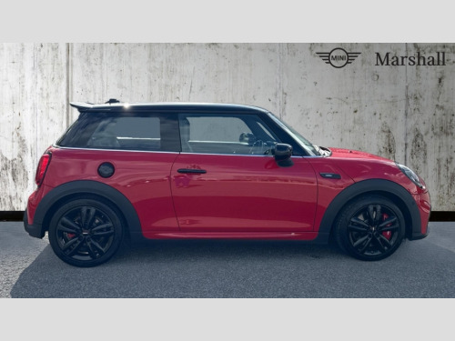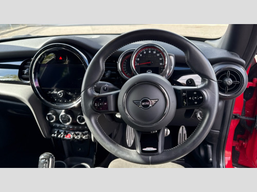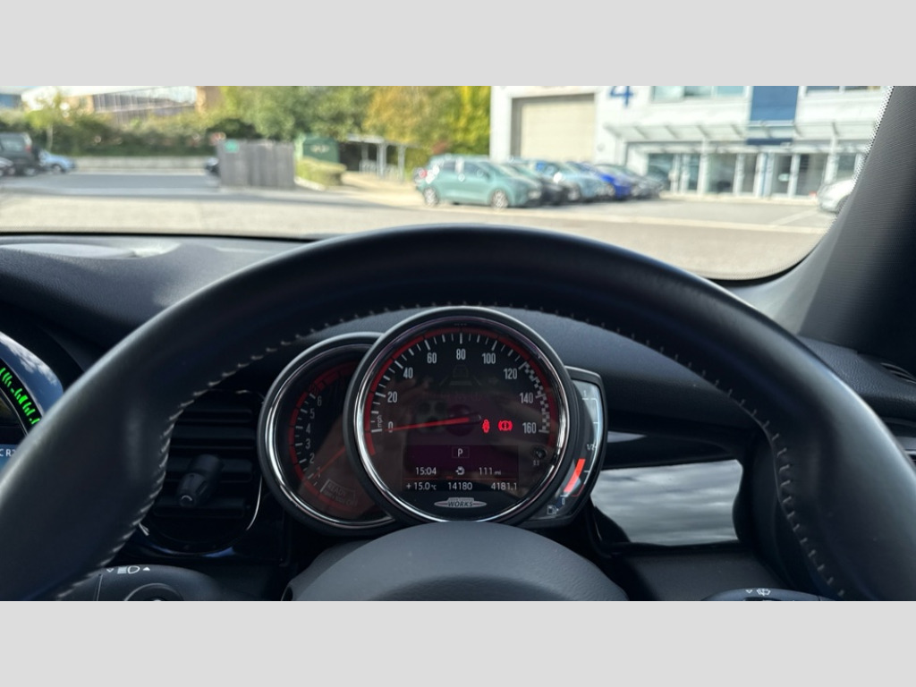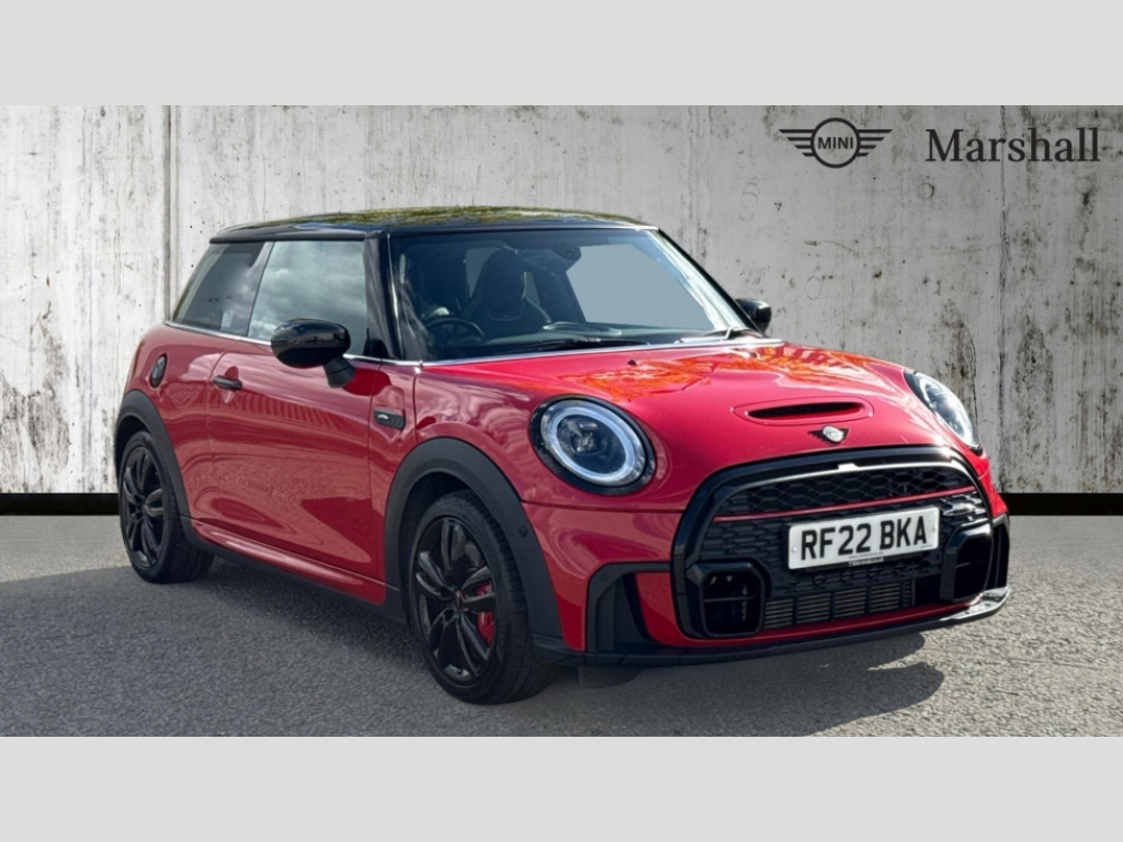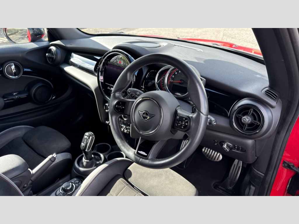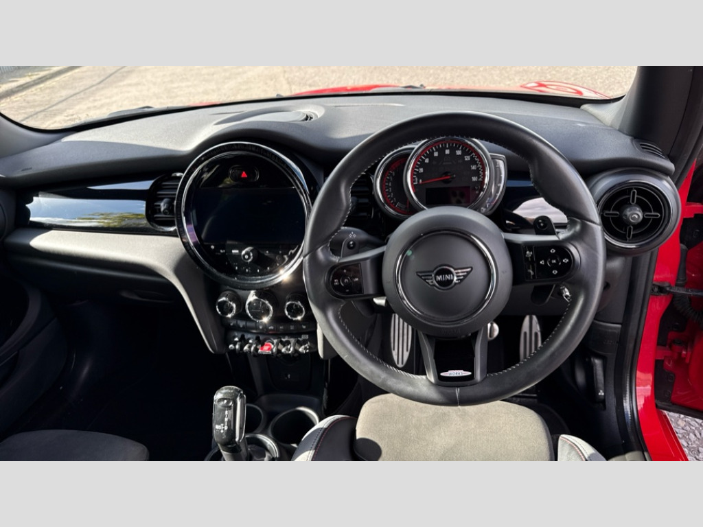 MINI Hatchback 2.0 John Cooper Works 3dr Auto Apple CarPlay, Automatic start/stop function with brake energy recuperation, Compatible mobile phone bluetooth with audio streaming, Cruise control with brake assist, Electro-mechanical speed dependant steering assistance, Flexible car sharing preparation, Instrument cluster, MINI Driving Modes - centre toggle switch to control driving setting (sport, mid and green), Mini E-call, MINI TeleServices, On board computer, Rear park distance control, Service interval indicator, Double Vanos system, Eight speed steptronic sport transmission, with gearshift paddles, Fully variable valve control, High precision injection, Performance Control, 8.8" touchscreen with LED ring, FM tuner and DAB digital radio, 3rd brake light, Automatic headlight activation switch, Bonnet scoop, Dynamic brake lights, Electric front windows, Heated rear window, Heated windscreen washer jets, JCW Aerodynamic kit - Front and rear bumpers with sporty JCW styling and part-painted side sills with MINI John Cooper Works door sill finishers, John Cooper Works logo above an individual grille strut in Chilli Red, John Cooper Works rear spoiler, Radiator grille piano black border with honeycomb structure in black matt, Rain sensor window wipers, Rear fog lights, Rear LED lights with union jack design, Rear window wiper, Side scuttle panel with integrated indicator, Side scuttle with MINI John Cooper Works logo in black high-gloss with red border, Sun/heat protection glass, Two central exhaust tailpipes with chrome finisher, White indicator lenses, 12V Accessory socket in centre console, 2 seat bench in 2nd row, 4 lashing eyes in luggage compartment, 60/40 split folding rear seat, Anthracite headliner including grab handles and clothes hooks, Carbon black colour line - Knee roll and door armrest, Chrome interior highlights, Cupholders, Front and rear isofix with front passenger airbag deactivation, Front floor mats in velour, Glove compartment, Height and length steering column adjustment, Interior lighting with 12 different colours across the dashboard, underneath door bezel with illuminated laser-engraved design on central display, JCW Sport seats with integrated headrests, adjustable thigh support and John Cooper Works logo, Leatherette gearshift lever and handbrake gaiters, LED reading lights, vanity mirror lights, front foot well light and spotlight on front seats, Mechanical seat adjustment - forward/back & backrest for front seats and driver seat height adjust, Multifunction steering wheel, Passenger seat height adjuster, Rubberised stainless steel pedals, Single front passenger seat, Storage compartments in doors, Storage pocket on back of front seats, Sunvisors with vanity mirrors, Walknappa leather steering wheel with grey seam and John Cooper Works badge on Piano Black lower steering wheel spoke, Piano black exterior pack - JCW, 3 point seatbelts on all four seats, 4-piston fixed-calliper brakes front, 6 Airbags - front, side, head and seat belt tensioners, Anti-lock braking system (ABS), DSC - Dynamic Stability Control, Front and rear disc brakes, Red brake callipers with John Cooper Works logo, Single tone fanfare horn, Tyre pressure monitoring system, Alarm system with tilt sensor, monitoring doors, bonnet interior and tailgate, Electronic vehicle immobiliser, Start/stop toggle with keyless go, Tool kit