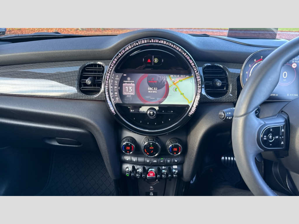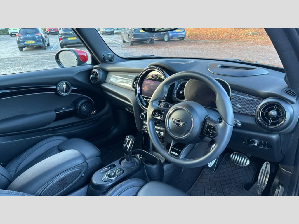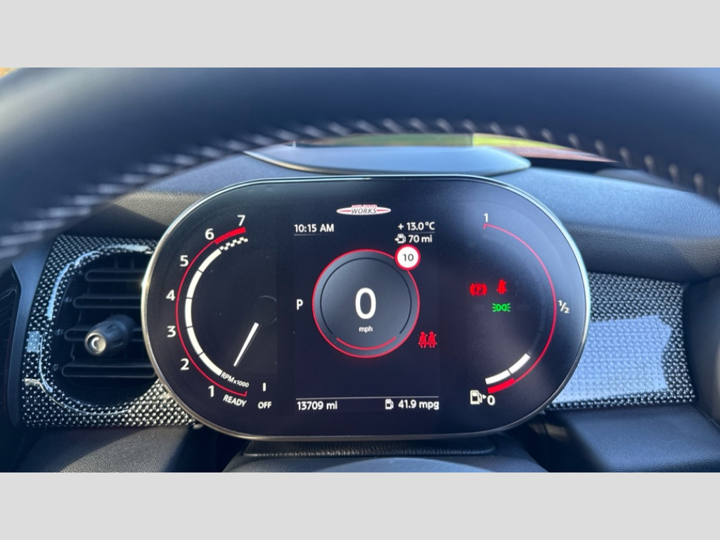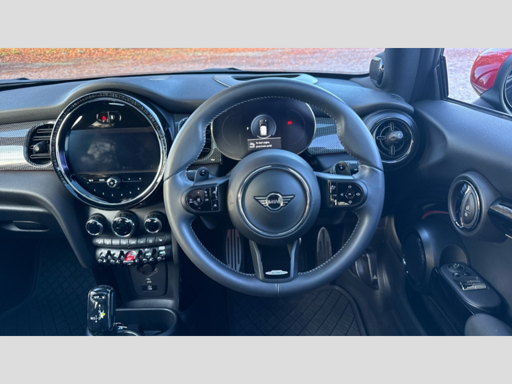 MINI Hatchback 2.0 John Cooper Works Premium Plus 3dr Auto Apple CarPlay, Automatic start/stop function with brake energy recuperation, Compatible mobile phone bluetooth with audio streaming, Digital dashboard display, Electro-mechanical speed dependant steering assistance, Flexible car sharing preparation, Instrument cluster, Mini E-call, MINI TeleServices, On board computer, Service interval indicator, Double Vanos system, Fully variable valve control, High precision injection, Performance Control, Steptronic sport transmission, 8.8" touchscreen with LED ring, FM tuner and DAB digital radio, 3rd brake light, Automatic headlight activation switch, Bonnet scoop, Dynamic brake lights, Electric front windows, Heated rear window, Heated windscreen washer jets, JCW Aerodynamic kit - Front and rear bumpers with sporty JCW styling and part-painted side sills with MINI John Cooper Works door sill finishers, John Cooper Works logo above an individual grille strut in Chilli Red, John Cooper Works rear spoiler, LED headlight with closed ring and daytime driving lights, Rain sensor window wipers, Rear fog lights, Rear LED lights with union jack design, Rear window wiper, Side scuttle panel with integrated indicator, Side scuttle with MINI John Cooper Works logo in black high-gloss with red border, Sun/heat protection glass, White indicator lenses, 12V Accessory socket in centre console, 2 seat bench in 2nd row, 4 lashing eyes in luggage compartment, 60/40 split folding rear seat, Anthracite headliner including grab handles and clothes hooks, Chrome interior highlights, Cupholders, Front and rear isofix with front passenger airbag deactivation, Front floor mats in velour, Glove compartment, Height and length steering column adjustment, Integrated headrests, adjustable thigh support for seats, Interior lighting with 12 different colours across the dashboard, underneath door bezel with illuminated laser-engraved design on central display, Leatherette gearshift lever and handbrake gaiters, LED reading lights, vanity mirror lights, front foot well light and spotlight on front seats, Mechanical seat adjustment - forward/back & backrest for front seats and driver seat height adjust, Multifunction steering wheel, Passenger seat height adjuster, Rubberised stainless steel pedals, Single front passenger seat, Storage compartments in doors, Storage pocket on back of front seats, Sunvisors with vanity mirrors, Walknappa leather steering wheel with grey seam and John Cooper Works badge on Piano Black lower steering wheel spoke, Piano black exterior pack - JCW, Premium plus pack - Hatchback JCW, 17" sport brake 4-piston fixed-calliper brakes front, 3 point seatbelts on all four seats, 6 Airbags - front, side, head and seat belt tensioners, Anti-lock braking system (ABS), DSC - Dynamic Stability Control, Front and rear disc brakes, Red brake callipers with John Cooper Works logo, Single tone fanfare horn, Tyre pressure monitoring system, Alarm system with tilt sensor, monitoring doors, bonnet interior and tailgate, Electronic vehicle immobiliser, Start/stop toggle with keyless go, Tool kit