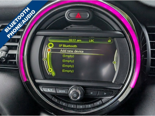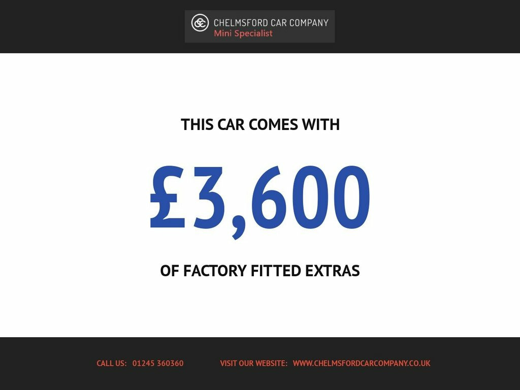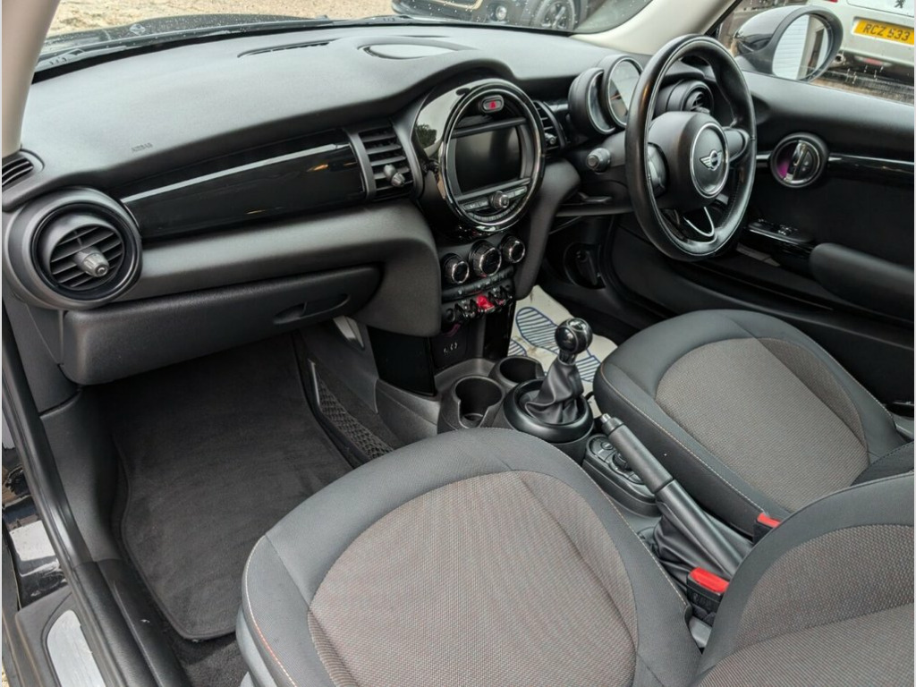 Service History, 6 Month CCC Warranty Included 7KN PEPPER Pack, Interior lights pack - Mini Hatchback, Dual zone automatic air conditioning, Rain Sensor and Automatic Headlight Acti, MINI Excitement Pack, Bluetooth Phone, 3 spoke leather sports steering wheel wi, Radio visual boost with MINI Connected, Bluetooth Music Streaming, Passenger seat height adjuster, Folding front centre armrest + storage, Metallic - Midnight black, DAB audio, Body coloured mirror caps, Rain sensor including auto headlights ac, Piano black interior trim, Fog Lights, Intelligent emergency call, ISOFIX, Chrome Line Exterior, Firework Cloth - Carbon Black, Interior Trim - Piano Black, Storage Compartment Pack