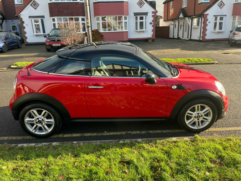STUNNING LOOKING LOW MILEAGE COUPE AUTO, JUST BEEN SERVICED WITH ALL MOT ADVISERIES ATTENDED TO. Discover this charming 2014 MINI Coupe Cooper, a vehicle that stands out with its remarkably low mileage of just 52,000 miles, a true testament to its careful ownership over the years. This particular model, a Cooper variant, is powered by an efficient 1.6L petrol engine and meets the Euro 6 emission standards. It comes equipped with a multifunction steering wheel for convenient control, stylish 16 inch Light 6 Star Twin Spoke alloy wheels, and rear parking sensors to assist with manoeuvring. Inside, you'll find manual air conditioning to keep you comfortable and a rain sensor that automatically activates the headlights, ensuring visibility in changing conditions.This MINI Coupe Cooper offers several advantages that make it a compelling choice. Its low insurance group rating means more affordable running costs, while the impressive fuel economy of 44 miles per gallon highlights its efficiency for everyday driving. Furthermore, its low CO2 emissions contribute to a more environmentally conscious motoring experience. With only three previous owners and its low mileage for a 2014 vehicle, this MINI Coupe Cooper presents a well maintained and economical option for those seeking a distinctive and practical car. ili pack, 16in alloy wheels - light 6-star twin spoke, air conditioning - automatic, seats - sports front, multifunction controls for steering wheel, front fog lights, colour line - carbon black, chrome line exterior, interior light pack, rain sensor and automatic headlight activation, roof and mirror caps - black, cloth-leather ray - carbon black, 15in alloy wheels - light 7-hole, 3-spoke sport leather steering wheel, 3rd brake light, asc+t - automatic stability control and traction, air conditioning - manual, airbags - driver, airbags - front passenger, airbags - front passenger with deactivation switch, airbags - head and thorax, alarm - thatcham cat1, anthracite headlining, anti-lock braking system - abs, automatic door window lowering by approx 6mm when door opens, aux-in connection, body coloured fuel filler cap in rear right side panel - linked to central locking, brake force display, brake pad wear indicator, cbc - cornering brake control, car jack, central locking - activated at 10mph, central locking - remote, chrome strip across lower front apron, crash sensor - fuel cut-off, crash sensor - hazard warning flashers and interior light, crash sensor - unlocking doors, cupholders - two in front, dab tuner, decorative rings surrounding dashboard instruments, door handles - chrome plated, door handles - interior - chrome plated, door mirrors - electrically adjustable and heated, door sill finishers - metal look and model dependent lettering, dynamic stability control - dsc, ebd - electronic brake-force distribution, electric windows - front - one touch up and down, electronic power steering - speed related, embellisher at bottom edge of all windows - chrome plated, exhaust tailpipe - visible - single - right with chrome finisher, gearshift lever knob plastic with chrome ring, gearshift-selector lever and handrake lever gaiters in sensatec, halogen lights for low beam and high beam headlights, handbrake-lever grip - plastic with chrome plated handbrake push button, headlight - beam-throw control electrical with manual adjustment, headlights - chrome bezels, headlights - follow me home, headrests for all seats - manually adjustable, heated front windscreen washer jets, heated rear window with automatic deactivation, heater with mechanical control and recirculating-air button, hill assist, interior lighting integrated into centre front headliner above interior mirror, interior mirror - mechanical anti-dazzle, interior surface in fine white silver and door rings in black, interior world - carbon black, knee roll in hard plastic on dashboard in carbon black, lashing eyes in luggage compartment, luggage compartment - light, luggage compartment - partition with large through-loading door, mini mobility system, minimalism fuel saving technology, microfilter, multiple control arm rear axle, non smoker package, pdc - park distance control - rear, passenger seat height adjustable, personal profile, radiator grille - chrome plated, radio boost cd, roof spoiler painted in roof colour, seats - height adjustable front, security locking wheel bolts, side air inlets black with integrated white indicator, sills-bumper edges-wheel arches - black with model-specific bumper trims, single joint spring strut front axle, spoiler - active rear (speed related), sport button, sport stripes - black, start-stop button, steering column height and length adjustment, storage options in the trim panels of each front panel as well as centre console, sun visors with integrated vanity mirrors on drivers and passengers sides, tpws - tyre pressure warning system, tailgate handle - chrome plated, tool kit in luggage compartment