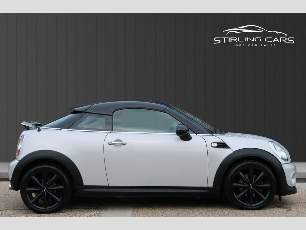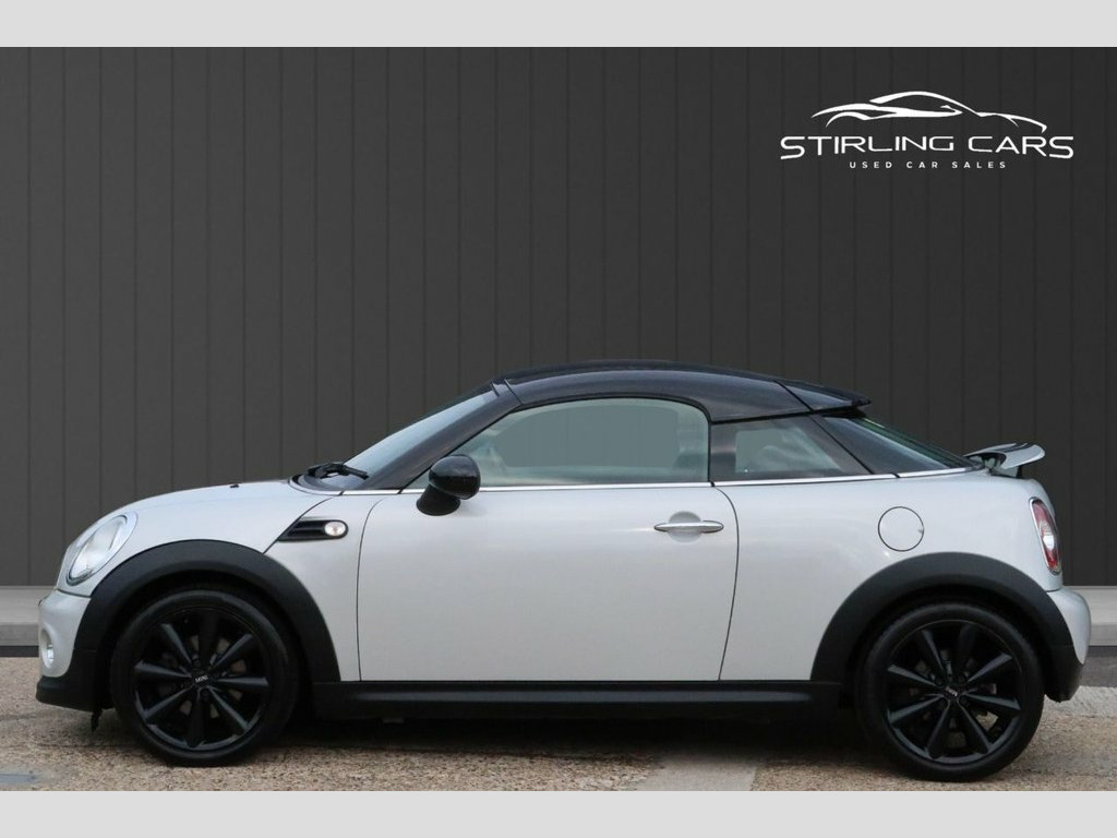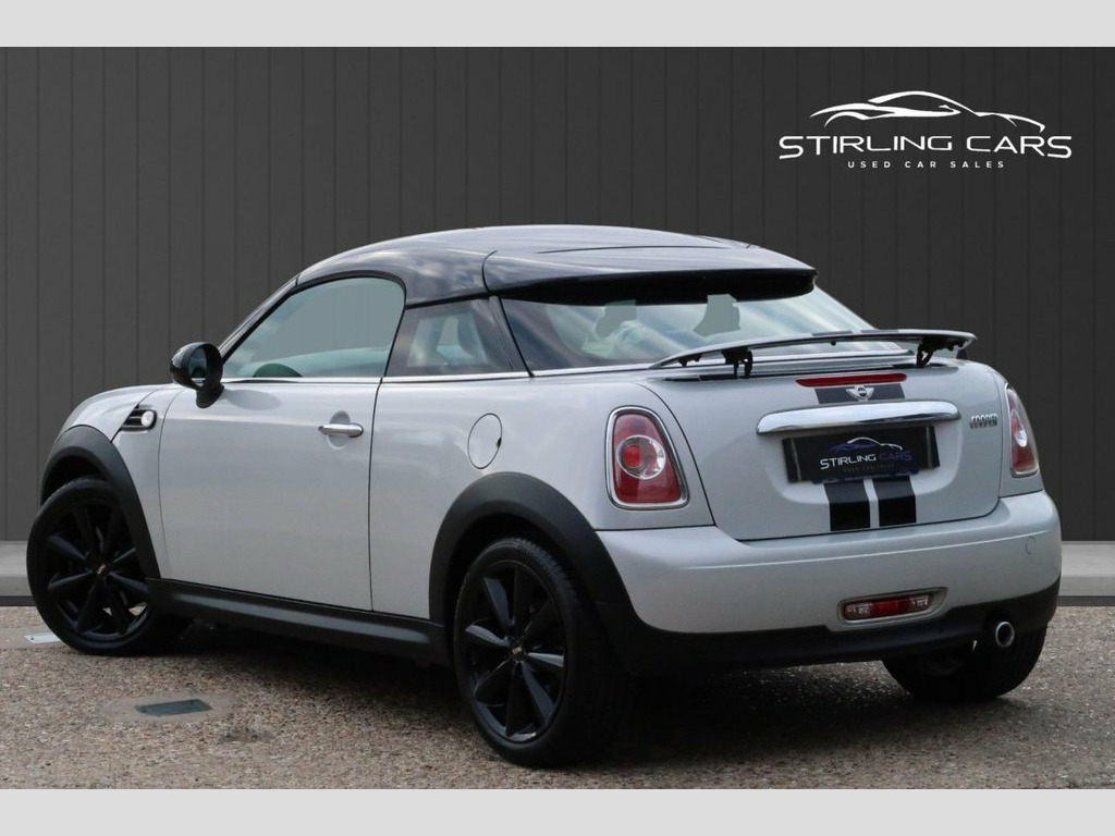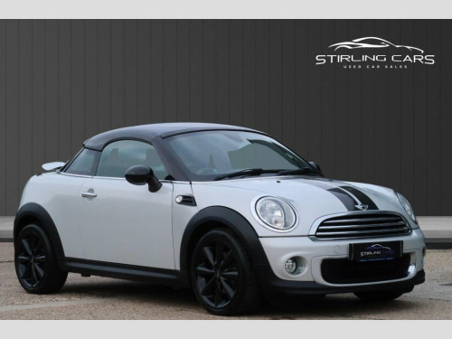 For sale is a 2013 (63) MINI Coupe 1.6 Cooper 2dr Petrol Manual, producing 122PS and fully compliant with Euro 6 emissions standards. This sporty and stylish coupe is a fun, economical drive and comes with MOT, warranty included, and two keys for peace of mind. Finished in white with a contrasting black roof and black bonnet stripes, it also features gloss black alloy wheels that give it a distinctive, sporty look. The car offers both Sport and Eco driving modes, plus a Start/Stop system to improve fuel efficiency. Inside, you'll find a well-equipped cabin with media connectivity, cruise control, and a sporty yet comfortable driving position. It's a great choice for those who want MINI's iconic design with added flair and a more dynamic coupe profile. Low finance rates are available, and drive-away insurance can be arranged so you can hit the road the same day. This is a well-looked-after example that's ready to go. Contact us today to arrange a viewing or test drive. 15in Alloy Wheels - Light 7-Hole, 3-Spoke Sport Leather Steering Wheel, 3rd Brake Light, ASC+T - Automatic Stability Control and , Air Conditioning - Manual, Airbags - Driver, Airbags - Front Passenger, Airbags - Front Passenger with Deactivat, Airbags - Head and Thorax, Alarm - Thatcham CAT1, Anthracite Headlining, Anti-Lock Braking System - ABS, Aux-In Connection, Basic Bluetooth Function with USB Audio, Brake Force Display, Brake Pad Wear Indicator, CBC - Cornering Brake Control, Car Jack, Central Locking - Activated At 10mph, Central Locking - Remote, Chrome Strip Across Lower Front Apron, Crash Sensor - Fuel Cut-Off, Crash Sensor - Hazard Warning Flashers a, Crash Sensor - Unlocking Doo