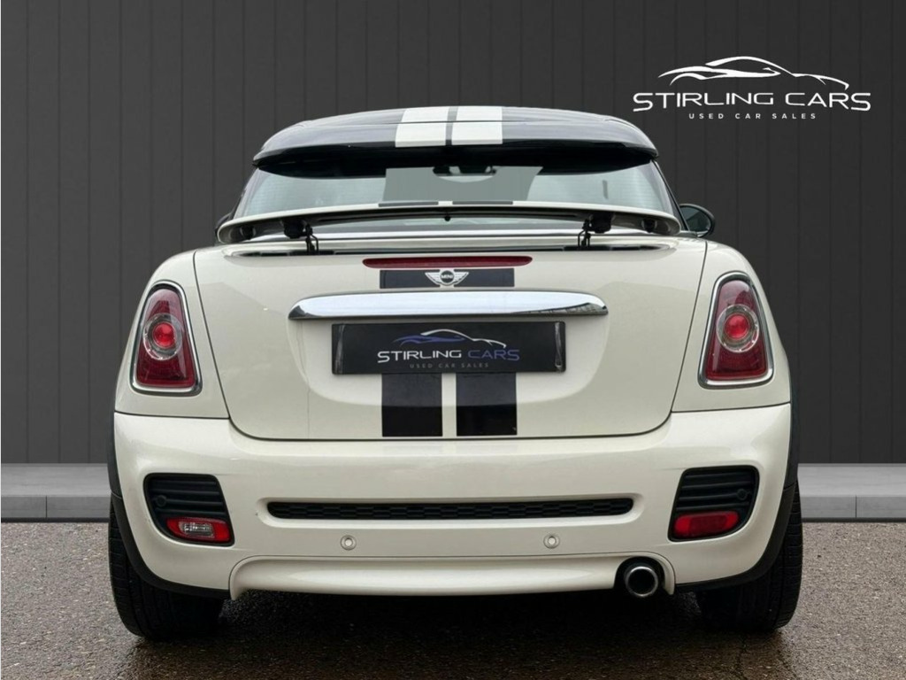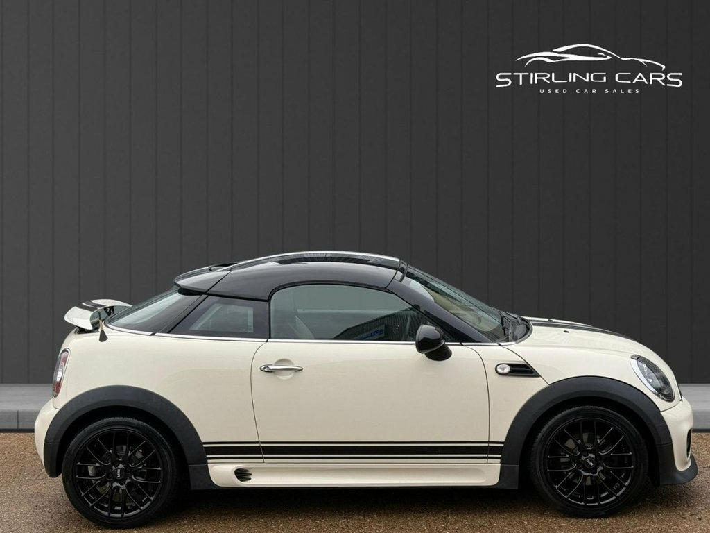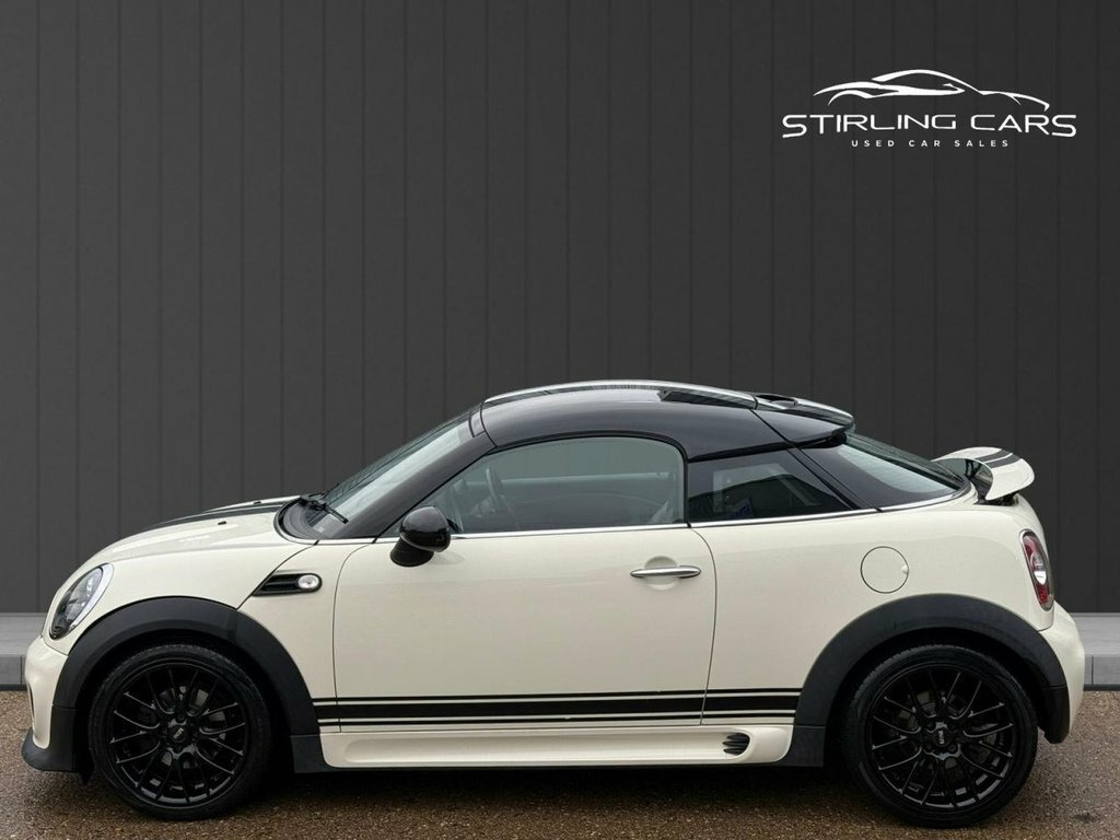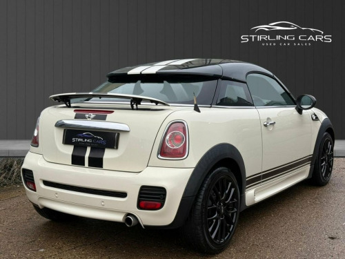 Stylish 2013 (13) MINI Coupe 1.6 Cooper presented in great condition with full MINI service history, including its most recent service carried out at the mileage it is currently on. This car comes with MOT and warranty included, two keys and just one previous owner, showing clear signs of careful ownership. Finished with JCW styling, the car features gloss black alloy wheels, black bonnet stripes, black exterior decals and an electric rear spoiler, giving it a sporty and distinctive look. Xenon headlights further enhance the appearance while providing excellent visibility. Inside, the car offers a well-kept cabin with media system, Bluetooth connectivity and the classic MINI driving feel that makes these models so enjoyable. A well-maintained example with excellent history, great specification and strong looks, ready to drive away. 15in Alloy Wheels - Light 7-Hole, 3-Spoke Sport Leather Steering Wheel, 3rd Brake Light, ASC+T - Automatic Stability Control and , Air Conditioning - Manual, Airbags - Driver, Airbags - Front Passenger, Airbags - Front Passenger with Deactivat, Airbags - Head and Thorax, Alarm - Thatcham CAT1, Anthracite Headlining, Anti-Lock Braking System - ABS, Automatic Door Window Lowering by Approx, Aux-In Connection, Body Coloured Fuel Filler Cap in Rear Ri, Brake Force Display, Brake Pad Wear Indicator, CBC - Cornering Brake Control, Car Jack, Central Locking - Activated At 10mph, Central Locking - Remote, Chrome Strip Across Lower Front Apron, Crash Sensor - Fuel Cut-Off, Crash Sensor - Hazard Warni