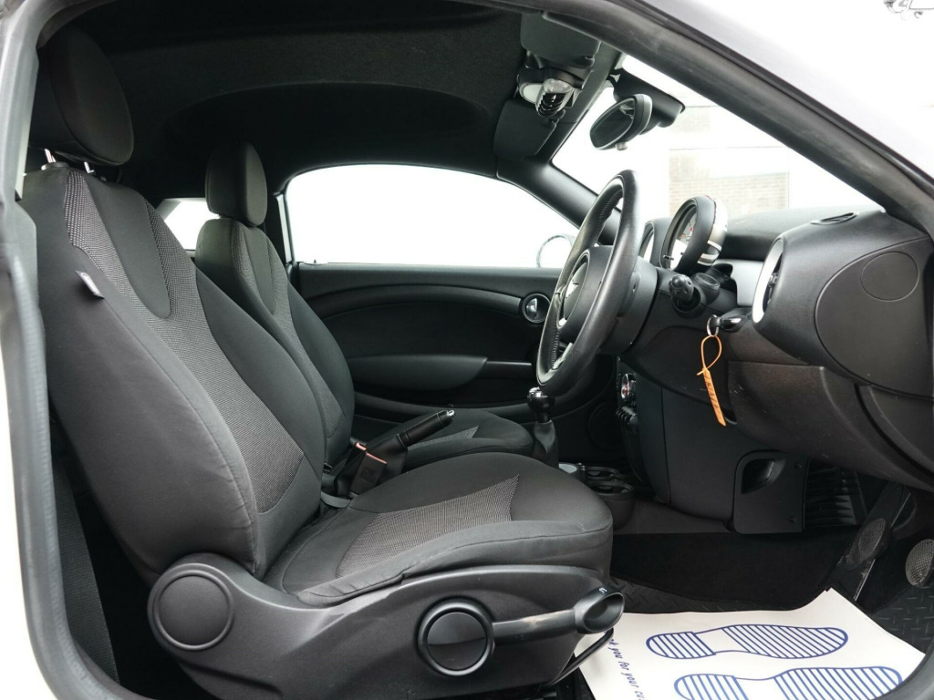This 2013 MINI Coupe Cooper boasts a full service history, with its last service completed on 14 March 2025, and a clear vehicle history check for your peace of mind. This stylish vehicle is powered by a 1.6 litre petrol engine and meets Euro 6 emission standards. It comes equipped with the desirable PEPPER Pack, 15 inch Light 5 Star Twin Spoke alloy wheels, and a manual air conditioning system. For your convenience, it also features basic Bluetooth functionality with USB audio and a rain sensor that automatically activates the headlights.You can expect excellent running costs with this MINI Coupe Cooper, achieving an impressive fuel economy of 52 miles per gallon. Furthermore, its low CO2 emissions and low insurance group rating mean it is more economical to run than many similar vehicles. This car also comes with a 3 month warranty, offering further reassurance for your purchase. pper pack, basic bluetooth function with usb audio, air conditioning - automatic, front fog lights, chrome line exterior, interior light pack, rain sensor and automatic headlight activation, 15in alloy wheels - light 5-star twin spoke, roof and mirror caps - black, cloth cosmos - carbon black, 15in alloy wheels - light 7-hole, 3-spoke sport leather steering wheel, 3rd brake light, asc+t - automatic stability control and traction, air conditioning - manual, airbags - driver, airbags - front passenger, airbags - front passenger with deactivation switch, airbags - head and thorax, alarm - thatcham cat1, anthracite headlining, anti-lock braking system - abs, automatic door window lowering by approx 6mm when door opens, aux-in connection, body coloured fuel filler cap in rear right side panel - linked to central locking, brake force display, brake pad wear indicator, cbc - cornering brake control, car jack, central locking - activated at 10mph, central locking - remote, chrome strip across lower front apron, crash sensor - fuel cut-off, crash sensor - hazard warning flashers and interior light, crash sensor - unlocking doors, cupholders - two in front, dab tuner, decorative rings surrounding dashboard instruments, door handles - chrome plated, door handles - interior - chrome plated, door mirrors - electrically adjustable and heated, door sill finishers - metal look and model dependent lettering, dynamic stability control - dsc, ebd - electronic brake-force distribution, electric windows - front - one touch up and down, electronic power steering - speed related, embellisher at bottom edge of all windows - chrome plated, exhaust tailpipe - visible - single - right with chrome finisher, gearshift lever knob plastic with chrome ring, gearshift-selector lever and handrake lever gaiters in sensatec, halogen lights for low beam and high beam headlights, handbrake-lever grip - plastic with chrome plated handbrake push button, headlight - beam-throw control electrical with manual adjustment, headlights - chrome bezels, headlights - follow me home, headrests for all seats - manually adjustable, heated front windscreen washer jets, heated rear window with automatic deactivation, heater with mechanical control and recirculating-air button, hill assist, interior lighting integrated into centre front headliner above interior mirror, interior mirror - mechanical anti-dazzle, interior surface in fine white silver and door rings in black, interior world - carbon black, knee roll in hard plastic on dashboard in carbon black, lashing eyes in luggage compartment, luggage compartment - light, luggage compartment - partition with large through-loading door, mini mobility system, minimalism fuel saving technology, microfilter, multiple control arm rear axle, non smoker package, pdc - park distance control - rear, passenger seat height adjustable, personal profile, radiator grille - chrome plated, radio boost cd, roof spoiler painted in roof colour, seats - height adjustable front, security locking wheel bolts, shift point display, side air inlets black with integrated white indicator, sills-bumper edges-wheel arches - black with model-specific bumper trims, single joint spring strut front axle, spoiler - active rear (speed related), sport button, sport stripes - black, start-stop button, steering column height and length adjustment, storage options in the trim panels of each front panel as well as centre console, sun visors with integrated vanity mirrors on drivers and passengers sides, tpws - tyre pressure warning system, tailgate handle - chrome plated, tool kit in luggage compartment