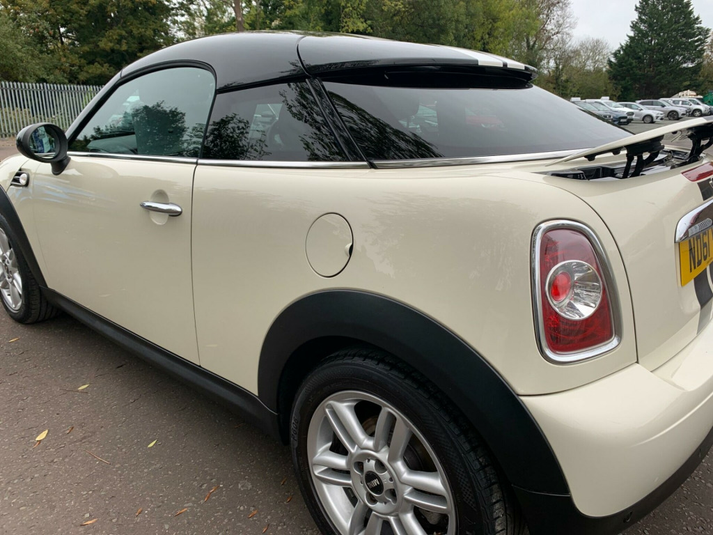 This 2012 MINI Coupe Cooper is a standout choice with exceptionally low mileage for its age, having covered just 59,255 miles. Powered by a responsive 1.6L petrol engine, this Cooper trim model offers a distinctive driving experience. The interior features comfortable Cloth Leather Ray upholstery in Carbon Black, complemented by a Polar Beige Colour Line for a touch of style. Practicality is enhanced with multifunction controls on the steering wheel and a heated front windscreen, perfect for colder mornings. Darkened rear glass adds to its sleek appearance. Complete with a 7 stamp service history, the last service was completed at 55,012 miles, providing a good indication of its maintenance.This MINI Coupe Cooper presents several advantages that set it apart. Its fuel economy is a notable highlight, achieving an impressive 52 miles per gallon, which means fewer trips to the petrol station. Furthermore, its low insurance group rating indicates that running costs are likely to be more affordable compared to similar vehicles. The low CO2 emissions are also a significant benefit, suggesting a more environmentally conscious choice. These factors combine to make this MINI Coupe Cooper a compelling option for those seeking a stylish and economical compact car.Supplied with a long MOT and a 3 months/3,000 miles parts and labour warranty. Usual dealer facilities available including part exchange service, low cost finance plans and extended mechanical warranties.. 15in Alloy Wheels - Light 7-Hole, 3-Spoke Sport Leather Steering Wheel, ASC+T - Automatic Stability Control and Traction, Air Conditioning - Manual, Airbags - Driver, Airbags - Front Passenger, Airbags - Front Passenger with Deactivation Switch, Airbags - Head, Airbags - Head and Thorax, Alarm - Thatcham CAT1, Anthracite Headlining, Anti-Lock Braking System - ABS, Aux-In Connection, Brake Energy Regeneration- iGR, Car Jack, Central Locking - Remote, Crash Sensor - Fuel Cut-Off, Cupholders - Two in Front, DAB Tuner, Door Mirrors - Electrically Adjustable, Dynamic Stability Control - DSC, EBD - Electronic Brake-Force Distribution, Electric Windows - Front - One Touch Up and Down, Electronic Power Steering - Speed Related, Halogen Lights for Low Beam and High Beam Headlights, Headlight - Beam-Throw Control Electrical with Manual Adjustment, Headlights - Follow Me Home, Heated Mirrors and Windscreen Washer Jets, Heated Rear Window with Automatic Deactivation, Hill Assist, Interior World - Carbon Black, MINI Mobility System, Non Smoker Package, PDC - Park Distance Control - Rear, Passenger Seat Height Adjustable, Radio BOOST CD, Remote Controlled Alarm System, Seats - Height Adjustable Drivers, Second Radio Remote Key, Security Locking Wheel Bolts, Sport Button, Sport Stripes - Black, Steering Column Height and Length Adjustment, TPWS - Tyre Pressure Warning System, White Direction Indicators Lights, CHILI Pack, 16in Alloy Wheels - Light 6-Star Twin Spoke, Heated Front Windscreen, Basic Bluetooth Function with USB Audio, Air Conditioning - Automatic, Seats - Sports Front, Multifunction Controls for Steering Wheel, Darkened Rear Glass, Interior Surfaces - Piano Black, Chrome Line Interior, Front Centre Armrest, Front Fog Lights, Colour Line - Polar Beige, Auto-Dimming Interior Rear View Mirror, Chrome Line Exterior, Interior Light Pack, Rain Sensor and Automatic Headlight Activation, Additional Decor Rings, Roof and Mirror Caps - Black, Cloth-Leather Ray - Carbon Black. Part service history