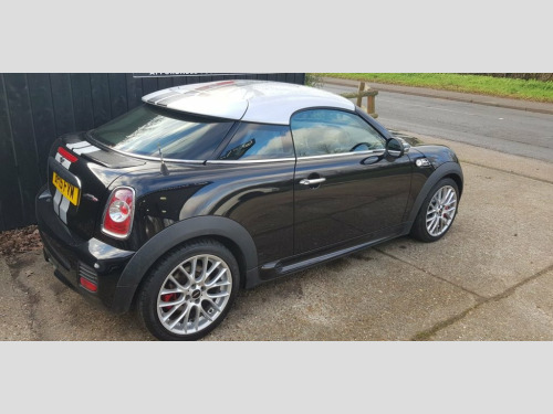 FINISHED IN MIDNIGHT BLACK METALLIC WITH CARBON BLACK CLOTH LEATHER,CHILI PACK,17" CROSS SPOKE CHALLENGE ALLOYS,SPORTS EXHAUST JCW,ROOF AND MIRROR CAPS IN SILVER,SPORT STRIPES,AUTOMATIC AIR CON,INTERIOR LIGHT PACK,BLUETOOTH PHONE,FULL JCW FACTORY COUPE,BI XENON HEADLIGHTS,RED CALIPERS,ONLY 25000 MILES,2 PRIVATE OWNERS WITH MINI SERVICE,PERSONAL VIDEO AVAILABLE ON REQUEST,SEE CUSTOMER GOOGLE REVIEWS ONLINE.ULEZ EXEMPT. 17in Alloy Wheels - Light Cross Spoke Ch, 3rd Brake Light, Additional Decor Rings, Air Conditioning - Automatic, Airbags - Driver, Airbags - Front Passenger, Airbags - Front Passenger with Deactivat, Airbags - Front Side, Airbags - Head and Thorax, Alarm - Thatcham CAT1, Anthracite Headlining, Anti-Lock Braking System - ABS, ASC+T - Automatic Stability Control and , Aux-In Connection, Basic Bluetooth Function with USB Audio, Black Headlight Reflectors, Brake Force Display, Brake Pad Wear Indicator, Car Jack, CBC - Cornering Brake Control, Central Locking - Activated At 10mph, Central Locking - Remote, CHILI Pack, Colour Line - Carbon Black, Crash Sensor - Fuel Cut-Off, Crash Sensor - Hazard