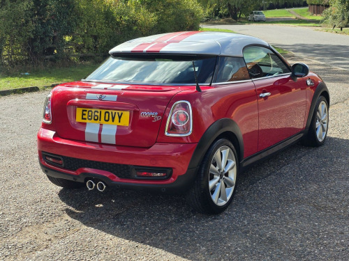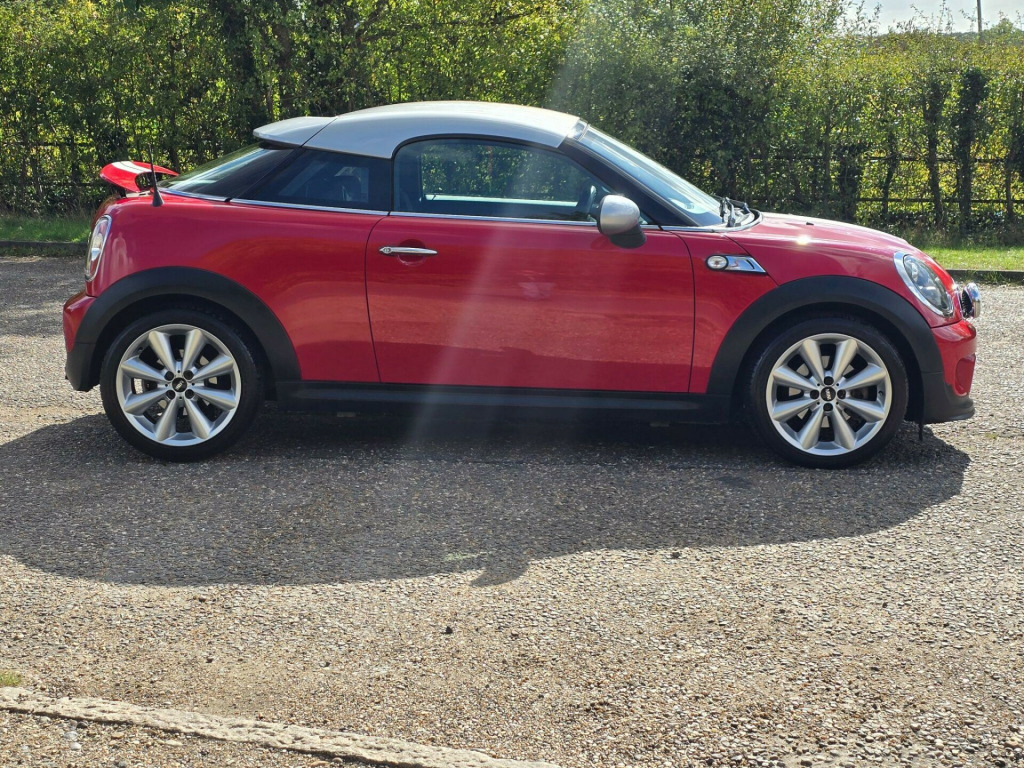 This is a lovely low mileage example. Low miles with Service History. Current lady owner since 2015. Will come serviced and with new 12 Months mot at point of sale. Free 12 Months AA Breakdown cover. 2 Keys. HPI Clear! Part exchange and finance options available.The appeal of this MINI Coupe Cooper SD is further enhanced by its impressive fuel economy, achieving up to 66 miles per gallon. This figure, along with its low insurance group and low CO2 emissions, indicates that this vehicle offers a more economical and cost effective ownership experience compared to many similar cars. in alloy wheels - light rib spoke, 3-spoke sport leather steering wheel, asc+t - automatic stability control and traction, additional decor rings, air conditioning - manual, airbags - driver, airbags - front passenger, airbags - front passenger with deactivation switch, airbags - head, airbags - head and thorax, alarm - thatcham cat1, anthracite headlining, anti-lock braking system - abs, aux-in connection, brake energy regeneration- igr, car jack, central locking - remote, crash sensor - fuel cut-off, cupholders - two in front, dab tuner, door mirrors - electrically adjustable, dynamic stability control - dsc, ebd - electronic brake-force distribution, electric windows - front - one touch up and down, electronic power steering - speed related, halogen lights for low beam and high beam headlights, headlight - beam-throw control electrical with manual adjustment, headlights - follow me home, heated mirrors and windscreen washer jets, heated rear window with automatic deactivation, hill assist, interior world - carbon black, mini mobility system, multifunction controls for steering wheel, non smoker package, pdc - park distance control - rear, passenger seat height adjustable, radio boost cd, remote controlled alarm system, seats - height adjustable drivers, seats - sports front, second radio remote key, security locking wheel bolts, sport button, sport stripes - black, steering column height and length adjustment, tpws - tyre pressure warning system, white direction indicators lights, chili pack, 17in alloy wheels - light conical spoke, headlights - bi-xenon, basic bluetooth function with usb audio, air conditioning - automatic, auto-dimming door mirrors and interior rear view mirror, electrically folding exterior mirrors, front fog lights, colour line - carbon black, auto-dimming interior rear view mirror, interior light pack, black headlight reflectors, run-flat tyres, roof and mirror caps - silver, sport stripes - silver