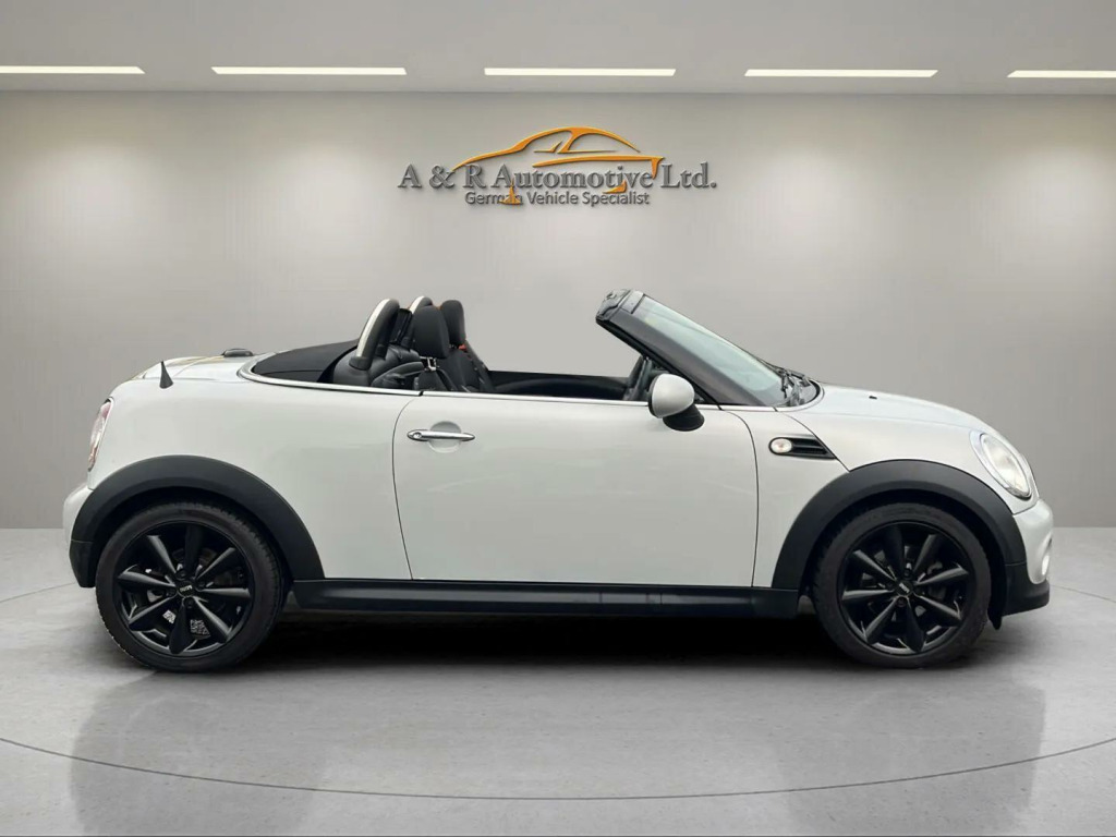 CHECK OUT THE SPEC ON THIS BEAUTIFUL SUPER LOW MILEAGE MINI ROADSTER! CHILI Pack-17in Alloy Wheels - Light Conical Spoke - Black-Basic Bluetooth Function with USB Audio-Air Conditioning - Automatic-Seats - Sports Front-Multifunction Controls for Steering Wheel-Wind Deflector-Front Fog Lights-Colour Line - Carbon Black-Chrome Line Exterior-Interior Light PacK-Rain Sensor and Automatic Headlight Activation-Cloth-Leather Ray - Carbon Black. This car is in superb condition and is sold with 12 Months MOT, 2 Keys and just been Serviced!OUR SHOWROOM AND FORECOURT ARE NOW OPEN FOR VIEWINGS!WE ARE ALSO STILL OPERATING OUR VIDEO CALL VIEWING AND RESERVE AND COLLECT SERVICE IF REQUIRED. ALL VEHICLES COME WITH A NEW MOT, VEHICLE INSPECTION & 3 MONTHS WARRANTY VALID THROUGHOUT THE UK.All vehicles are HPI checked and clear, Part Exchanges Welcome, Credit and Debit cards accepted, Finance available competitive rates. Viewing by appointment only, To arrange your viewing appointment please contact on either phone number or email at aandrautomotivegmail.comA & R, Just Nice People To Deal With. ili pack, 17in alloy wheels - light conical spoke - black, air conditioning - automatic, seats - sports front, multifunction controls for steering wheel, wind deflector, front fog lights, colour line - carbon black, chrome line exterior, interior light pack, rain sensor and automatic headlight activation, cloth-leather ray - carbon black, radio visual boost, 15in alloy wheels - light 5-star twin spoke, 3-spoke sport leather steering wheel, 3rd brake light, asc+t - automatic stability control and traction, air conditioning - manual, air scoop integrated between bumper and radiator grille-frame in body colour, airbags - driver, airbags - front passenger, airbags - front passenger with deactivation switch, airbags - head and thorax, alarm - thatcham cat1, anthracite headlining, anti-lock braking system - abs, automatic door window lowering by approx 6mm when door opens, aux-in connection, body coloured fuel filler cap in rear right side panel - linked to central locking, brake assist, brake force display, cbc - cornering brake control, car jack, central locking - remote, chrome strip across lower front apron, crash sensor - fuel cut-off, crash sensor - hazard warning flashers and interior light, crash sensor - unlocking doors, cupholders - two in front, dab tuner, decorative rings surrounding dashboard instruments, door handles - chrome plated, door handles - interior - chrome plated, door sill finishers - metal look and model dependent lettering, dynamic stability control - dsc, ebd - electronic brake-force distribution, electric windows - front - one touch up and down, electronic power steering - speed related, embellisher at bottom edge of all windows - chrome plated, gearshift-selector lever and handrake lever gaiters in sensatec, halogen lights for low beam and high beam headlights, headlight - beam-throw control electrical with manual adjustment, headlights - chrome bezels, headlights - follow me home, heated front windscreen washer jets, heated mirrors and windscreen washer jets, heated rear window with automatic deactivation, heater with mechanical control and recirculating-air button, hill assist, interior lighting integrated into centre front headliner above interior mirror, interior mirror - mechanical anti-dazzle, interior surface in fine white silver and door rings in black, interior world - carbon black, knee roll in hard plastic on dashboard - carbon black, lashing eyes in luggage compartment, luggage compartment - light, luggage compartment - partition with large through-loading door, mini john cooper works - side air inlets chrome plated without s lettering, mini mobility system, microfilter, mirror caps in body colour, non smoker package, pdc - park distance control - rear, passenger seat height adjustable, personal profile, radio boost cd, roll-bar - stainless steel - polished, seats - height adjustable drivers, seats - height adjustable passengers, second radio remote key, security locking wheel bolts, sills-bumper edges-wheel arches - black with model-specific bumper trims, soft-top black, spoiler - active rear (speed related), sport button, sport stripes - black, steering column height and length adjustment, storage options in the trim panels of each front panel as well as centre console, sun visors with integrated vanity mirrors on drivers and passengers sides, tpws - tyre pressure warning system, tailgate handle - chrome plated, tool kit in luggage compartment, white direction indicators lights, basic bluetooth function with usb audio