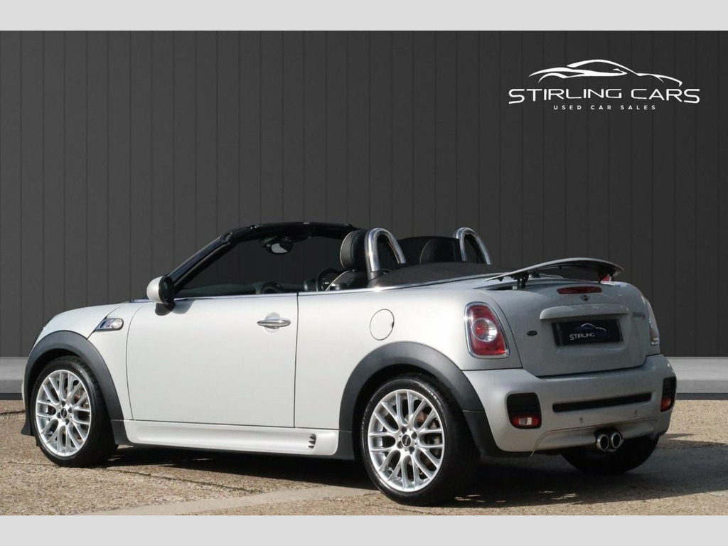 For sale is this 2014 (14 plate) MINI Roadster 1.6 Cooper S Convertible, a fun and sporty open-top two-seater that delivers an engaging drive with distinctive style. This car comes with two keys, a valid MOT, and warranty included for added peace of mind.  Powered by a 1.6-litre turbocharged petrol engine producing 184 PS, paired with a 6-speed manual gearbox, it offers responsive performance while remaining efficient thanks to its Euro 5 status and start/stop technology.  This example comes with the sought-after John Cooper Works styling pack and a number of desirable upgrades, making it stand out from the crowd.  Features and extras include: John Cooper Works spec styling Upgraded alloy wheels Full leather seats Heated front seats Rear parking sensors Electric rear spoiler Cruise control Start/stop function Manual soft-top roof Sport mode and dynamic handling Multi-function steering wheel harmon kardon sound system chilli pack included xenon headlights  This MINI is in excellent condition for its age, offering both style and performance in a compact, driver-focused package. A great opportunity to own a rare and well-specified Roadster, ready to enjoy with the roof down. 16in Alloy Wheels - Light Rib Spoke, 3-Spoke Sport Leather Steering Wheel, 3rd Brake Light, ASC+T - Automatic Stability Control and , Additional Decor Rings, Air Conditioning - Manual, Airbags - Driver, Airbags - Front Passenger, Airbags - Front Passenger with Deactivat, Airbags - Head and Thorax, Alarm - Thatcham CAT1, Anthracite Headlining, Anti-Lock Braking System - ABS, Aux-In Connection, Basic Bluetooth Function with USB Audio, Body Coloured Fuel Filler Cap in Rear Ri, Brake Assist, Brake Force Display, Brake Pad Wear Indicator, CBC - Cornering Brake Control, Car Jack, Central Locking - Activated At 10mph, Central Locking - Remote, Cooled Glovebox, Cruise Control, Cupholders - Two in Fr
