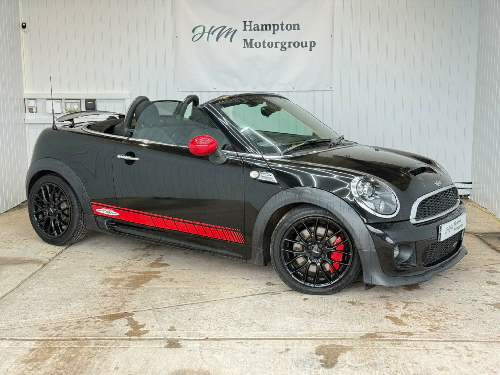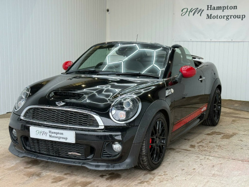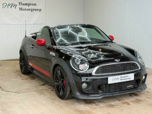 Welcome to Hampton Motorgroup (Solihull, West Midlands). We specialize in used motor vehicles and have a showroom with over 40 cars in stock at all times this is our MINI Roadster JCW, 1 key, service history, next mot due 31/08/2026. Comes with rear parking sensors, climate control, leather/cloth trim, 17 inch alloy wheels, harman/kardon sound system. First to see will buy, please visit website for more great deals, all card payments welcome, warranty and finance available, delivery can be arranged, px welcome, all vehicles come with a 6 month warranty, extended warranty also available at extra cost (12 months £599, 2 years £849, 3 years £999) VIEWINGS BY APPOINTMENT ONLY!, in alloy wheels - light cross spoke challenge, 3rd brake light, asc+t - automatic stability control and traction, additional decor rings, air conditioning - manual, airbags - driver, airbags - front passenger, airbags - front passenger with deactivation switch, airbags - head and thorax, alarm - thatcham cat1, anthracite headlining, anti-lock braking system - abs, automatic door window lowering by approx 6mm when door opens, aux-in connection, body coloured fuel filler cap in rear right side panel - linked to central locking, brake energy regeneration- igr, brake force display, brake pad wear indicator, cbc - cornering brake control, car jack, central locking - remote, chrome strip across lower front apron, crash sensor - fuel cut-off, crash sensor - hazard warning flashers and interior light, crash sensor - unlocking doors, cruise control, cupholders - two in front, dab tuner, dtc - dynamic traction control, decorative rings surrounding dashboard instruments, door handles - chrome plated, door handles - interior - chrome plated, door mirrors - electrically adjustable, door sill finishers - black line look, dynamic stability control - dsc, ebd - electronic brake-force distribution, edlc - electronic differential lock control, electric windows - front - one touch up and down, electronic power steering - speed related, embellisher at bottom edge of all windows - chrome plated, engine scoop in body colour, exhaust tailpipe - visible double central stainless steel diameter 85 mm, external visible vin, floor mats - velour, footrest and pedals in stainless steel, front fog lights, gearshift-selector lever and handrake lever gaiters in sensatec, halogen lights for low beam and high beam headlights, handbrake-lever grip - plastic with chrome plated handbrake push button, headlight - beam-throw control electrical with manual adjustment, headlights - chrome bezels, headlights - follow me home, headrests for all seats - manually adjustable, heated mirrors and windscreen washer jets, heated rear window with automatic deactivation, heater with mechanical control and recirculating-air button, hill assist, interior surface in piano black, interior surfaces - piano black, interior world - carbon black, john cooper works aerodynamic kit, knee roll in hard plastic on dashboard - carbon black, lashing eyes in luggage compartment, luggage compartment - light, luggage compartment - partition with large through-loading door, mini john cooper works - side air inlets chrome plated without s lettering, minimalism fuel saving technology, microfilter, mirror caps in body colour, multifunction controls for steering wheel, multiple control arm rear axle, non smoker package, pdc - park distance control - rear, passenger seat height adjustable, personal profile, radiator grille - black-honeycomb, radio boost cd, red stitching on steering wheel-gearshift knob and gaiter and handbrake gaiter, remote controlled alarm system, rev counter, roll-bar - stainless steel - polished, run-flat tyres, seats - height adjustable drivers, seats - sports front, second radio remote key, security locking wheel bolts, sills-bumper edges-wheel arches - black with model-specific bumper trims, single joint spring strut front axle, soft-top black, speedometer centred in instrument panel, spoiler - active rear (speed related), sport button, sport stripes - black, start-stop button, steering column height and length adjustment, steering wheel - john cooper works accessory 3-spoke sport alcantara, storage options in the trim panels of each front panel as well as centre console, sun visors with integrated vanity mirrors on drivers and passengers sides, tpws - tyre pressure warning system, tailgate handle - body colour, tool kit in luggage compartment, white direction indicators lights, chili pack, harman kardon hi-fi system, headlights - bi-xenon, air conditioning - automatic, wind deflector, colour line - carbon black, interior light pack, rain sensor and automatic headlight activation, black headlight reflectors, 17in alloy wheels - light cross spoke challenge - black, cloth-leather ray - carbon black