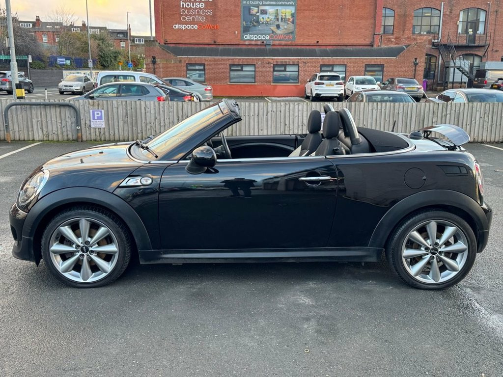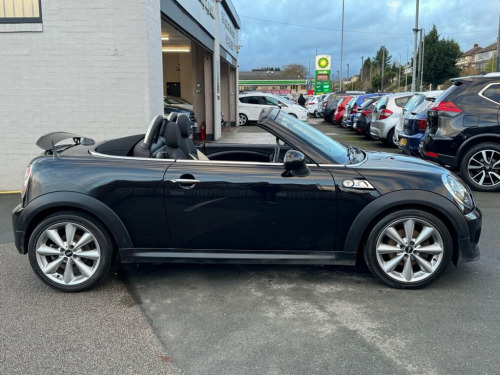 Midnight Black Mini Roadster 2.0 Cooper SD Convertible with over £4000+ of MINI upgrades. The upgrades includes the 17" alloys (£485), Bi Xenon Headlights (£485), Chilli Pack (£1730), Automatic Air conditioning (£235), cross check leather (£355) and Rain sensing wipers/auto headlights (£90) to name a few. Only £35 year road tax and an impressive 60mpg + fuel efficiency. Call 0113 2636003 or visit www.leedsmotorcompany.co.uk. Headlights - Bi-Xenon, 16in Alloy Wheels - Light Rib Spoke, 3-Spoke Sport Leather Steering Wheel, 3rd Brake Light, 6 Speakers System, ASC+T - Automatic Stability Control and , Additional Decor Rings, Air Conditioning - Manual, Airbags - Driver, Airbags - Front Passenger, Airbags - Front Passenger with Deactivat, Airbags - Head and Thorax, Alarm - Thatcham CAT1, Anthracite Headlining, Anti-Lock Braking System - ABS, Aux-In Connection, Basic Bluetooth Function with USB Audio, Body Coloured Fuel Filler Cap in Rear Ri, Brake Assist, Brake Force Display, Brake Pad Wear Indicator, CBC - Cornering Brake Control, Car Jack, Central Locking - Activated At 10mph, Central Locking - Remote, Cooled Gloveb