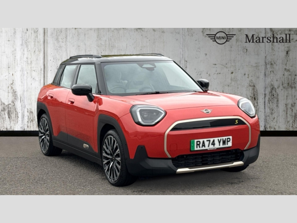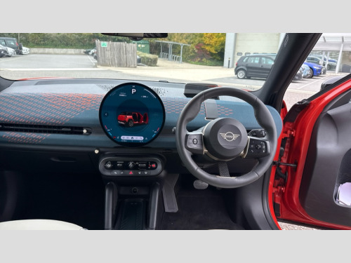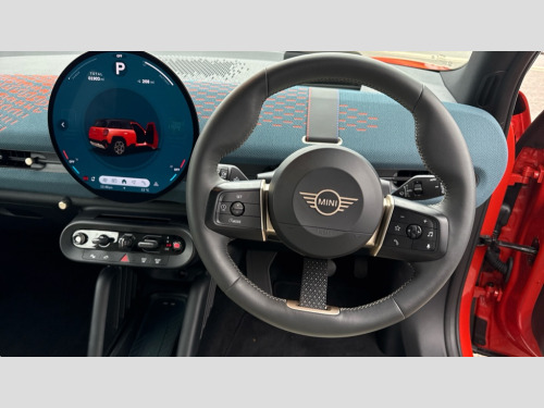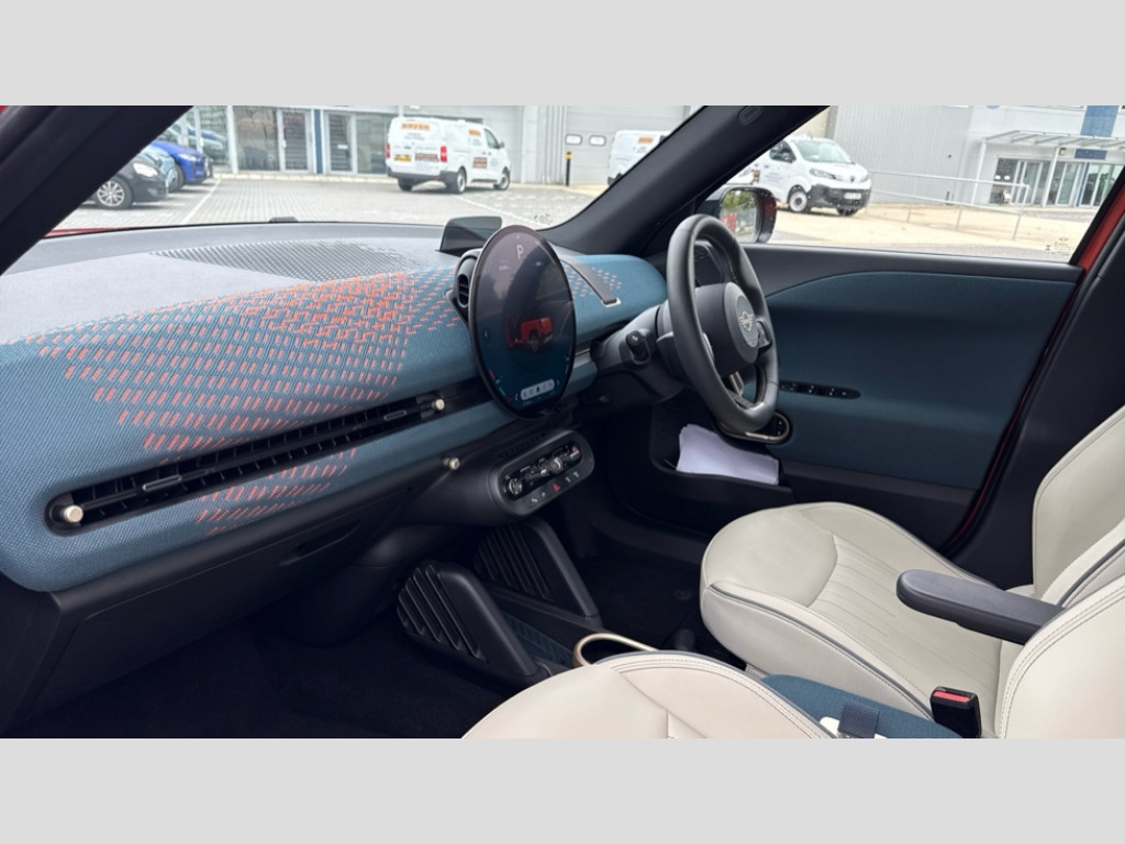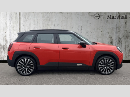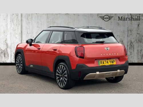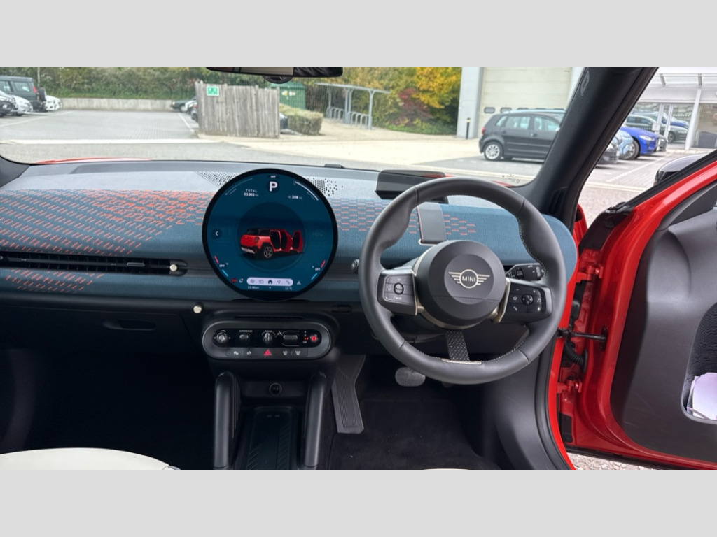 MINI Aceman 160kW SE Exclusive 54kWh 5dr Auto Circular OLED Screen, Cruise control, Driving assistant, Electro-mechanical speed dependant steering assistance, Emergency call service, Intelligent Personal Assistant, MINI Experience Modes, Mini navigation system, MINI operating system 9, On board computer, Parking assistant, Rear view camera, Service interval indicator, 11kW AC charging, Automatic transmission, DC Rapid charging, Mode 3 cable, DAB Digital radio, Personal eSim, Auto headlights, Electric adjustable heated door mirrors, Electric front+rear windows, Heated rear window, Heated windscreen washer jets, LED daytime running lights, LED indicator lights, LED rear lights, Logos in Vibrant Silver, Rain sensor window wipers, Rear side wing doors, Rear window wiper, Roof rails, Third brake light, Vibrant silver grille surround, 3 seat bench in 2nd row, 60/40 rear seat bench, Ambient lighting, Automatic air conditioning, Cupholders, Dark headliner, Floor mats, Front and rear head restraints, Front compact armrest, Heated steering wheel, Height adjustable passenger seat, Lidded storage box in blue knit, Single front passenger seat, Sport seats, Sport Vescin Steering Wheel, Sunvisors with vanity mirrors, Vescin synthetic leather upholstery, Level 1 pack - Mini Aceman, 3 point seatbelts on all seats, 6 Airbags - front, side, head and seat belt tensioners, Acoustic pedestrian protection, Anti-lock braking system (ABS), Child locks on rear doors, DSC - Dynamic Stability Control, Electronic parking brake, Front and rear disc brakes, Front ISOFIX (iSize), Front passenger airbag deactivation, Traction control, Tyre pressure monitoring system, Alarm, Immobiliser, Remote central locking, Blue decorative dash strap, Petrol dash knit with patterne orange, Tyre repair kit