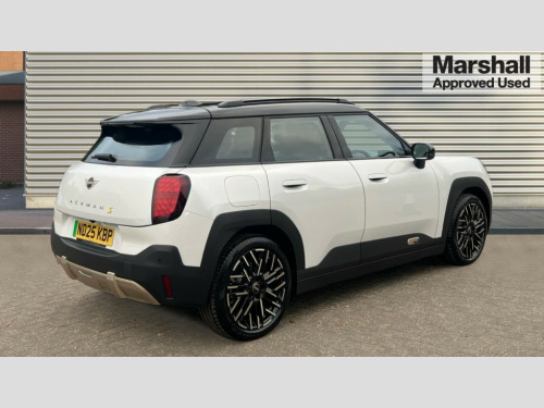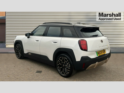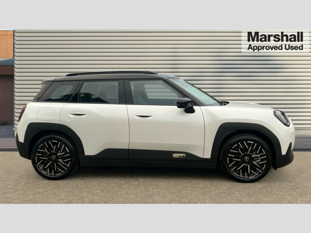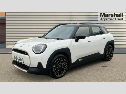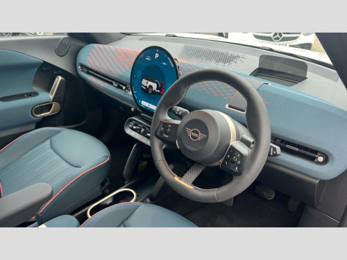 MINI Aceman 160kW SE Exclusive 54kWh 5dr Auto Circular OLED Screen, Cruise control, Driving assistant, Electro-mechanical speed dependant steering assistance, Emergency call service, Intelligent Personal Assistant, MINI Experience Modes, Mini navigation system, MINI operating system 9, On board computer, Parking assistant, Rear view camera, Service interval indicator, 11kW AC charging, Automatic transmission, DC Rapid charging, Mode 3 cable, DAB Digital radio, Personal eSim, Adaptable light signature, Auto headlights, Electric adjustable heated door mirrors, Electric front+rear windows, Heated rear window, Heated windscreen washer jets, LED daytime running lights, LED indicator lights, LED rear lights, Logos in Vibrant Silver, Rain sensor window wipers, Rear side wing doors, Rear window wiper, Roof rails, Third brake light, Vibrant silver grille surround, 3 seat bench in 2nd row, 60/40 rear seat bench, Ambient lighting, Automatic air conditioning, Cupholders, Dark headliner, Floor mats, Front and rear head restraints, Front compact armrest, Heated steering wheel, Height adjustable passenger seat, Lidded storage box in blue knit, Single front passenger seat, Sport seats, Sport Vescin Steering Wheel, Sunvisors with vanity mirrors, Vescin synthetic leather upholstery, Level 1 pack - Mini Aceman, 3 point seatbelts on all seats, 6 Airbags - front, side, head and seat belt tensioners, Acoustic pedestrian protection, Anti-lock braking system (ABS), Child locks on rear doors, DSC - Dynamic Stability Control, Electronic parking brake, Front and rear disc brakes, Front ISOFIX (iSize), Front passenger airbag deactivation, Traction control, Tyre pressure monitoring system, Alarm, Immobiliser, Remote central locking, Blue decorative dash strap, Petrol dash knit with patterne orange, Tyre repair kit