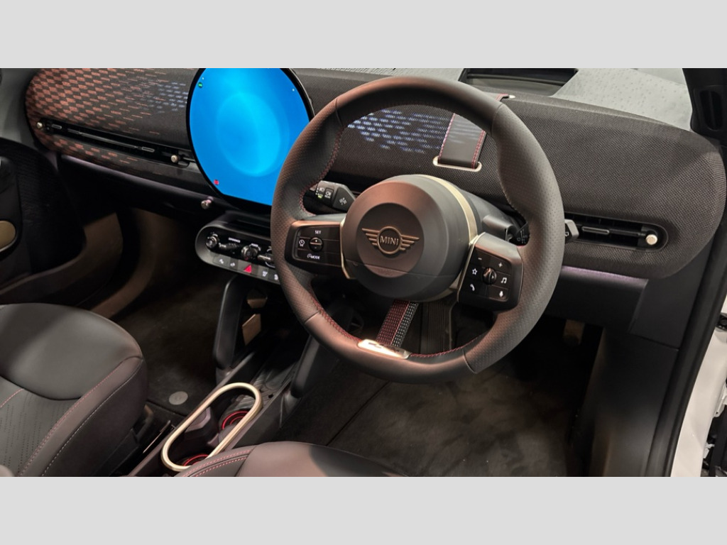 MINI Aceman 160kW SE Sport 54kWh 5dr Auto Circular OLED Screen, Cruise control, Driver camera system, Driving assistant, Electro-mechanical speed dependant steering assistance, Emergency call service, Intelligent Personal Assistant, MINI Experience Modes, Mini navigation system, MINI operating system 9, On board computer, Parking assistant, Rear view camera, Service interval indicator, 11kW AC charging, Automatic transmission, DC Rapid charging, Mode 3 cable, DAB Digital radio, Personal eSim, Adaptable light signature, Auto headlights, Electric adjustable heated door mirrors, Electric front+rear windows, Front and rear apron, Heated rear window, Heated windscreen washer jets, High gloss hexagonal patterned grille surround, LED daytime running lights, LED indicator lights, LED rear lights, Rain sensor window wipers, Rear roof spoiler with airblades, Rear side wing doors, Rear window wiper, Roof rails, Third brake light, 3 seat bench in 2nd row, 60/40 rear seat bench, Ambient lighting, Automatic air conditioning, Black lower band in high gloss, Cupholders, Dark headliner, Floor mats, Front and rear head restraints, Front compact armrest, Heated steering wheel, Height adjustable passenger seat, Lidded storage box in Black/Red knit, Perforated Vescin steering wheel, Single front passenger seat, Sport seats, Sunvisors with vanity mirrors, Level 1 pack - Mini Aceman, 3 point seatbelts on all seats, 6 Airbags - front, side, head and seat belt tensioners, Acoustic pedestrian protection, Anti-lock braking system (ABS), Brake caliper in Black with JCW badge, Child locks on rear doors, DSC - Dynamic Stability Control, Electronic parking brake, Front and rear disc brakes, Front ISOFIX (iSize), Front passenger airbag deactivation, JCW Sport Brakes, Traction control, Tyre pressure monitoring system, Alarm, Immobiliser, Remote central locking, Black/Red decorative dash strap, JCW Black/Red dashboard knit, Tyre repair kit