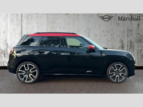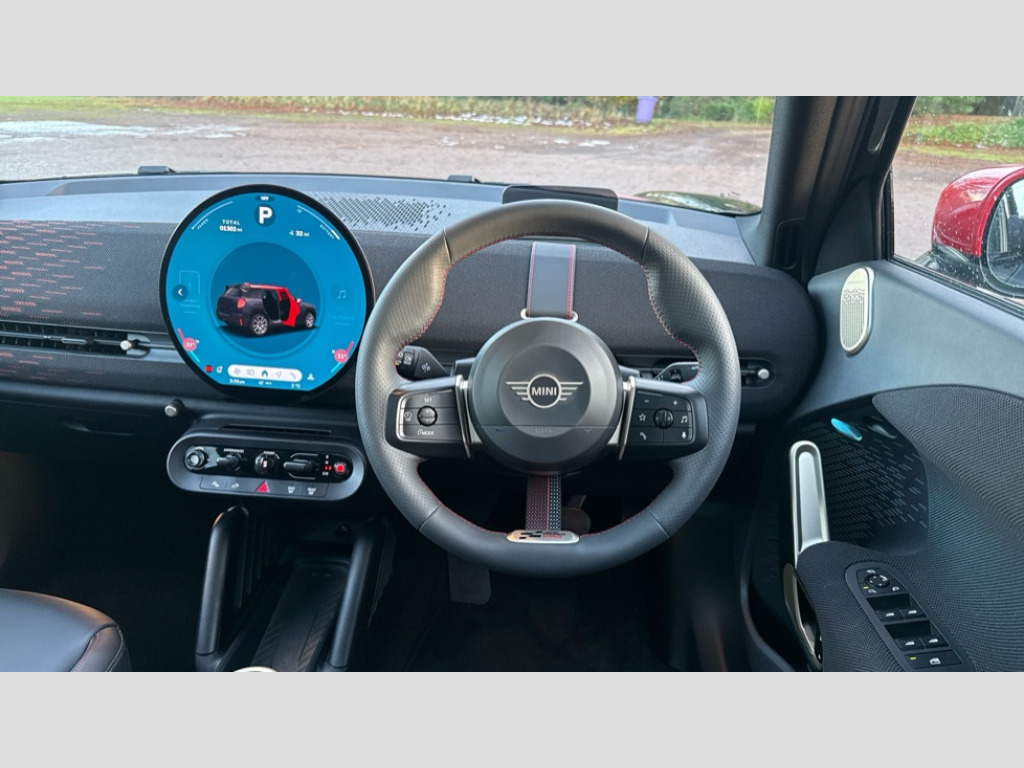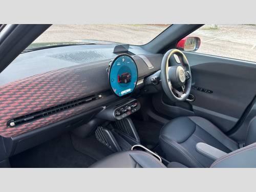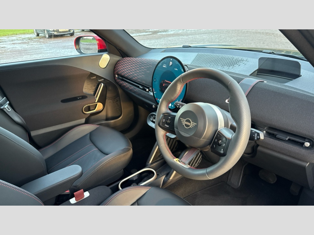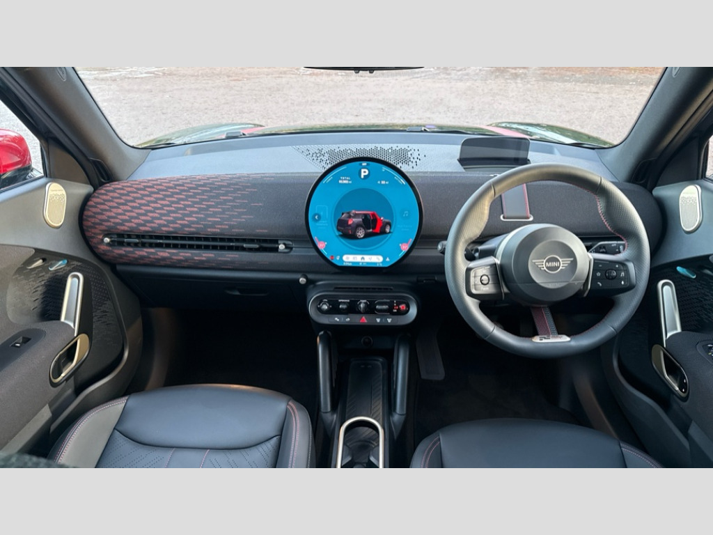 MINI Aceman 160kW SE Sport 54kWh 5dr Auto Circular OLED Screen, Cruise control, Driving assistant, Electro-mechanical speed dependant steering assistance, Emergency call service, Intelligent Personal Assistant, MINI Experience Modes, Mini navigation system, MINI operating system 9, On board computer, Parking assistant, Rear view camera, Service interval indicator, 11kW AC charging, Automatic transmission, DC Rapid charging, Mode 3 cable, DAB Digital radio, Personal eSim, Adaptable light signature, Auto headlights, Electric adjustable heated door mirrors, Electric front+rear windows, Front and rear apron, Heated rear window, Heated windscreen washer jets, High gloss hexagonal patterned grille surround, LED daytime running lights, LED indicator lights, LED rear lights, Rain sensor window wipers, Rear roof spoiler with airblades, Rear side wing doors, Rear window wiper, Roof rails, Third brake light, 3 seat bench in 2nd row, 60/40 rear seat bench, Ambient lighting, Automatic air conditioning, Black lower band in high gloss, Cupholders, Dark headliner, Floor mats, Front and rear head restraints, Front compact armrest, Heated steering wheel, Height adjustable passenger seat, Lidded storage box in Black/Red knit, Perforated Vescin steering wheel, Single front passenger seat, Sport seats, Sunvisors with vanity mirrors, Vescin/Cloth upholstery, Level 1 pack - Mini Aceman, 3 point seatbelts on all seats, 6 Airbags - front, side, head and seat belt tensioners, Acoustic pedestrian protection, Anti-lock braking system (ABS), Brake caliper in Black with JCW badge, Child locks on rear doors, DSC - Dynamic Stability Control, Electronic parking brake, Front and rear disc brakes, Front ISOFIX (iSize), Front passenger airbag deactivation, JCW Sport Brakes, Traction control, Tyre pressure monitoring system, Alarm, Immobiliser, Remote central locking, Black/Red decorative dash strap, JCW Black/Red dashboard knit, Tyre repair kit