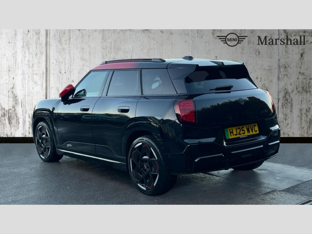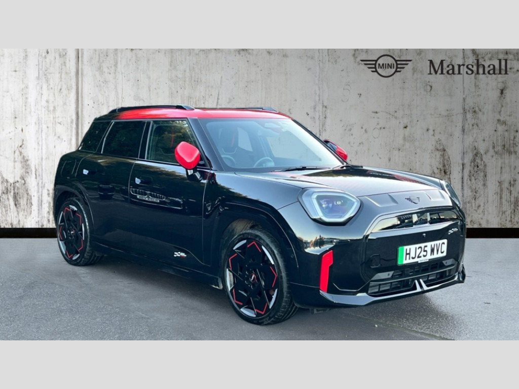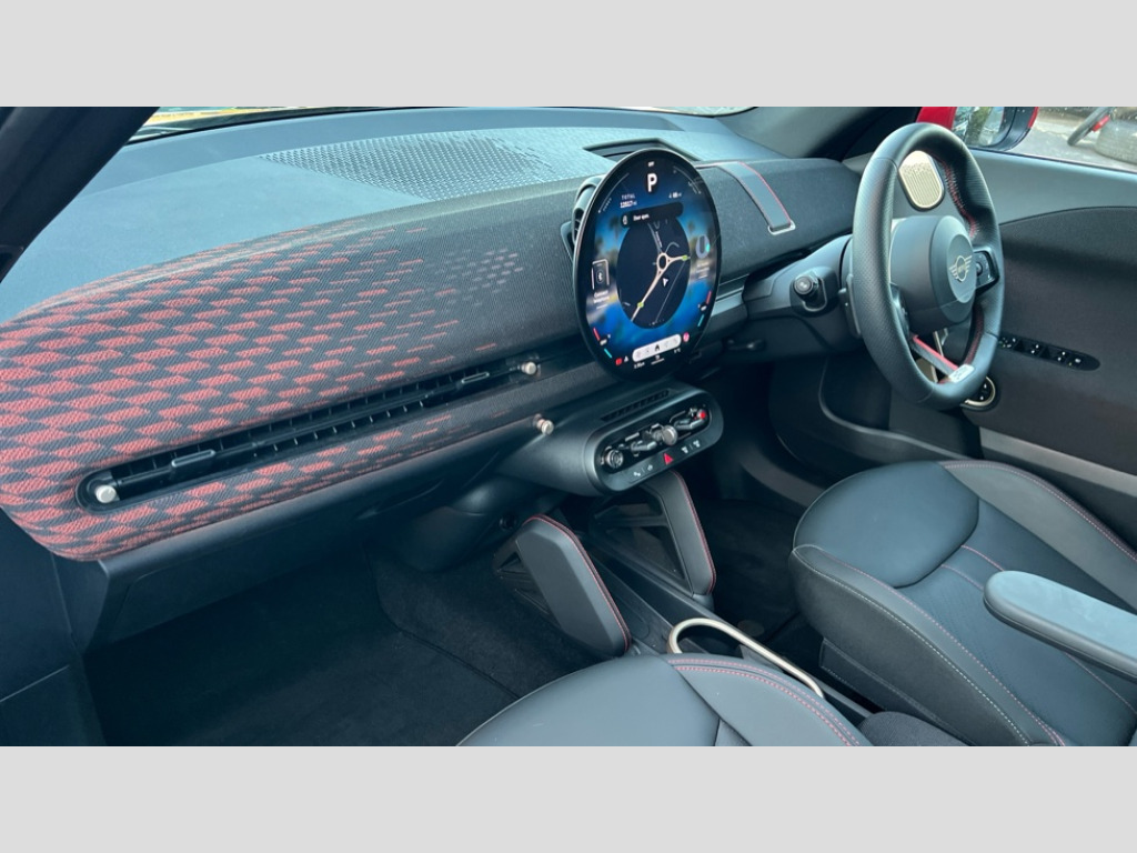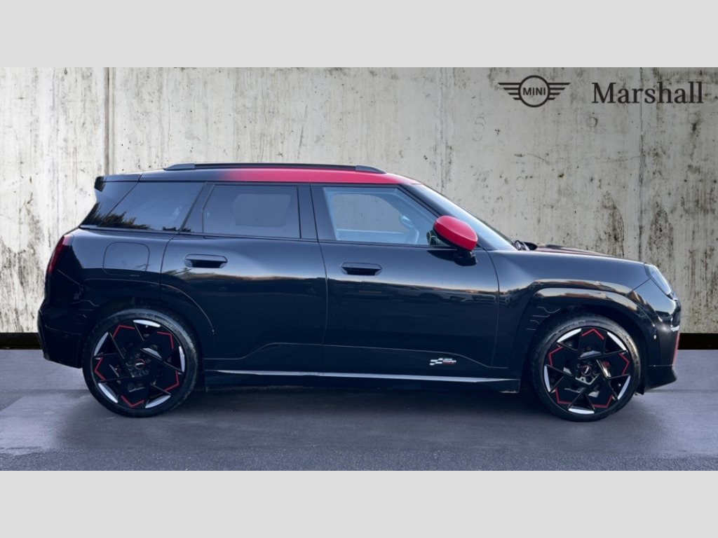 MINI Aceman 190kW John Cooper Works 54kWh 5dr Auto Circular OLED Screen, Cruise control, Driving assistant, Electro-mechanical speed dependant steering assistance, Emergency call service, Intelligent Personal Assistant, JCW Experience mode, MINI Experience Modes, Mini navigation system, MINI operating system 9, On board computer, Parking assistant, Rear view camera, Service interval indicator, 11kW AC charging, Automatic transmission, DC Rapid charging, Mode 3 cable, DAB Digital radio, Harman Kardon sound system, Personal eSim, Adaptable light signature, Auto headlights, Electric adjustable heated door mirrors, Electric front+rear windows, Front and rear apron, Heated rear window, Heated windscreen washer jets, High gloss hexagonal patterned grille surround, JCW logo projection, LED daytime running lights, LED indicator lights, LED rear lights, Rain sensor window wipers, Rear roof spoiler with airblades, Rear side wing doors, Rear window wiper, Roof rails, Third brake light, 3 seat bench in 2nd row, 60/40 rear seat bench, Ambient lighting, Automatic air conditioning, Black lower band in high gloss, Cupholders, Dark headliner, Floor mats, Front and rear head restraints, Front compact armrest, Heated steering wheel, Height adjustable passenger seat, JCW steering wheel, Lidded storage box in Black/Red knit, Single front passenger seat, Sport seats, Stainless steel pedals, Sunvisors with vanity mirrors, Vescin/Cloth upholstery, Level 1 pack - Mini Aceman, 3 point seatbelts on all seats, 6 Airbags - front, side, head and seat belt tensioners, Acoustic pedestrian protection, Anti-lock braking system (ABS), Child locks on rear doors, DSC - Dynamic Stability Control, Electronic parking brake, Front and rear disc brakes, Front ISOFIX (iSize), Front passenger airbag deactivation, JCW sport brake with chilli red caliper, Traction control, Tyre pressure monitoring system, Alarm, Immobiliser, Remote central locking, Black/Red decorative dash strap, JCW Black/Red dashboard knit, Tyre repair kit