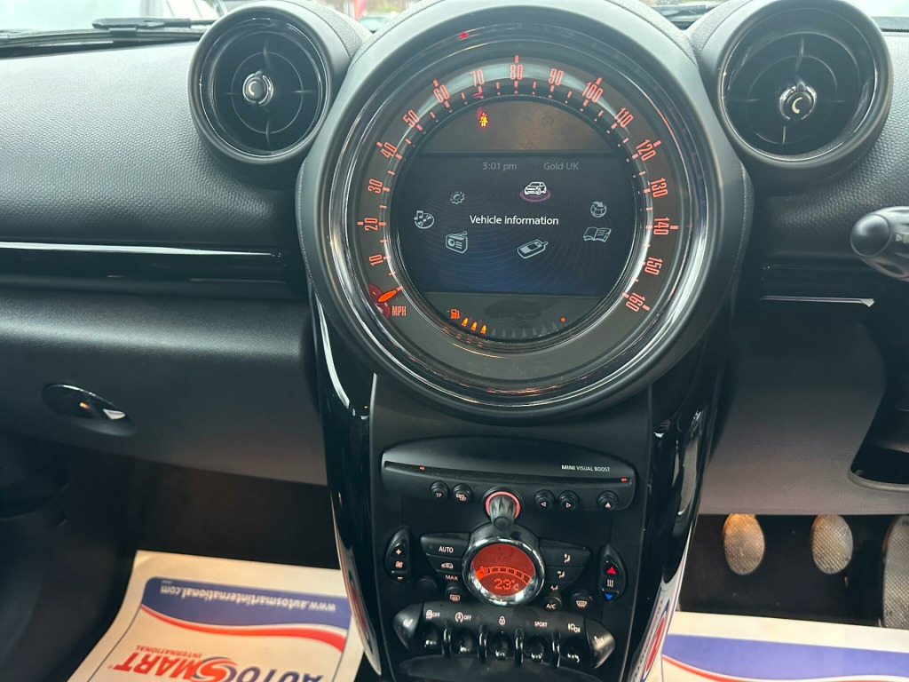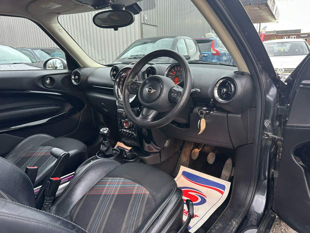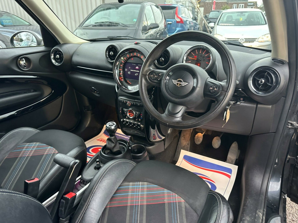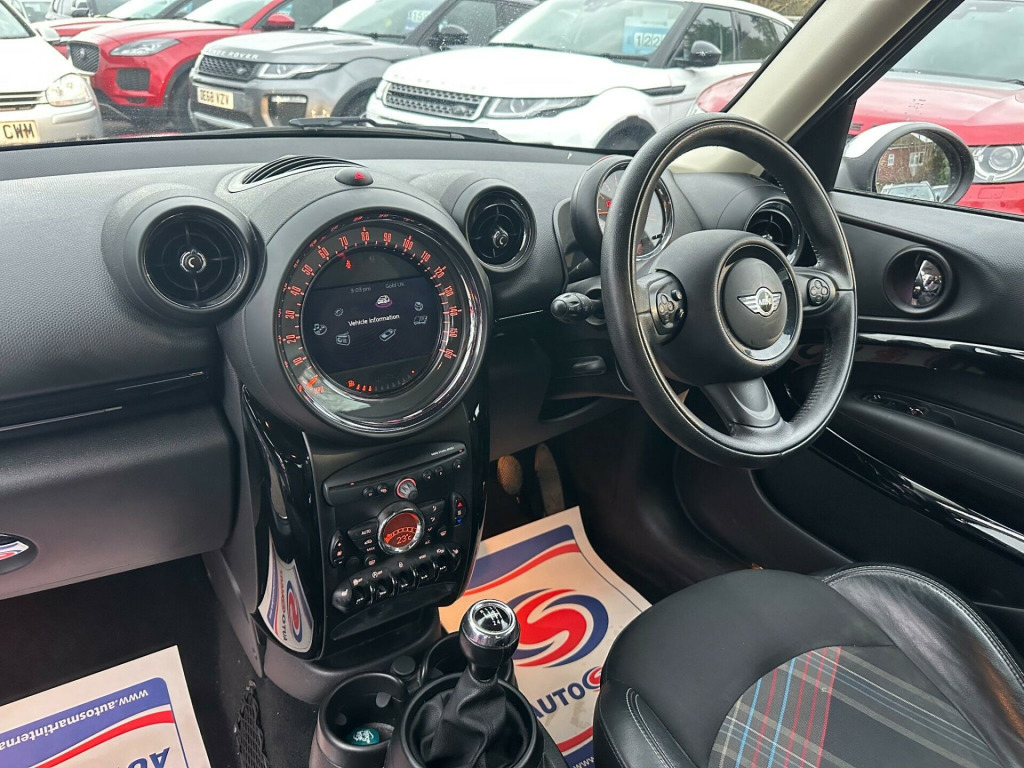 This 2015 MINI Paceman Cooper boasts a clear vehicle history and has had only two owners, offering peace of mind for its next custodian. This four wheel drive model is powered by a 1.6 litre petrol engine and meets Euro 6 emissions standards. It comes equipped with the desirable CHILI Pack, enhancing its appeal with features like Chrome Line Interior, Darkened Rear Glass, Chrome Line Exterior, and Mirror Caps in Chrome Plate.The MINI Paceman Cooper is presented in a low insurance group, making it an economical choice. These highlights, combined with its four wheel drive capability and the comprehensive CHILI Pack, demonstrate how this particular vehicle stands out from others in its class, offering a compelling blend of style, practicality, and value. in alloy wheels - 5-star air spoke, 3rd brake light, asc+t - automatic stability control and traction, air conditioning - manual, airbags - driver, airbags - front passenger, airbags - front passenger with deactivation switch, airbags - front side, airbags - head, alarm - thatcham cat1, anti-lock braking system - abs, aux-in connection, basic bluetooth function with usb audio, bike rack preparation at rear, brake assist, brake force display, brake pad wear indicator, cbc - cornering brake control, central locking - remote, child seat isofix attachment, crash sensor - hazard warning flashers and interior light, crash sensor - unlocking doors, cupholders - front x2, dab tuner, dtc - dynamic traction control, daytime running lights - led, door handles - chrome plated, door handles - interior - chrome plated, door mirrors - electrically adjustable and heated, dynamic stability control - dsc, ebd - electronic brake-force distribution, electric windows - front - one touch up and down, electronic power steering, foldable rear backrest and 50:50 split, frame chrome-plated radiator-grille bars silver, front fog lights - led, grab handles, halogen lights for low beam and high beam headlights, headlight - beam-throw control electrical with manual adjustment, headlights - follow me home, headlining - beige, headrests for all seats - manually adjustable, heated front windscreen washer jets, hill assist, interior world - carbon black, lashing eyes in luggage compartment, mini mobility system, microfilter, mirror caps in body colour, pdc - park distance control - rear, piano black exterior trim, radio boost cd, roof in body colour, seats - height adjustable front, seats - height adjustable passengers, seats - sports front, second radio remote key, security locking wheel bolts, spoiler - roof, sport suspension - lowered 10mm, start-stop button, steering column height and length adjustment, sun visors with integrated vanity mirrors on drivers and passengers sides, tpws - tyre pressure warning system, two cupholders in rear for attachment to the mini centre rail, usb interface, chili pack, 17in alloy wheels - 5-star triangle spoke, air conditioning - automatic, darkened rear glass, seat heating for driver and front passenger, multifunction controls for steering wheel, 3-spoke sport leather steering wheel, door ellipse and downtubes - piano black, interior light pack, chrome line exterior, rain sensor and automatic headlight activation, chrome line interior, mirror caps in chrome plate, inlay colour line - carbon black, hot cross cloth-leather - carbon black