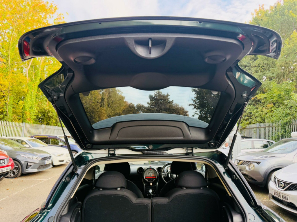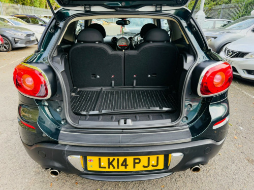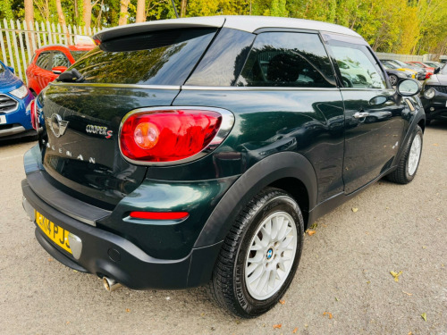 GREEN, FINANCE AVAILABLE, ONLY ONE OWNER, ULEZ COMPLIANTWARRANTED AND VARIFIABLE LOW MILEAGE.This 2014 MINI Paceman Cooper S presents a compelling proposition with its remarkably low mileage of just 56,780 miles. This particular example is a 1.6 litre petrol model featuring a capable four wheel drive system, ensuring confident handling in various conditions. For your peace of mind, the MOT is valid until September 2026. Inside, you'll find practical features such as manual air conditioning, rear park distance control to assist with parking, and basic Bluetooth functionality with USB audio for your entertainment needs.The Cooper S variant is known for its spirited performance, and this Paceman is no exception, achieving 0-62mph in a brisk 8.2 seconds. This acceleration figure indicates a more dynamic driving experience compared to many other vehicles in its class. The combination of its distinctive styling, MINI's renowned driving dynamics, and the added assurance of its MOT status and low mileage makes this Paceman a noteworthy choice for those seeking a stylish and engaging compact car.. 17in Alloy Wheels - 5 Hole Black Star Light, 3-Spoke Sport Leather Steering Wheel, 3rd Brake Light, Air Conditioning - Manual, Air Scoop Integrated between Bumper and Radiator Grille-Frame in Body Colour, Airbags - Driver, Airbags - Front Passenger, Airbags - Front Passenger with Deactivation Switch, Airbags - Front Side, Airbags - Head, Alarm - Thatcham CAT1, Alloy Wheels in Anthracite, Anti-Lock Braking System - ABS, Aux-In Connection, Basic Bluetooth Function with USB Audio, Bike Rack Preparation at Rear, Brake Force Display, Brake Pad Wear Indicator, CBC - Cornering Brake Control, Central Locking - Activated At 10mph, Central Locking - Remote, Centre Rail - Two Part, Child Seat ISOFIX Attachment, Colour Line - Carbon Black, Cooled Glovebox, Crash Sensor - Fuel Cut-Off, Crash Sensor - Hazard Warning Flashers and Interior Light, Crash Sensor - Unlocking Doors, Cupholders - Front x2, DAB Tuner, DTC - Dynamic Traction Control, Door Ellipse and Downtubes - Dark Anthracite, Door Handles - Chrome Plated, Door Handles - Interior - Chrome Plated, Door Sill Finishers - Metal Look and Model Dependent Lettering, Dynamic Stability Control - DSC, EBD - Electronic Brake-Force Distribution, Electric Windows - Front - One Touch Up and Down, Electronic Power Steering, Embellisher at Bottom Edge of All Windows - Chrome Plated, Foldable Rear Backrest and 50:50 Split, Footrest and Pedals in Stainless Steel, Gearshift and Selector Lever Gaiters in Artificial Leather, Grab Handles, Halogen Lights for Low Beam and High Beam Headlights, Headlight - Beam-Throw Control Electrical with Manual Adjustment, Headlights - Chrome Bezels, Headlights - Follow Me Home, Headlining - Beige, Headrests For All Seats - Manually Adjustable, Heated Mirrors and Windscreen Washer Jets, Heated Rear Window with Automatic Deactivation, Hill Assist, Interior Lighting Integrated into Centre Front Headliner Above Interior Mirror, Interior Mirror - Mechanical Anti-Dazzle, Interior Surfaces - Dark Anthracite Decorative Trim Finishers on Centre Console and Door Ring, John Cooper Works Aerodynamic Kit, Lashing Eyes in Luggage Compartment, Luggage Compartment - Light, MINI Mobility System, Microfilter, Mirror Caps in Body Colour, Non Smoker Package, PDC - Park Distance Control - Rear, Personal Profile Functions for Each Remote Key, Radiator Grille - Honeycomb-Black with Chrome Surround, Radio BOOST CD, Roof Rails - Silver, Roof Spoiler Painted in Roof Colour, Roof in Body Colour, Seats - Height Adjustable Front, Seats - Height Adjustable Passengers, Seats - Sports Front, Second Radio Remote Key, Security Locking Wheel Bolts, Side Scuttles with Integrated Indicators - White Indicators and S Designation at the Air Inlets, Sills-Bumper Edges-Wheel Arches - Black with Model-Specific Bumper Trims, Sport Button, Sport Suspension - Lowered 10mm, Steering Column Height and Length Adjustment, Sun Visors with Integrated Vanity Mirrors on Drivers and Passengers Sides, TPWS - Tyre Pressure Warning System, Tailgate Release Incorporated within MINI Badge, USB Audio Connection, White Direction Indicators Lights.