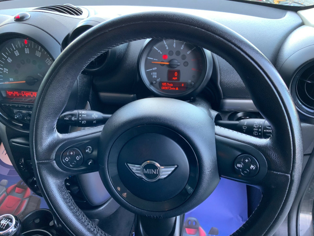 This 2016 Mini Paceman 1.6 Cooper SUV with a manual transmission and Euro 5 compliant petrol engine is ULEZ compliant and has 82,000 miles on the clock. With 4 seats and 2 doors, this SUV is perfect for a small family or a couple who enjoy outdoor adventures. The MOT is valid until 08/06/2026, providing peace of mind for the next few years. The car comes with features such as the CHILI Pack, black roof and mirror caps, white direction indicators lights, a 3-spoke sport leather steering wheel, and automatic air conditioning. This stylish and practical vehicle is ready to take on any journey, whether it's in the city or off the beaten track. in alloy wheels - 5-star single spoke light, door handles - chrome plated, door mirrors - electrically adjustable and heated, electric windows - front - one touch up and down, frame chrome-plated radiator-grille bars silver, heated front windscreen washer jets, mini mobility system, mirror caps in body colour, roof in body colour, security locking wheel bolts, spoiler - roof, 3rd brake light, halogen lights for low beam and high beam headlights, headlight - beam-throw control electrical with manual adjustment, headlights - follow me home, asc+t - automatic stability control and traction, airbags - driver, airbags - front passenger, airbags - front passenger with deactivation switch, airbags - front side, airbags - head, alarm - thatcham cat1, anti-lock braking system - abs, brake assist, cbc - cornering brake control, central locking - activated at 10mph, central locking - remote, child seat isofix attachment, crash sensor - hazard warning flashers and interior light, crash sensor - unlocking doors, dynamic stability control - dsc, ebd - electronic brake-force distribution, hill assist, second radio remote key, air conditioning - manual, bike rack preparation at rear, centre rail - two part, colour line - carbon black, cooled glovebox, cupholders - front x2, door ellipse and downtubes - dark silver, door handles - interior - chrome plated, door sill finishers - metal look and model dependent lettering, foldable rear backrest and 50:50 split, gearshift and selector lever gaiters in artificial leather, grab handles, headlining - beige, headrests for all seats - manually adjustable, interior surfaces - dark silver, lashing eyes in luggage compartment, microfilter, seats - height adjustable front, seats - height adjustable passengers, seats - sports front, start-stop button, steering column height and length adjustment, steering wheel - 2-spoke plastic, sun visors with integrated vanity mirrors on drivers and passengers sides, two cupholders in rear for attachment to the mini centre rail, aux-in connection, basic bluetooth function with usb audio, dab tuner, radio boost cd, usb audio connection, brake force display, brake pad wear indicator, electronic power steering, pdc - park distance control - rear, sport suspension - lowered 10mm, tpws - tyre pressure warning system